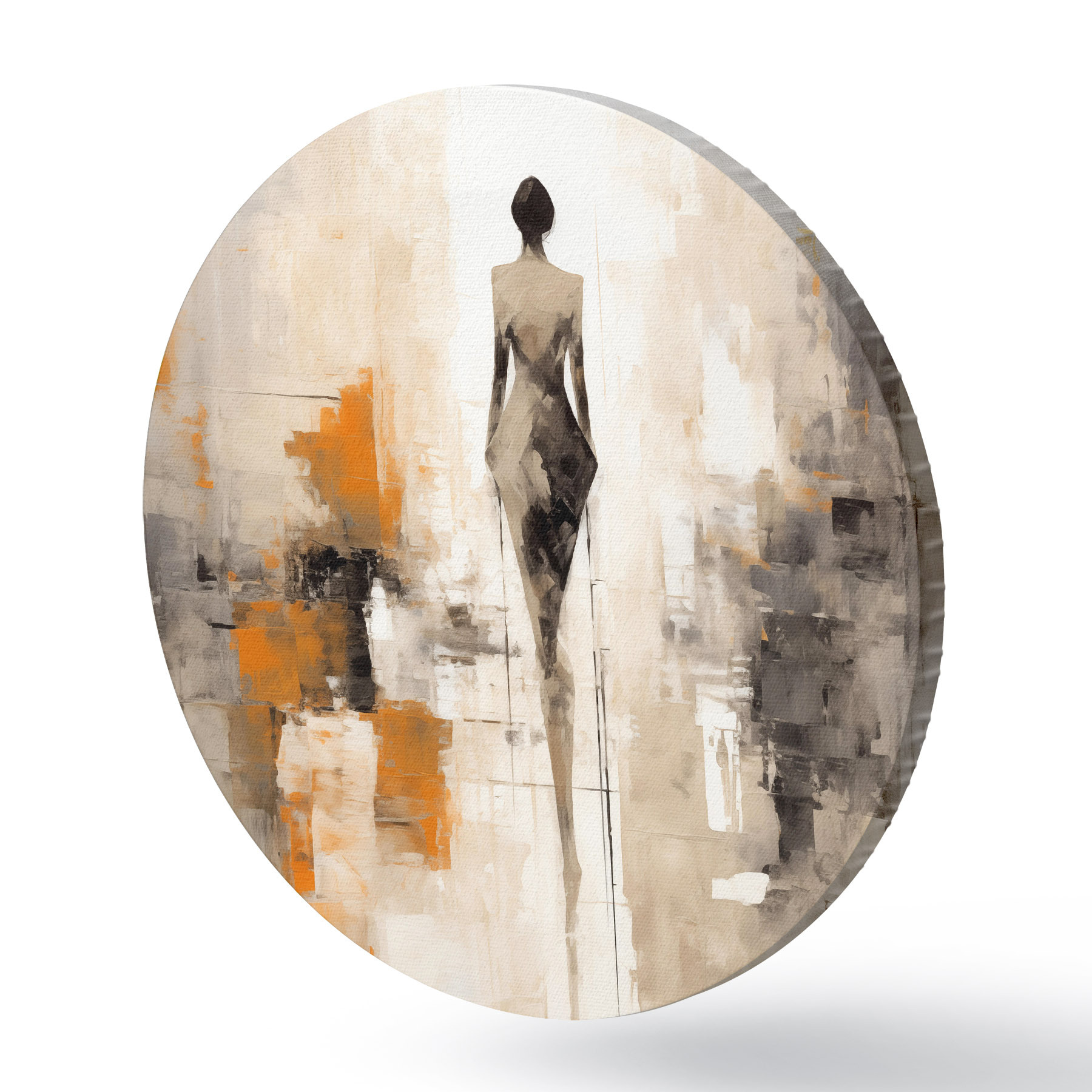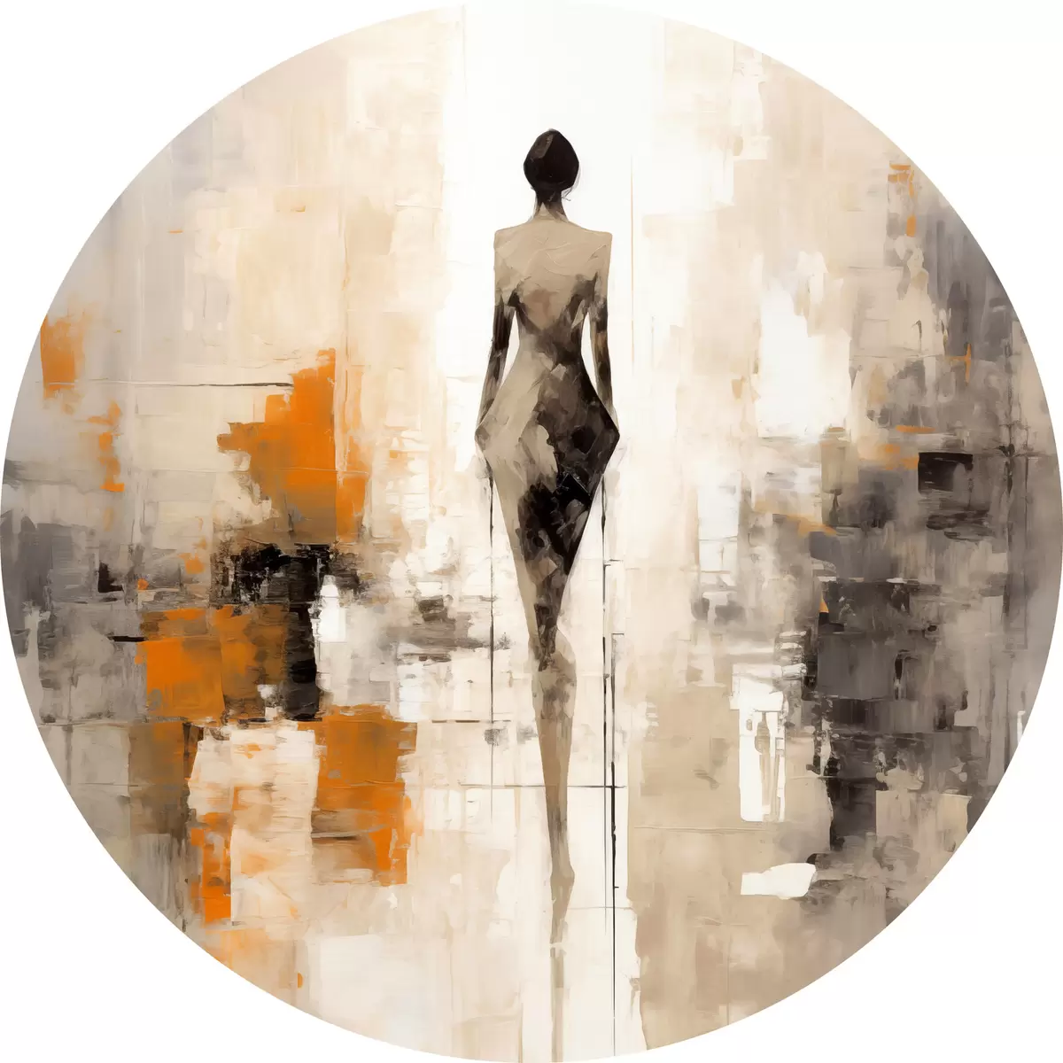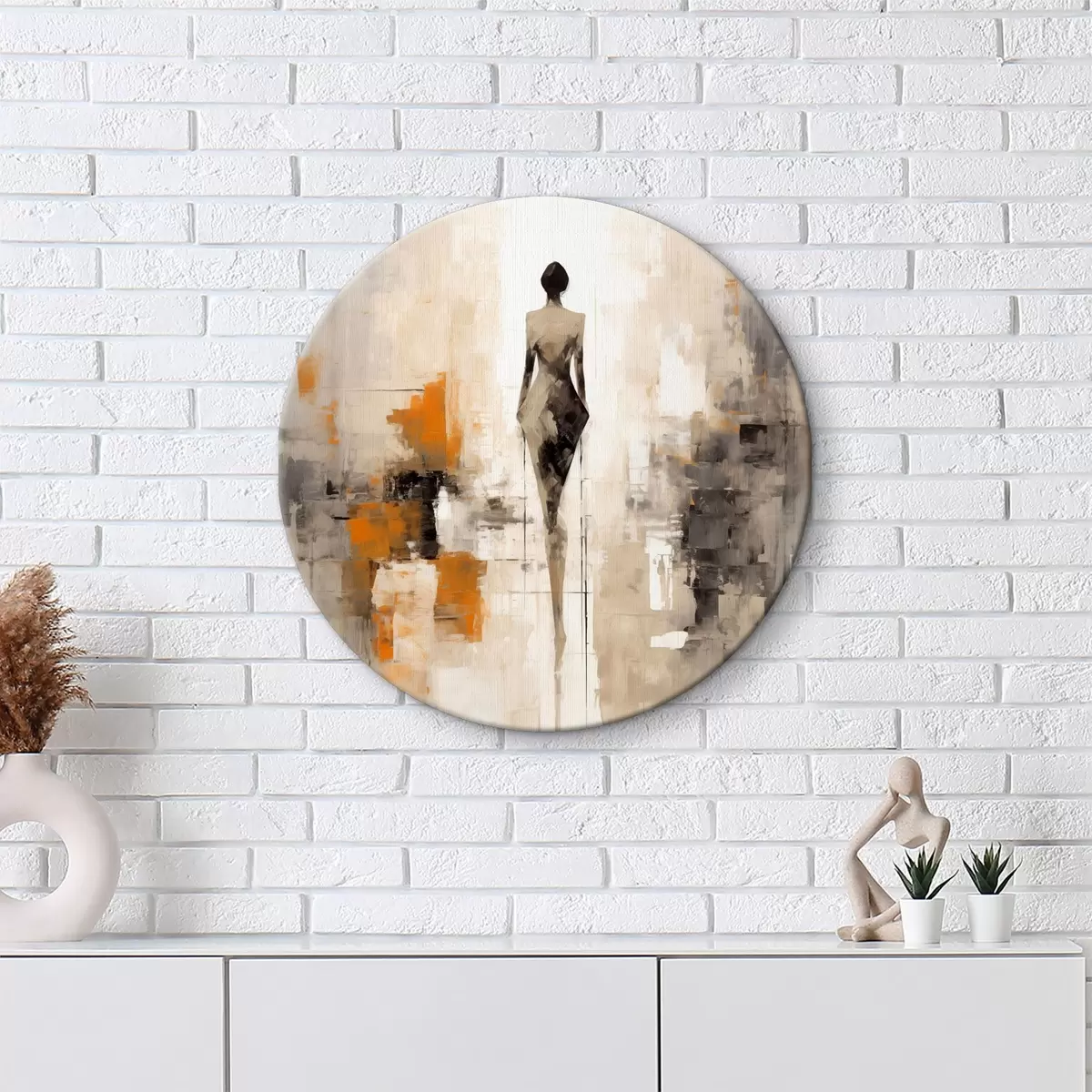 Ronde schilderijen Abstract silhouet van een vrouw, imitatie van schaafwonden en penseelstreken r40485