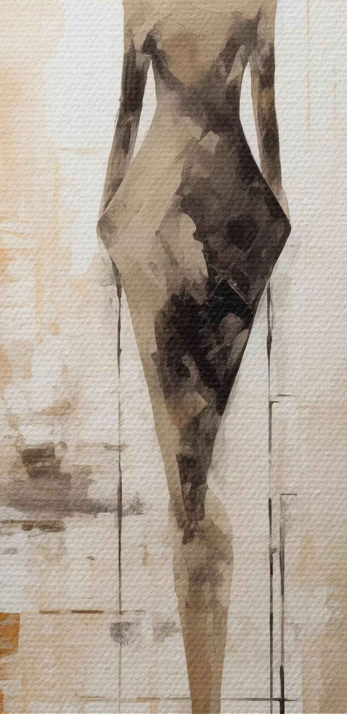 Afbeelding Abstract silhouet van een vrouw, imitatie van schaafwonden en penseelstreken Nr r40485