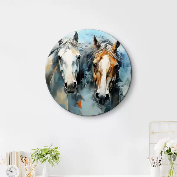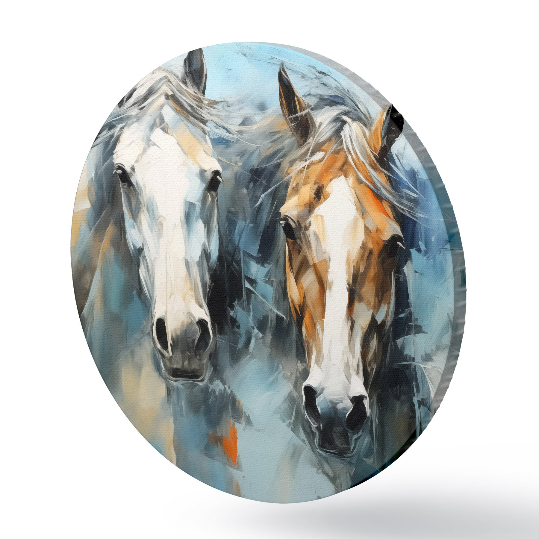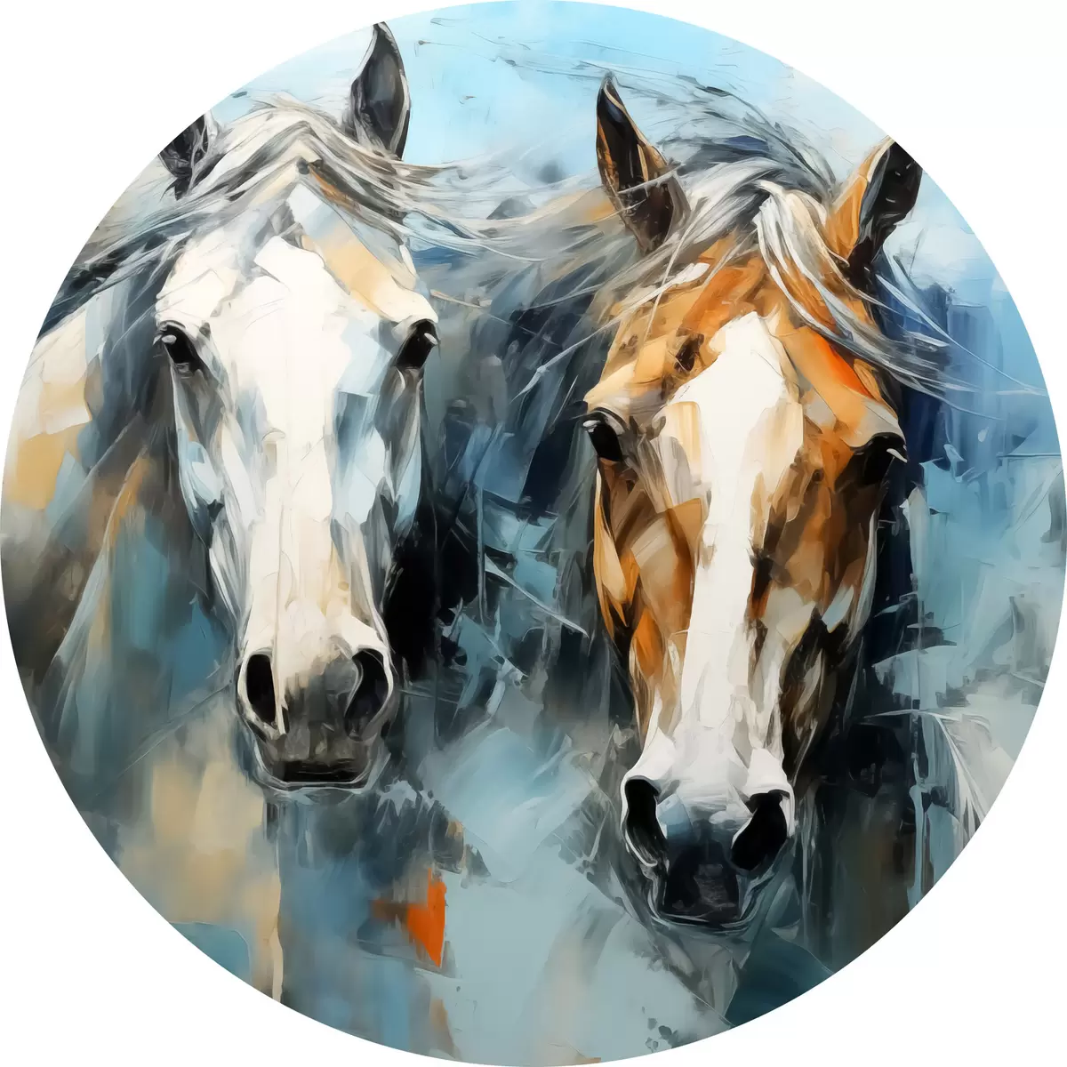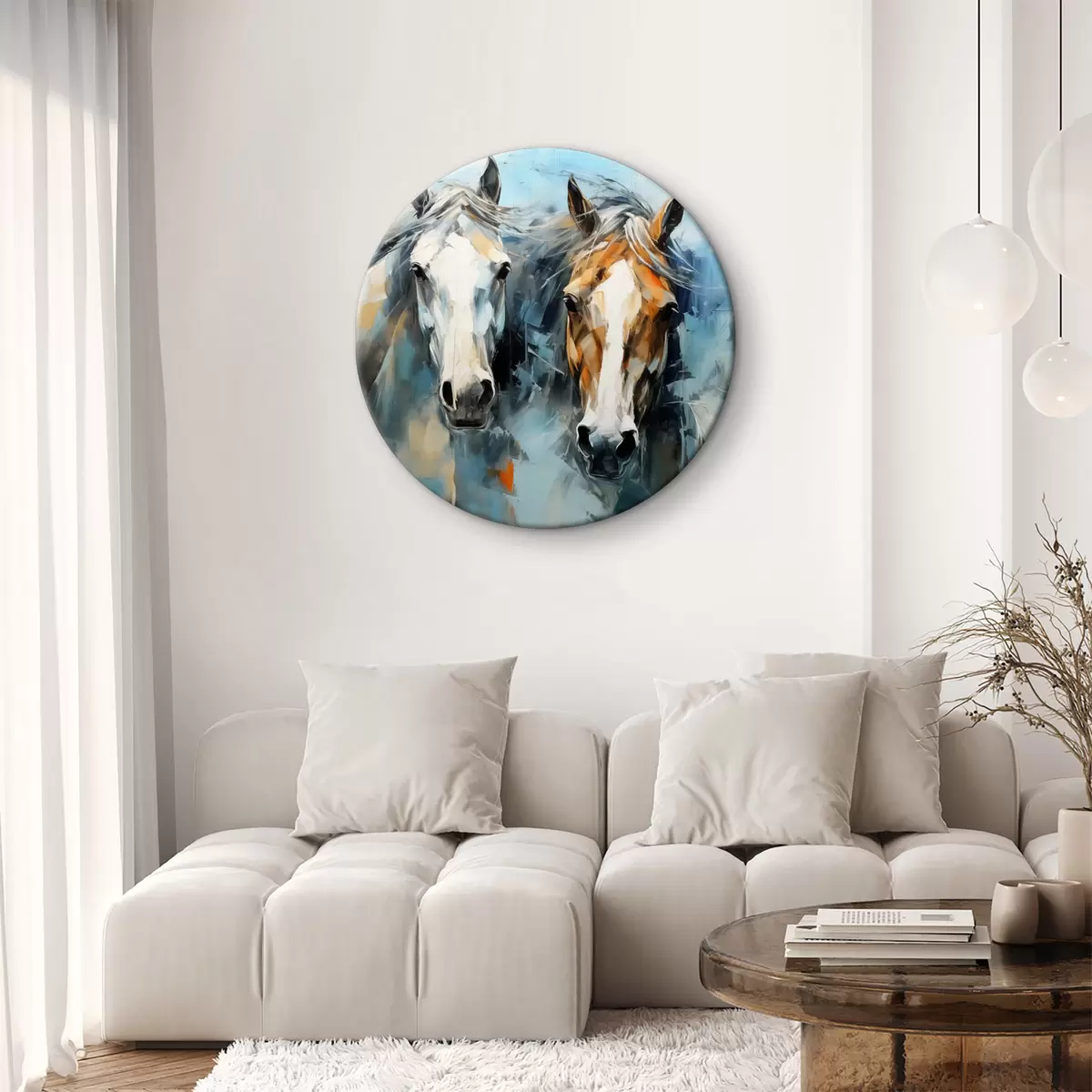 Ronde schilderijen Paarden abstract schilderij, wit, blauw, bruine kleur r40493