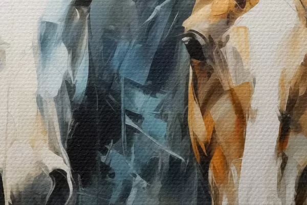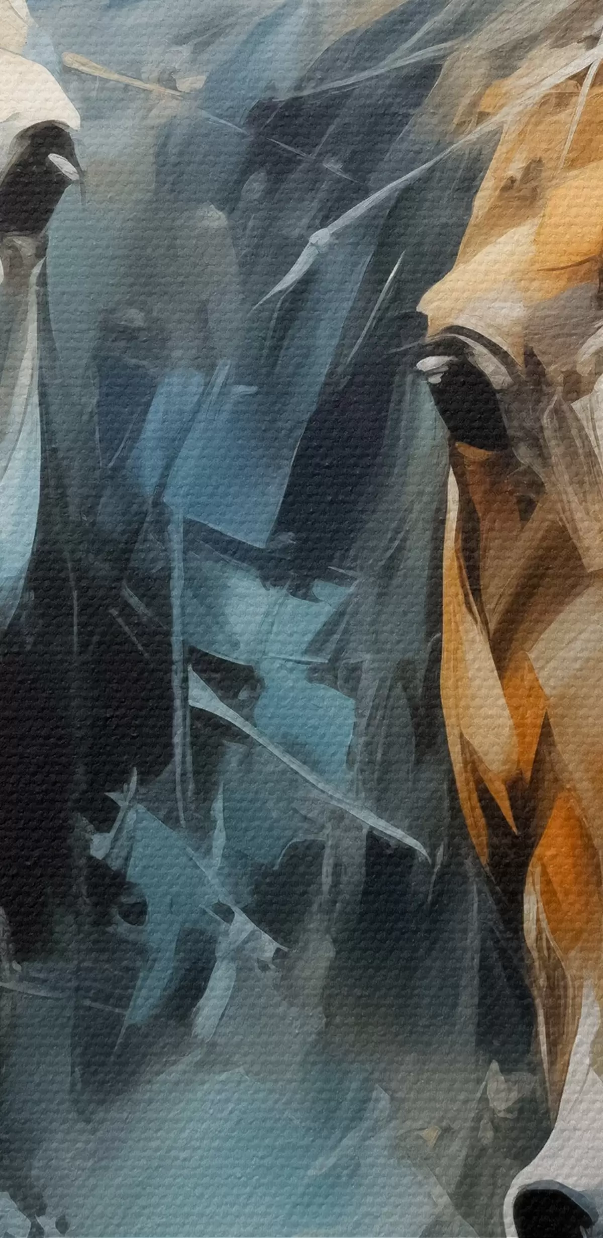 Afbeelding Paarden abstract schilderij, wit, blauw, bruine kleur Nr r40493