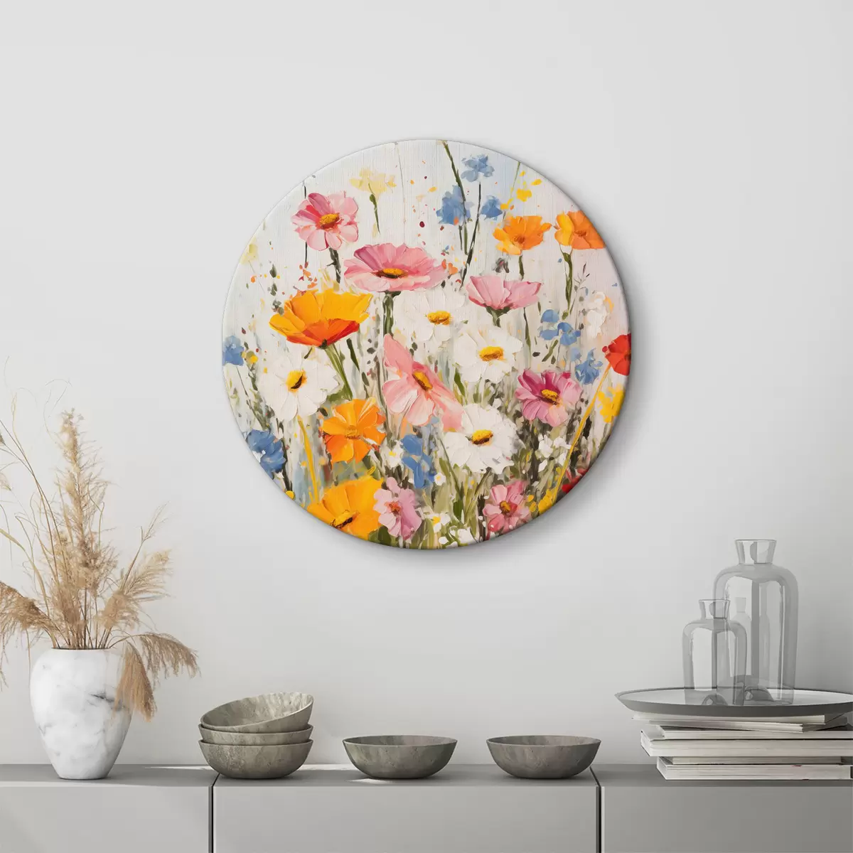 Ronde schilderijen Abstract veld bloemen r40504