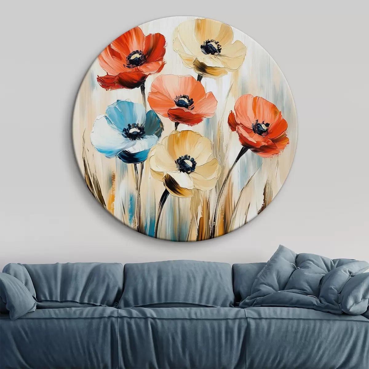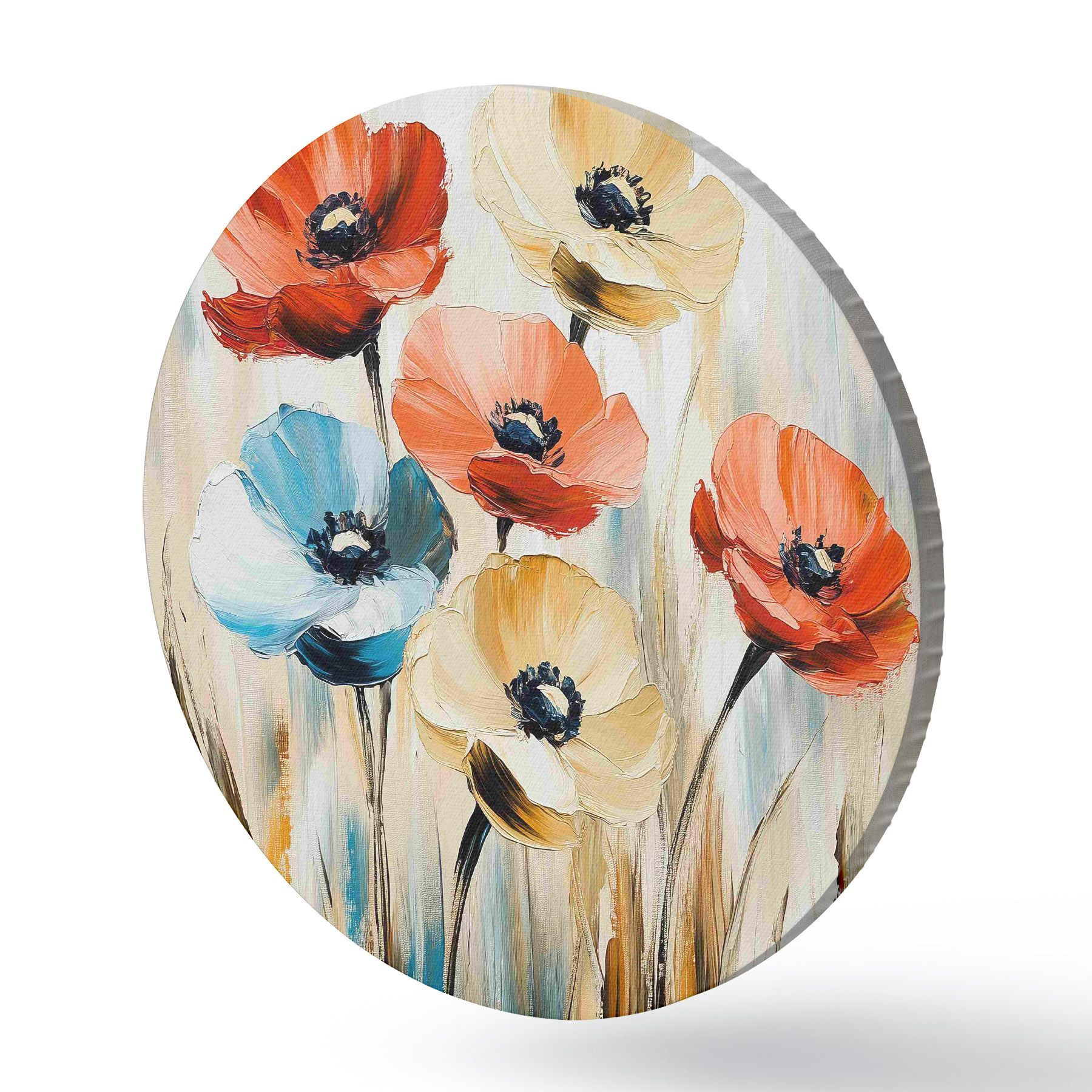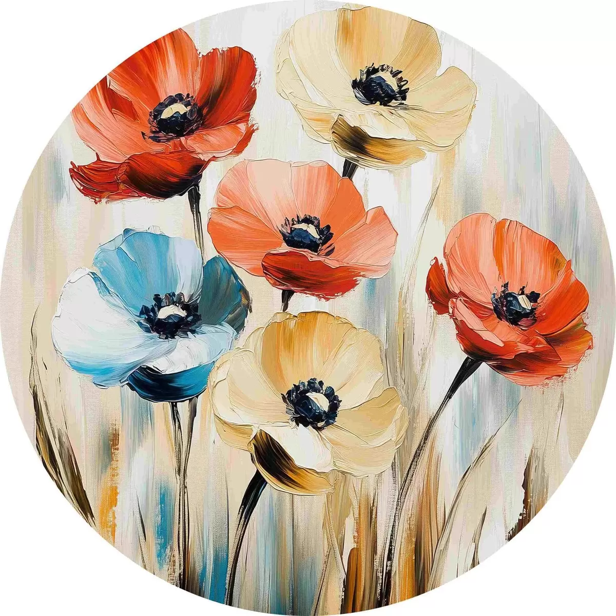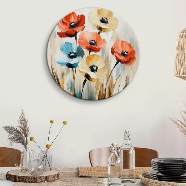 Ronde schilderijen Veelkleurige klaprozen r40505