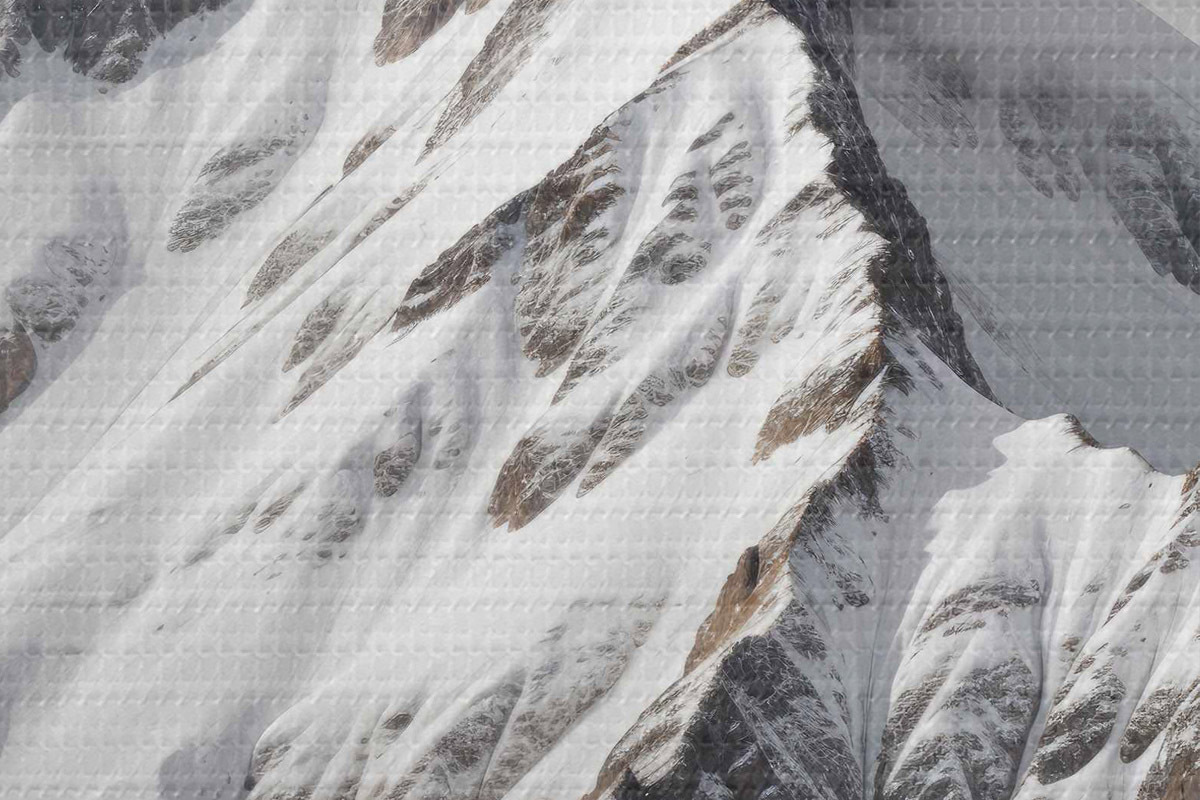 Afbeelding Besneeuwde zwarte en witte bergtoppen in een bewolkt, dramatisch landschap Nr r40553
