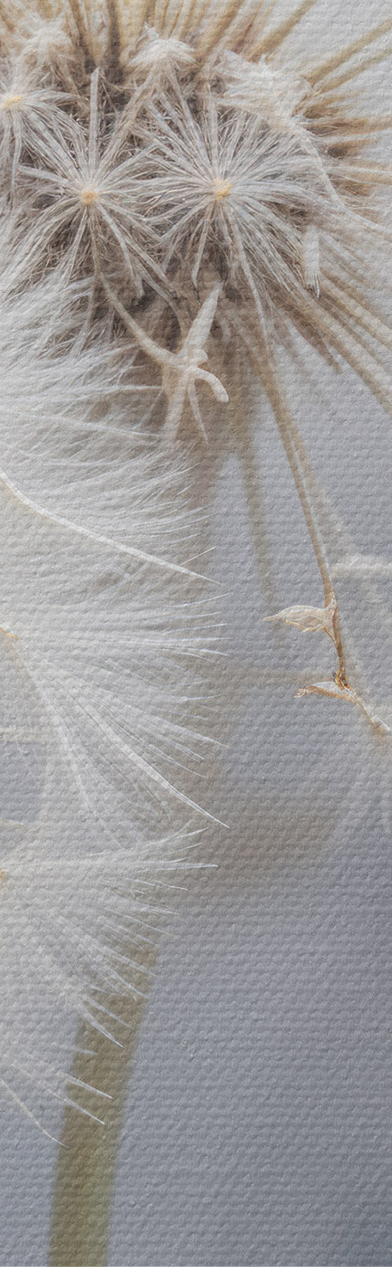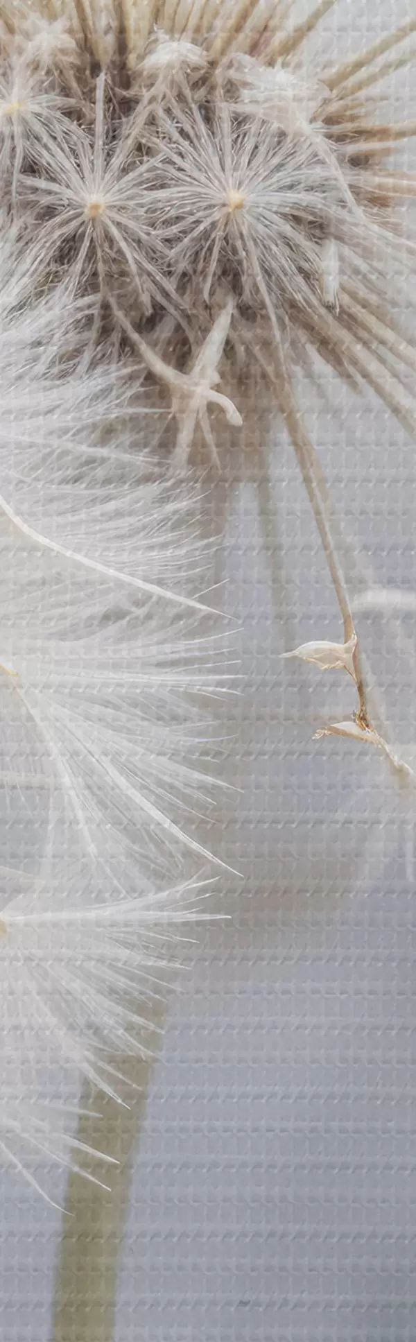 Afbeelding Witte paardenbloem bloemen met pluizige zaden op een wazige grijze achtergrond Nr r40556