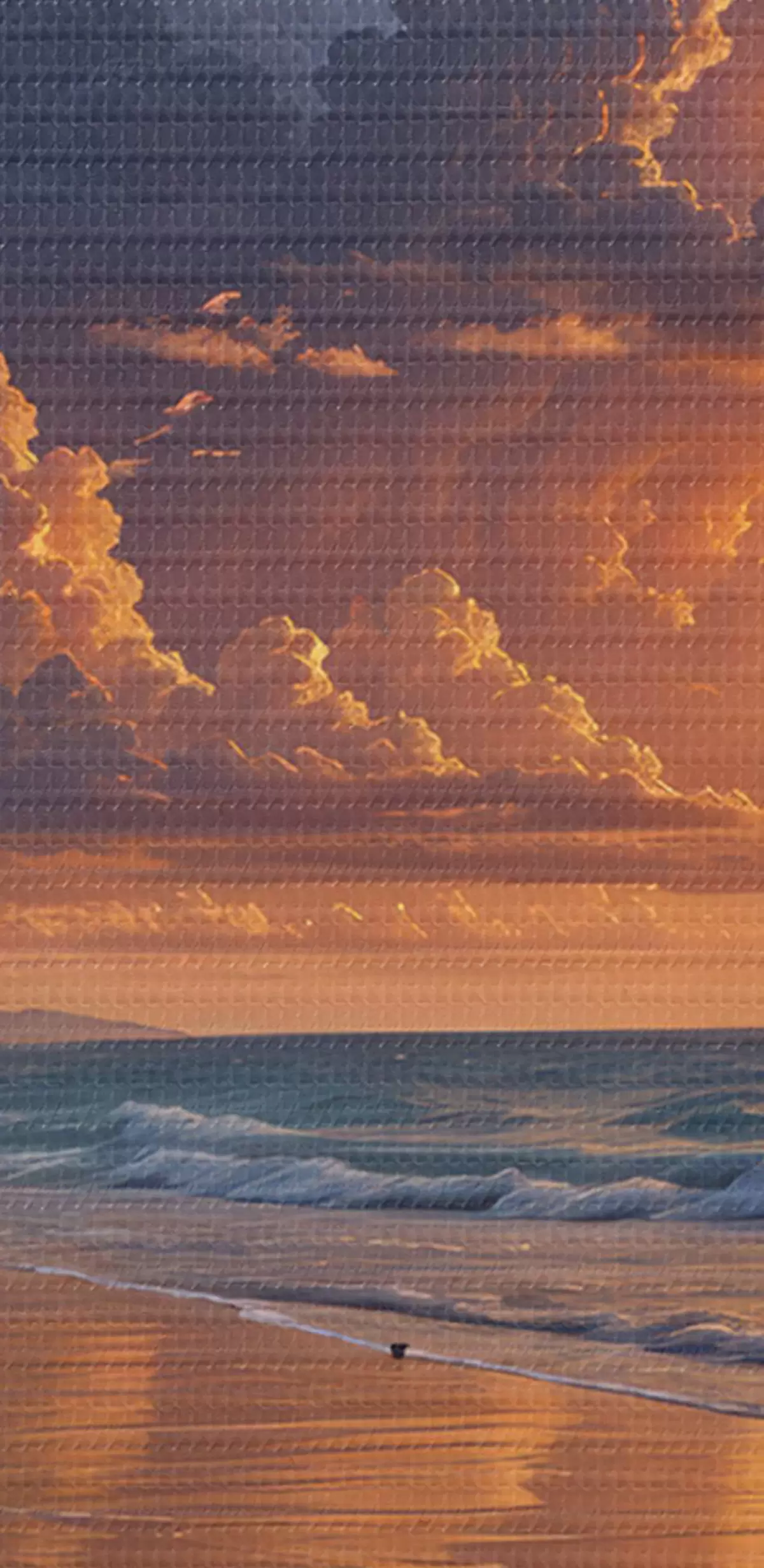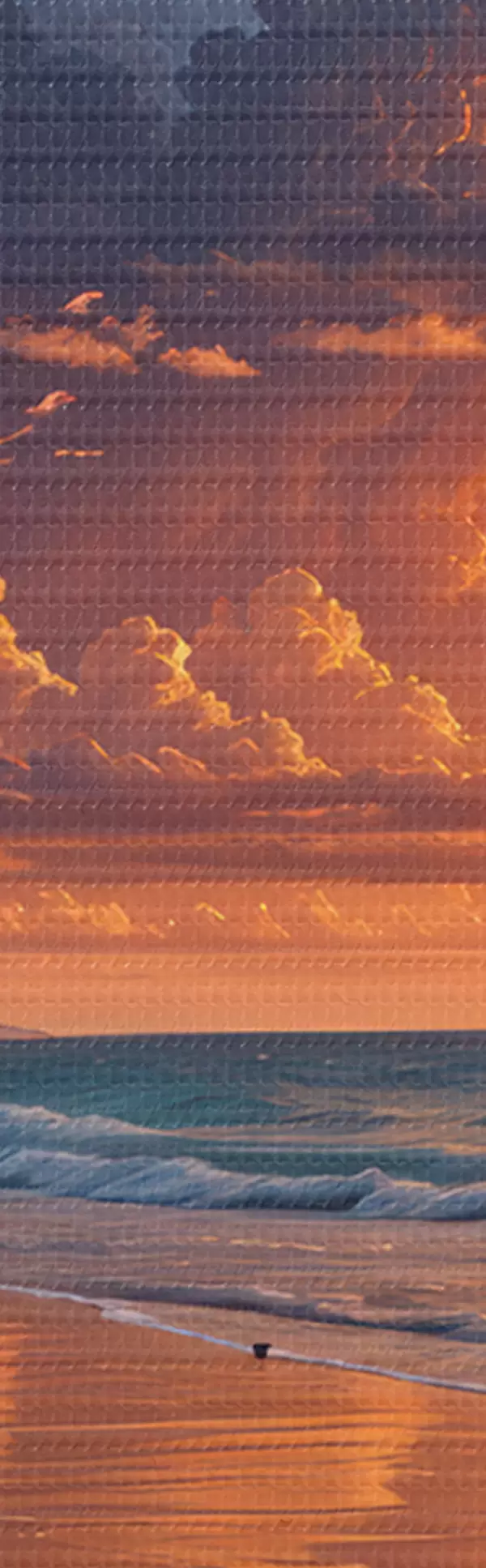 Afbeelding Dramatische zonsondergang boven een tropisch strand, met levendige oranje en roze wolken die weerspiegelen in het kalme water Nr r40599