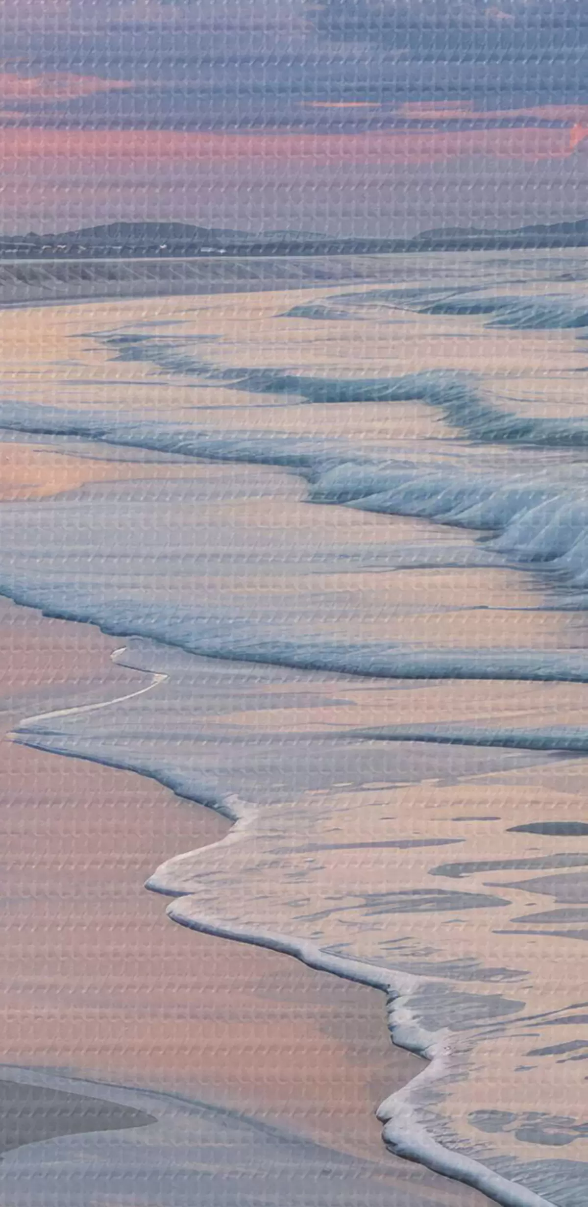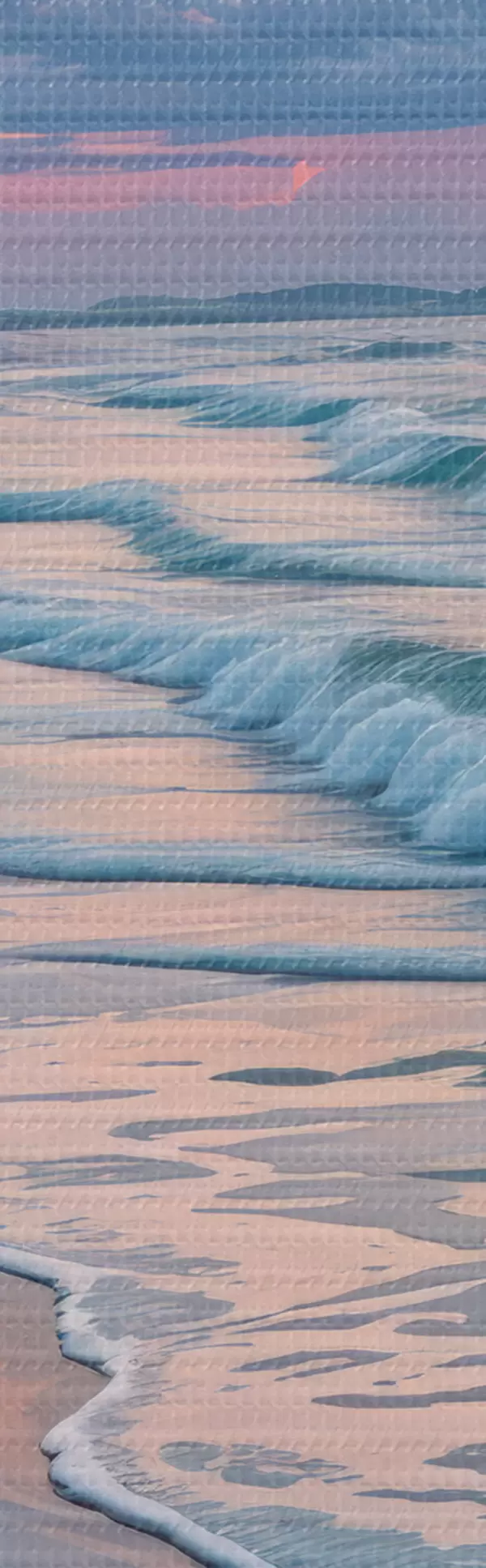 Afbeelding Rustige scène op het strand bij zonsondergang, met kabbelende golven op de zandkust Nr r40606