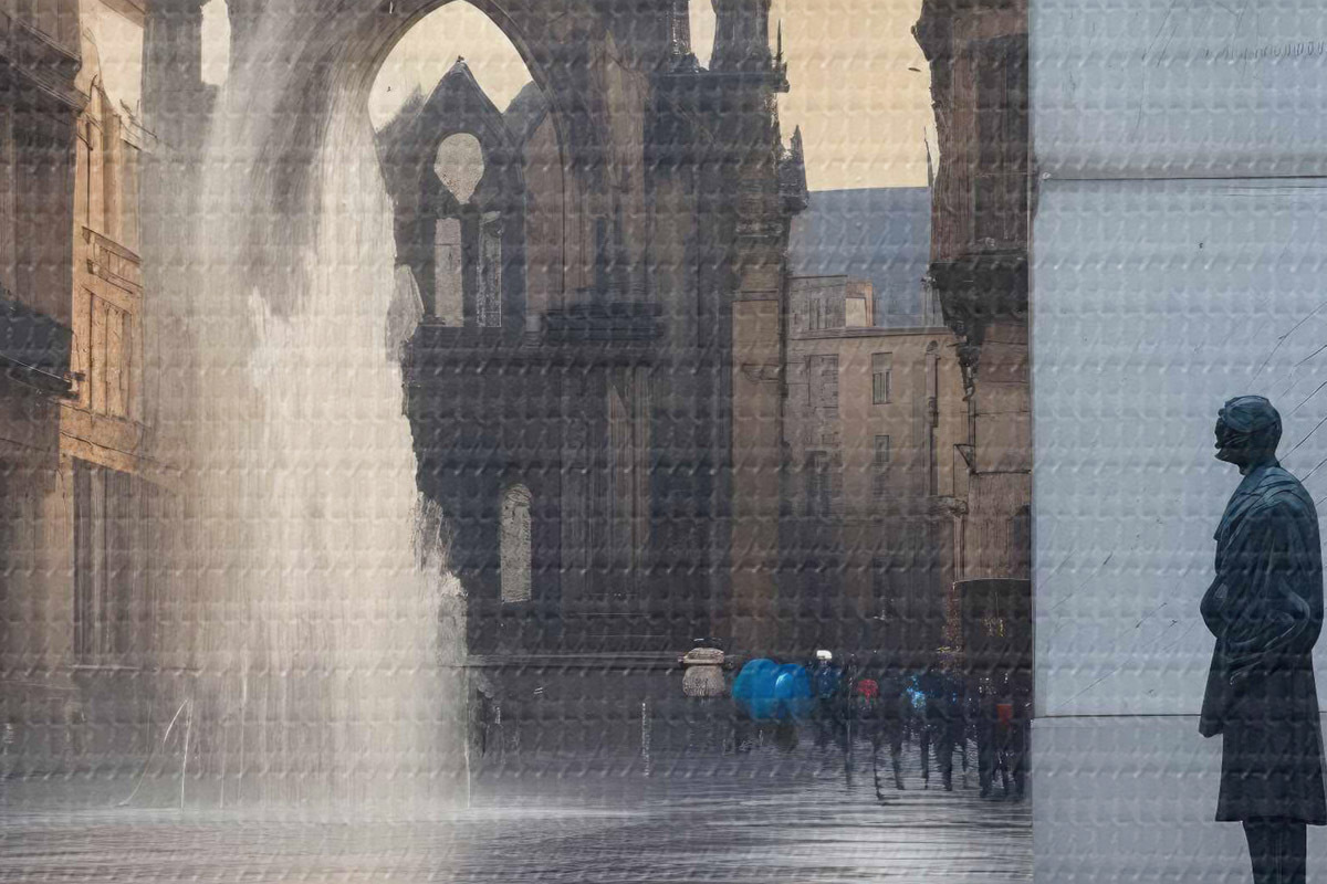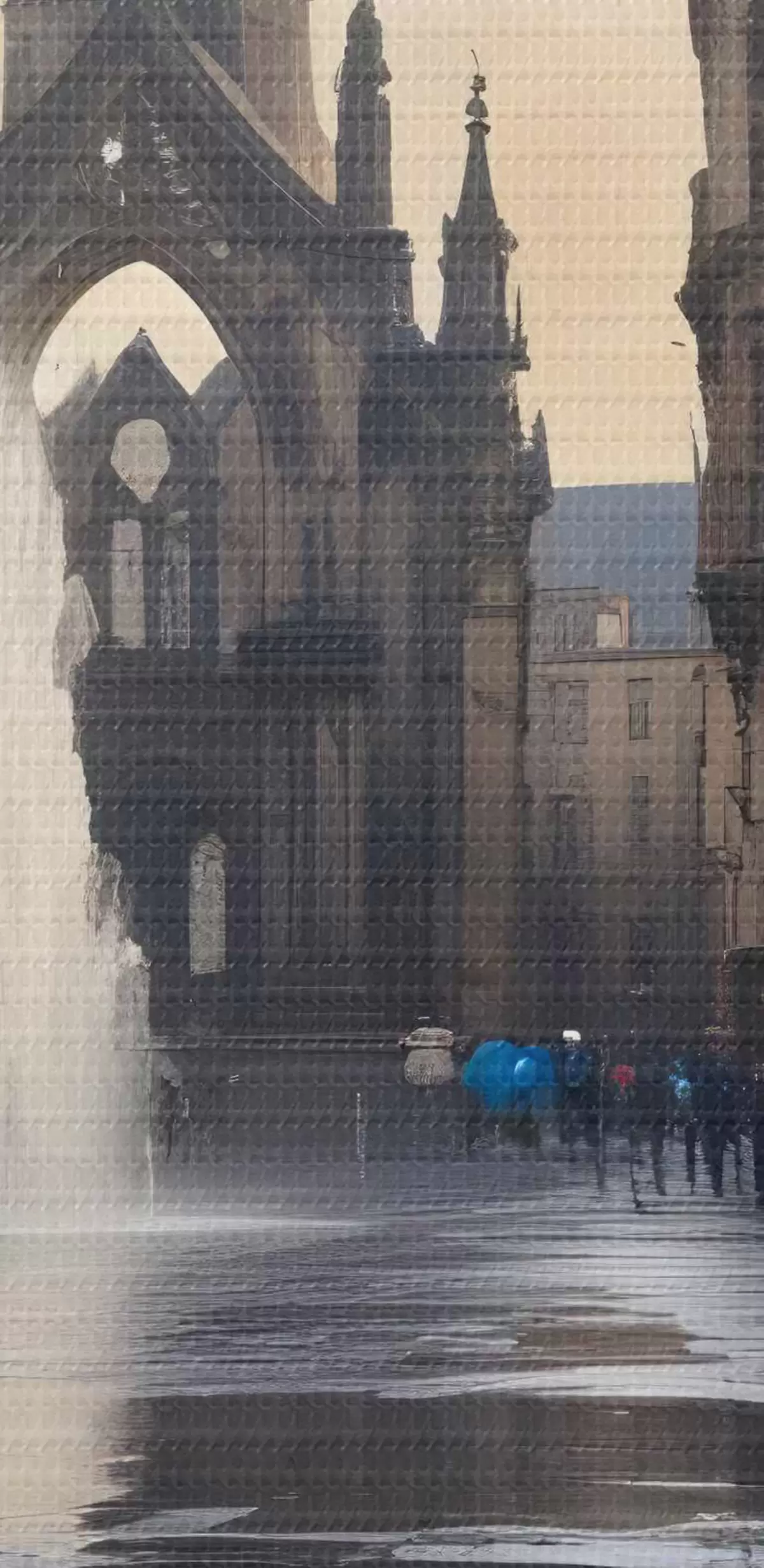 Afbeelding Een middeleeuwse kathedraal met gotische architectuur staat op de achtergrond, de torenspitsen reiken naar de hemel Nr r40611