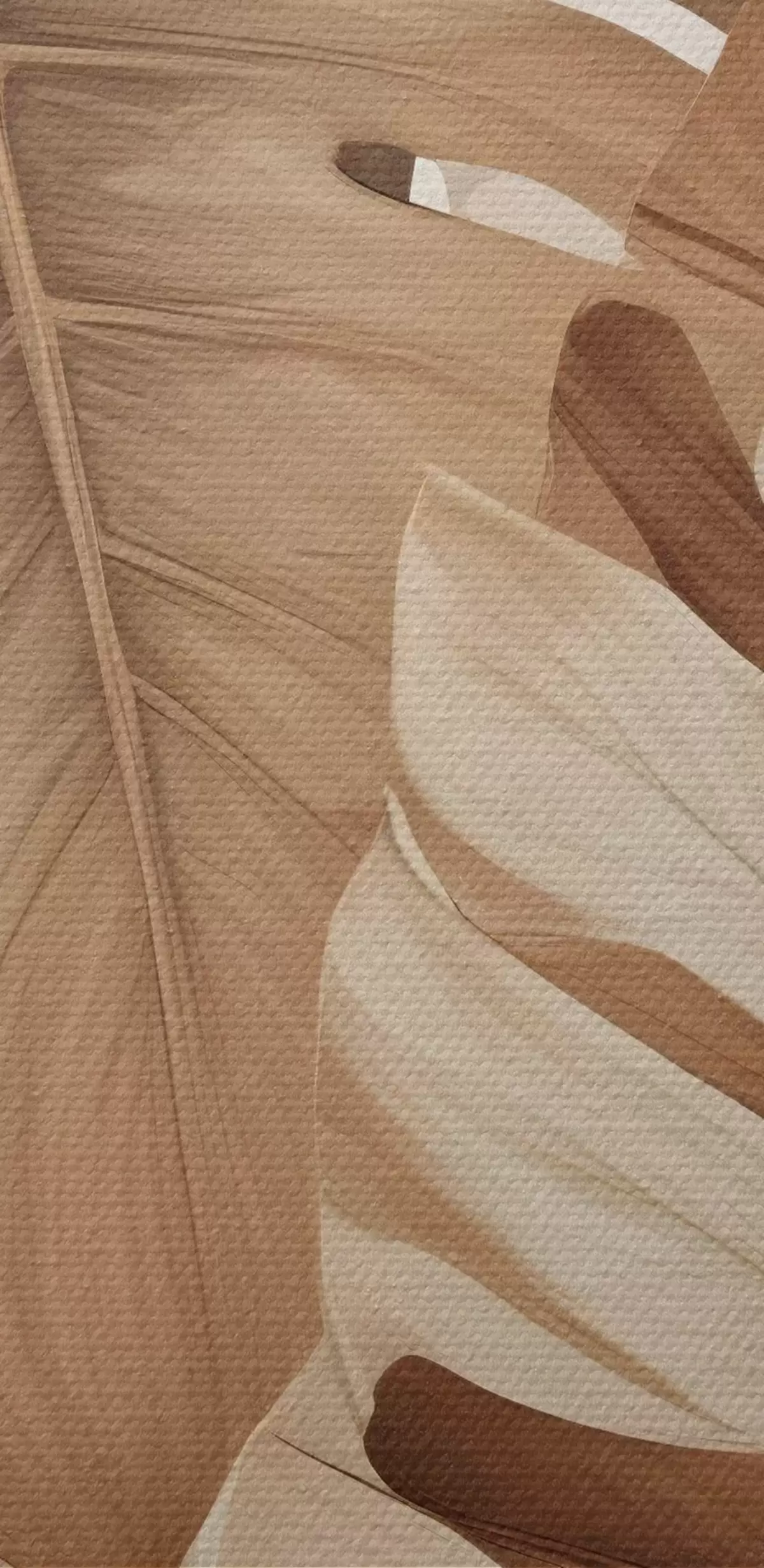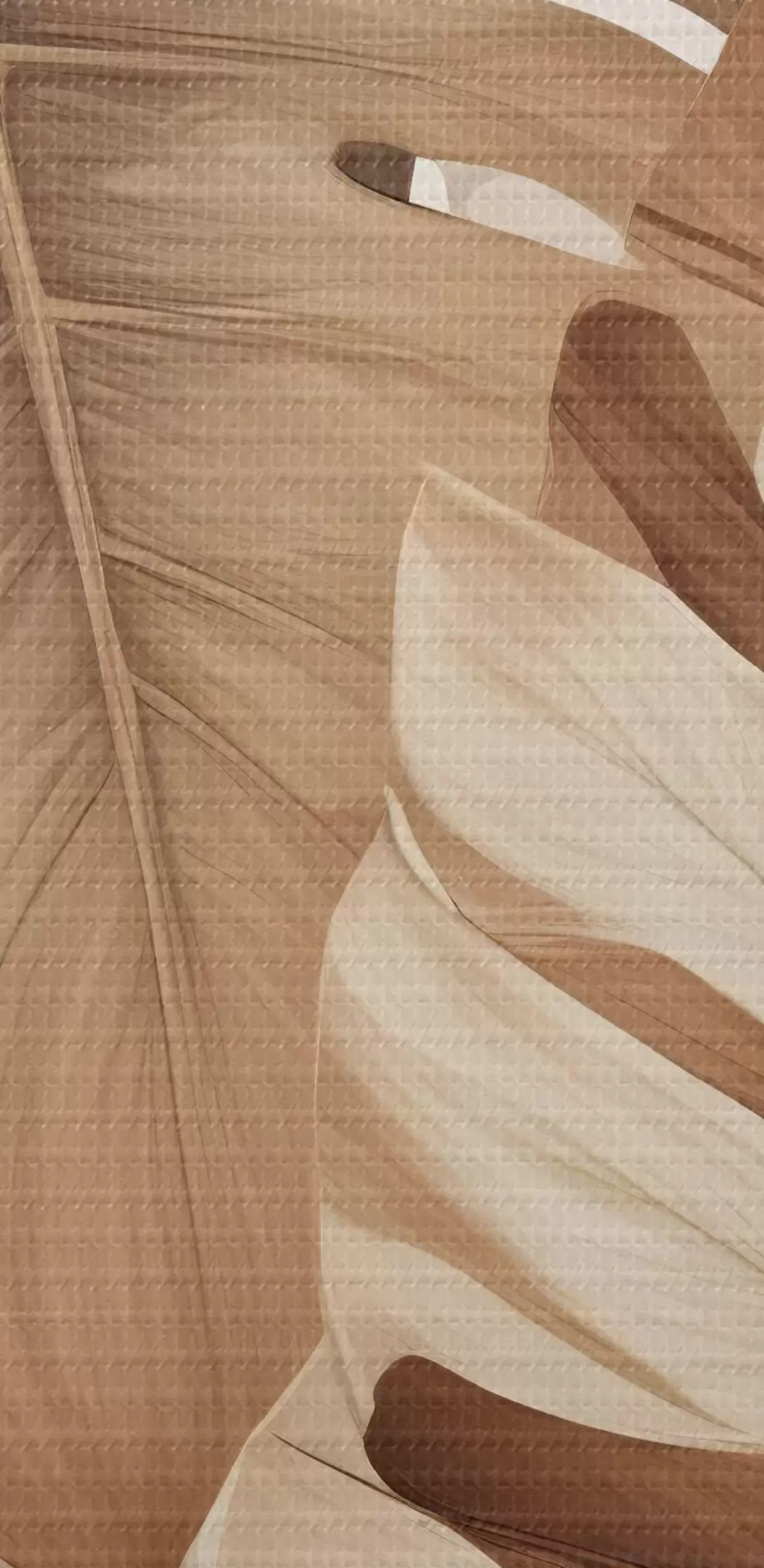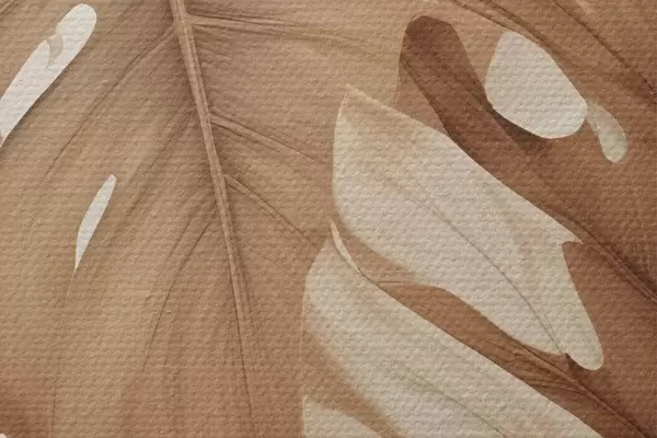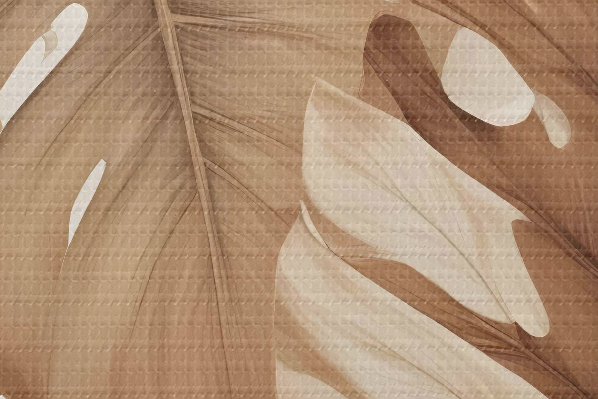 Afbeelding Een print van tropische bladeren met een natuurlijke, organische textuur in bruin- en beigetinten Nr r40613