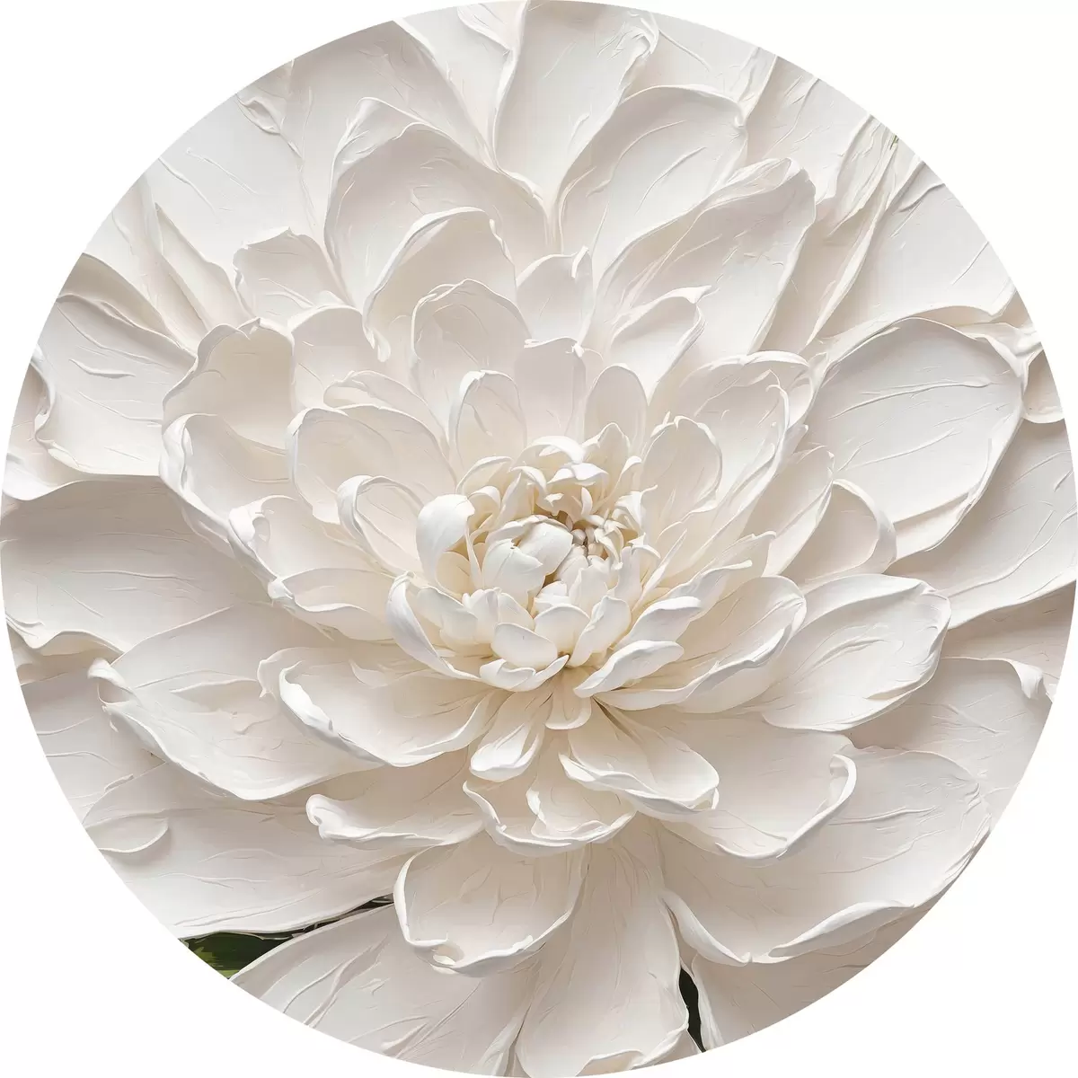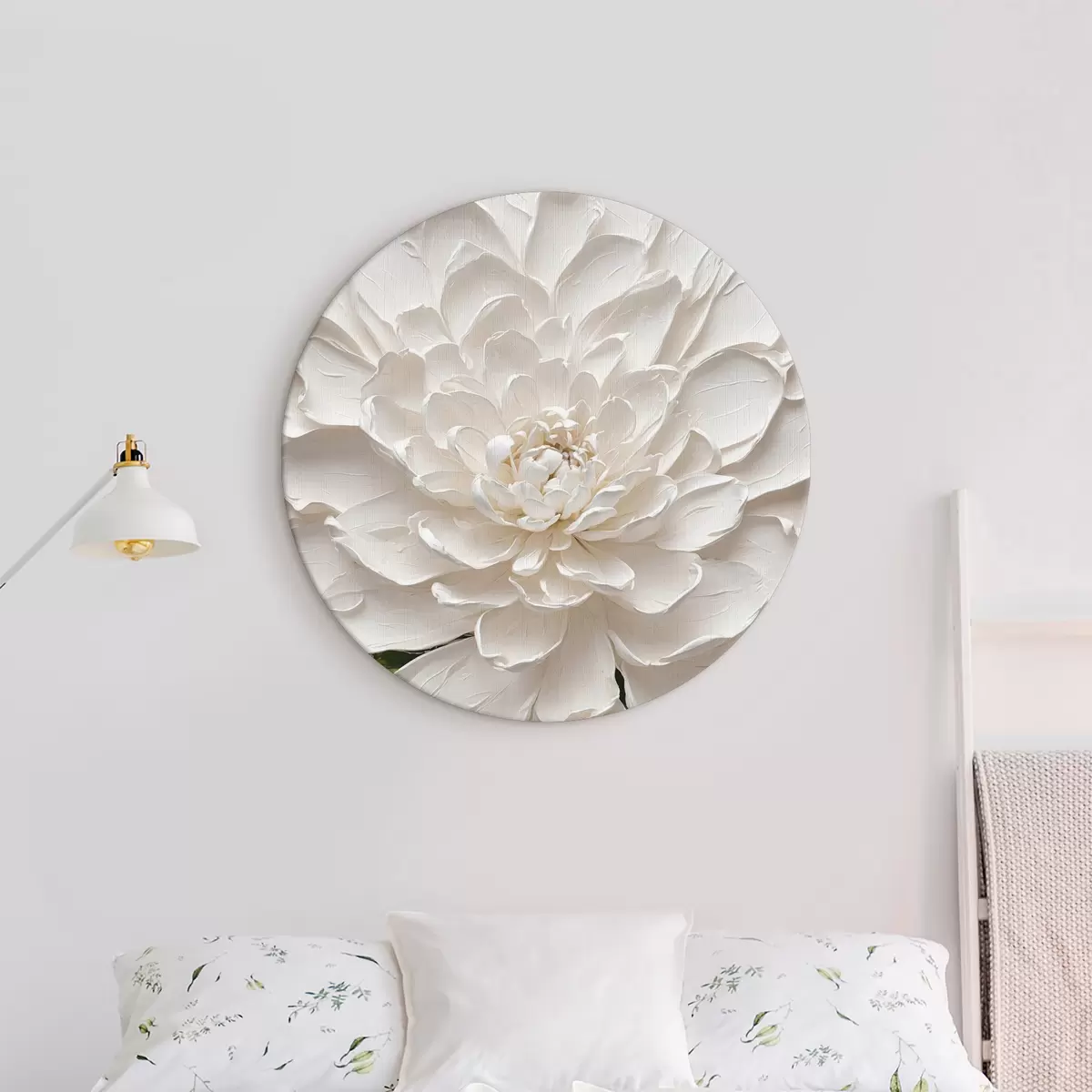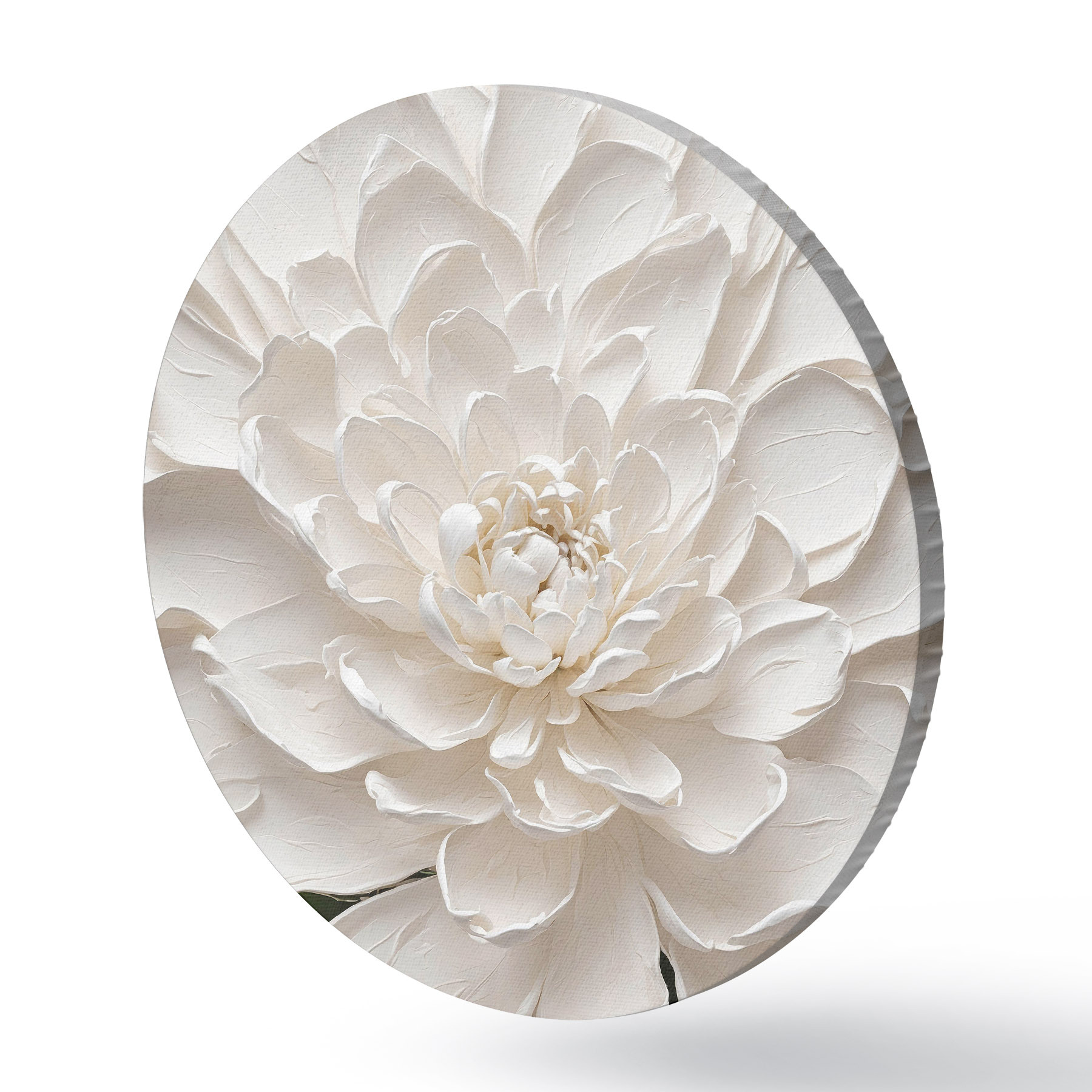 Ronde schilderijen Witte bloem in olie met groene steel r40620