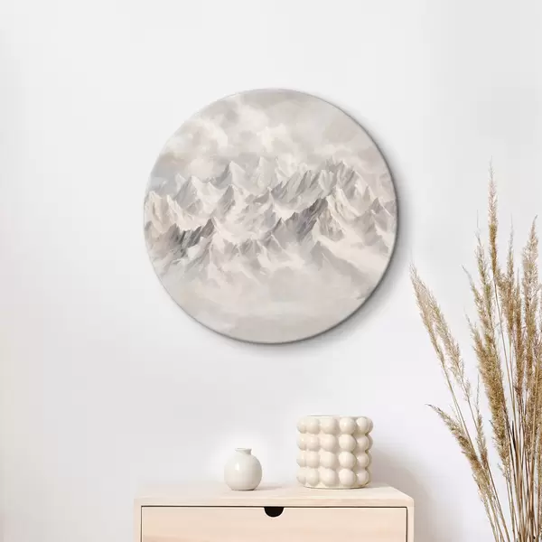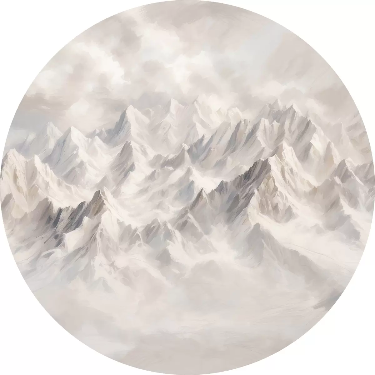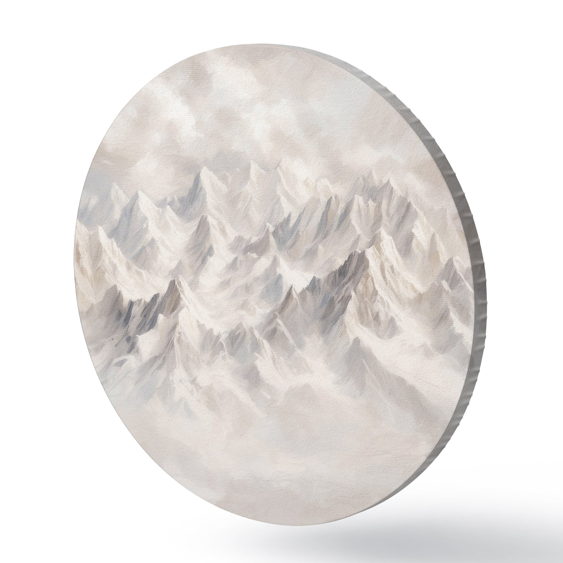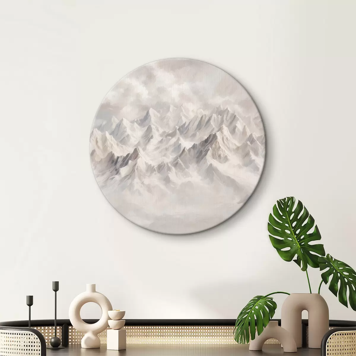 Ronde schilderijen Witte besneeuwde bergen in de mist r40629