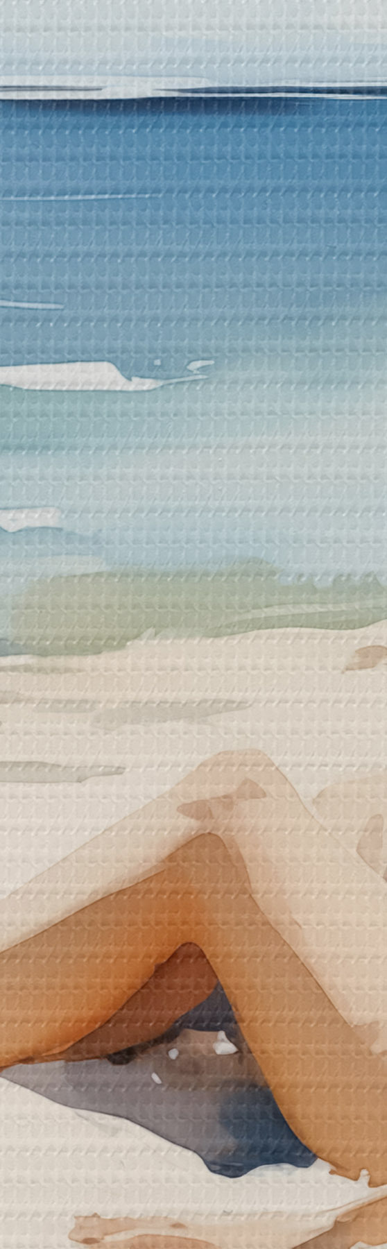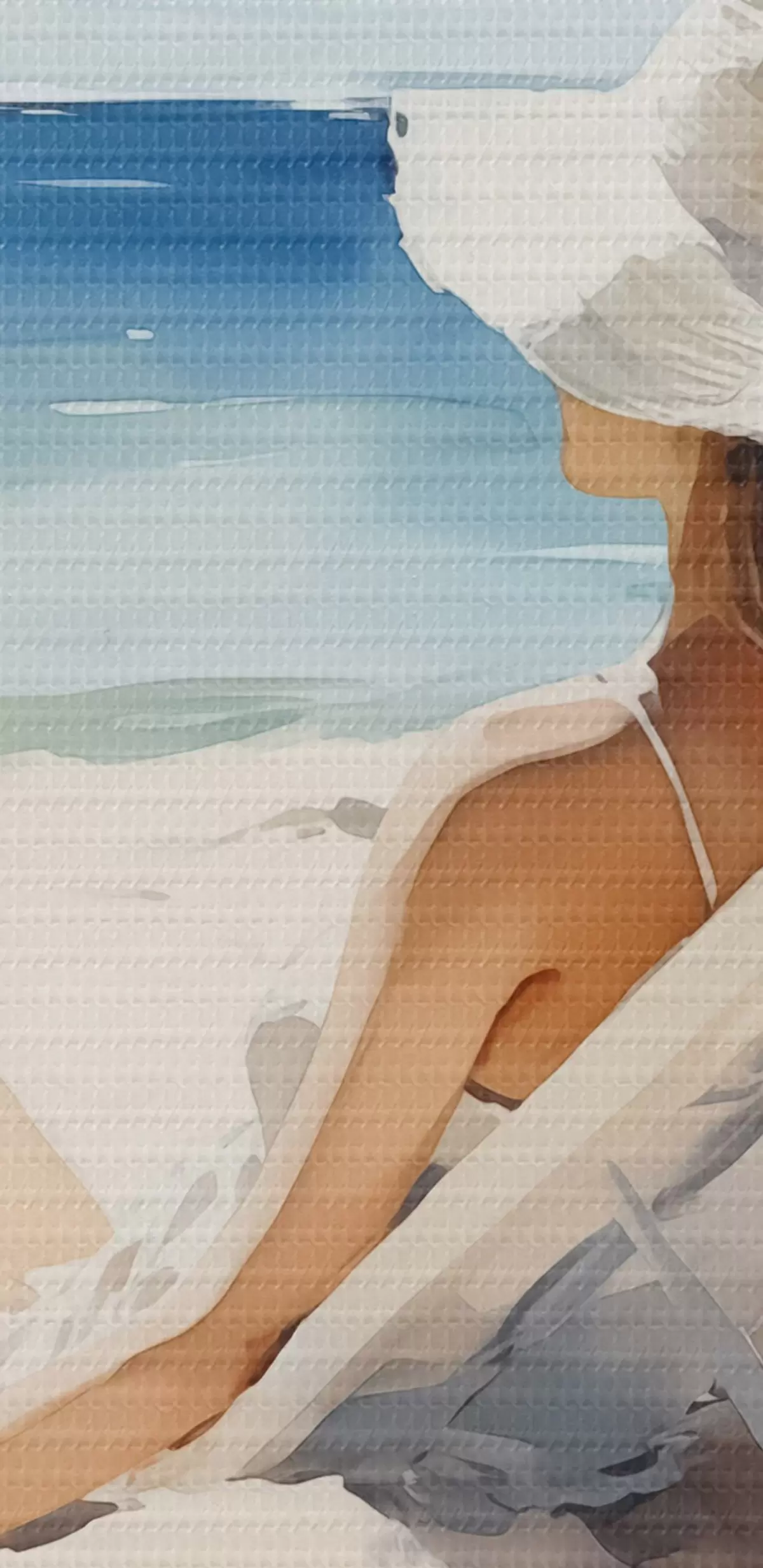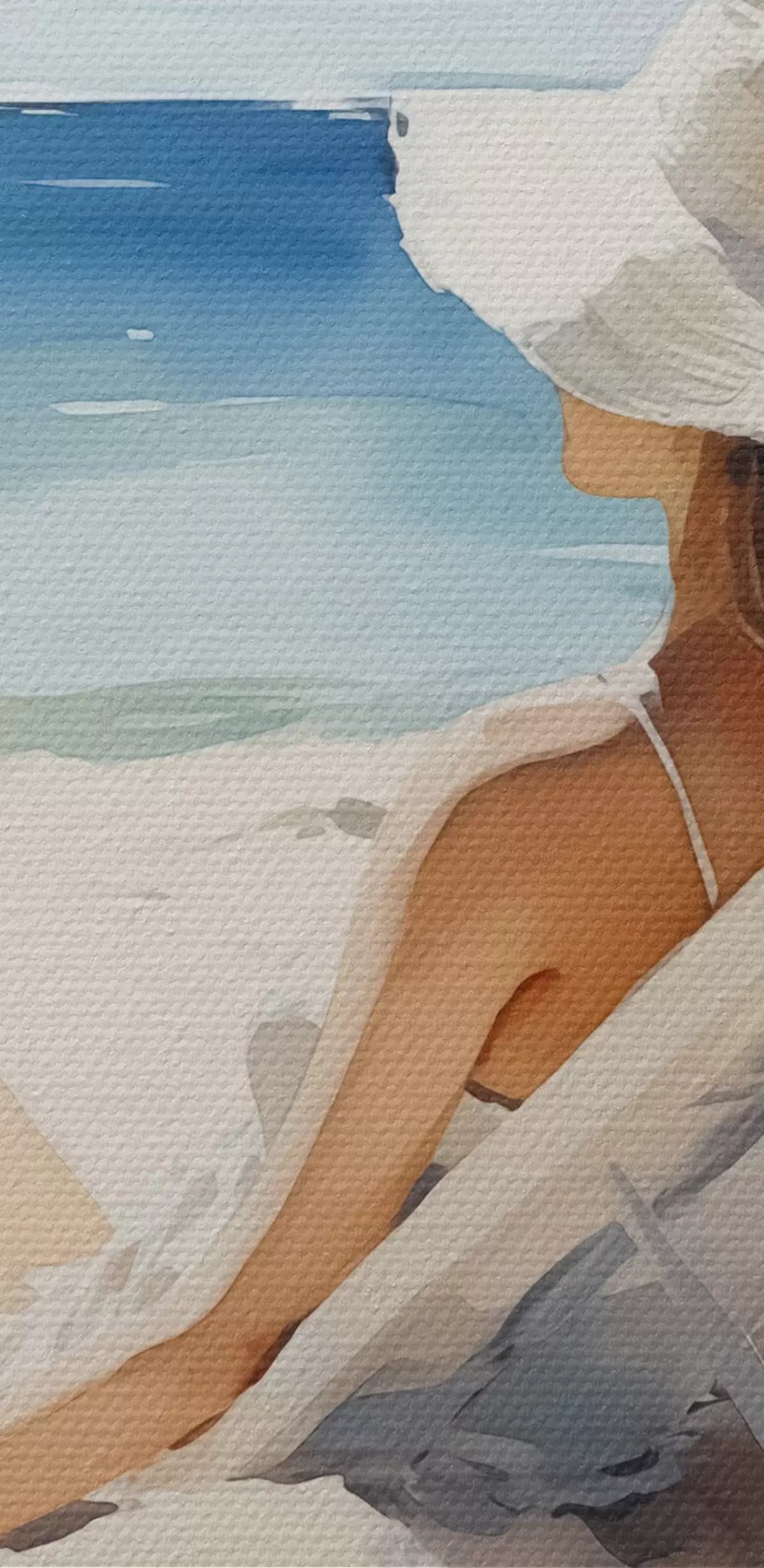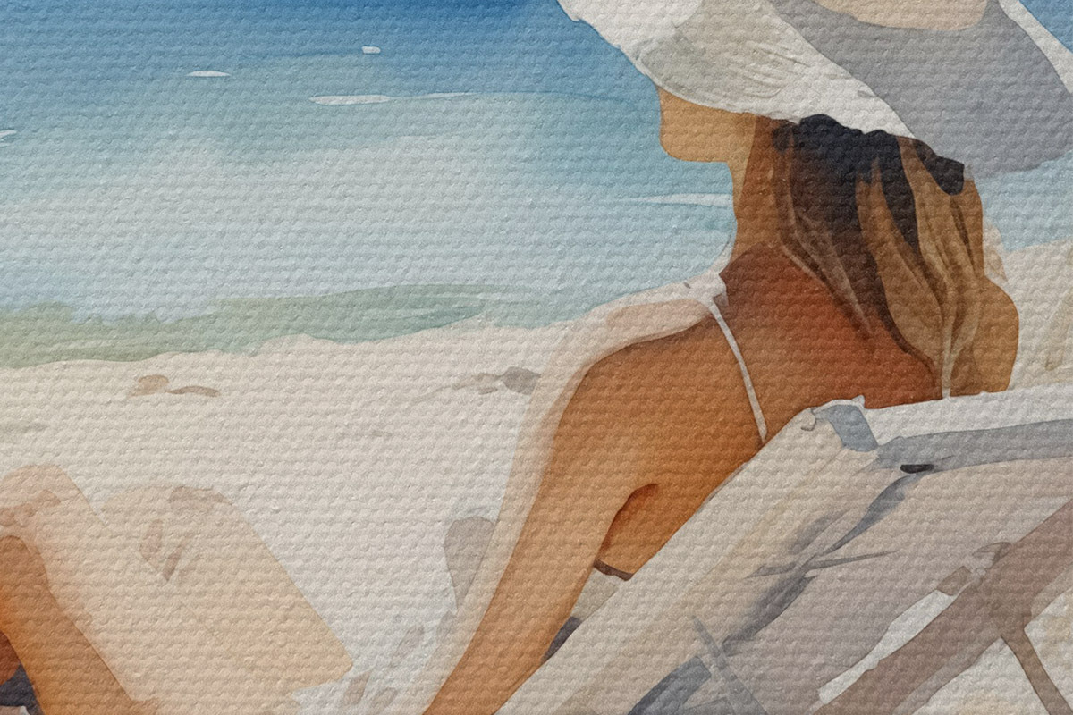 Afbeelding Meisje ontspannend op het strand bij de zee aquarel Nr r40679