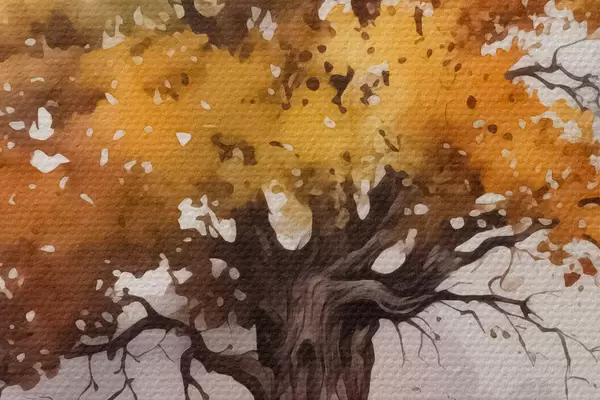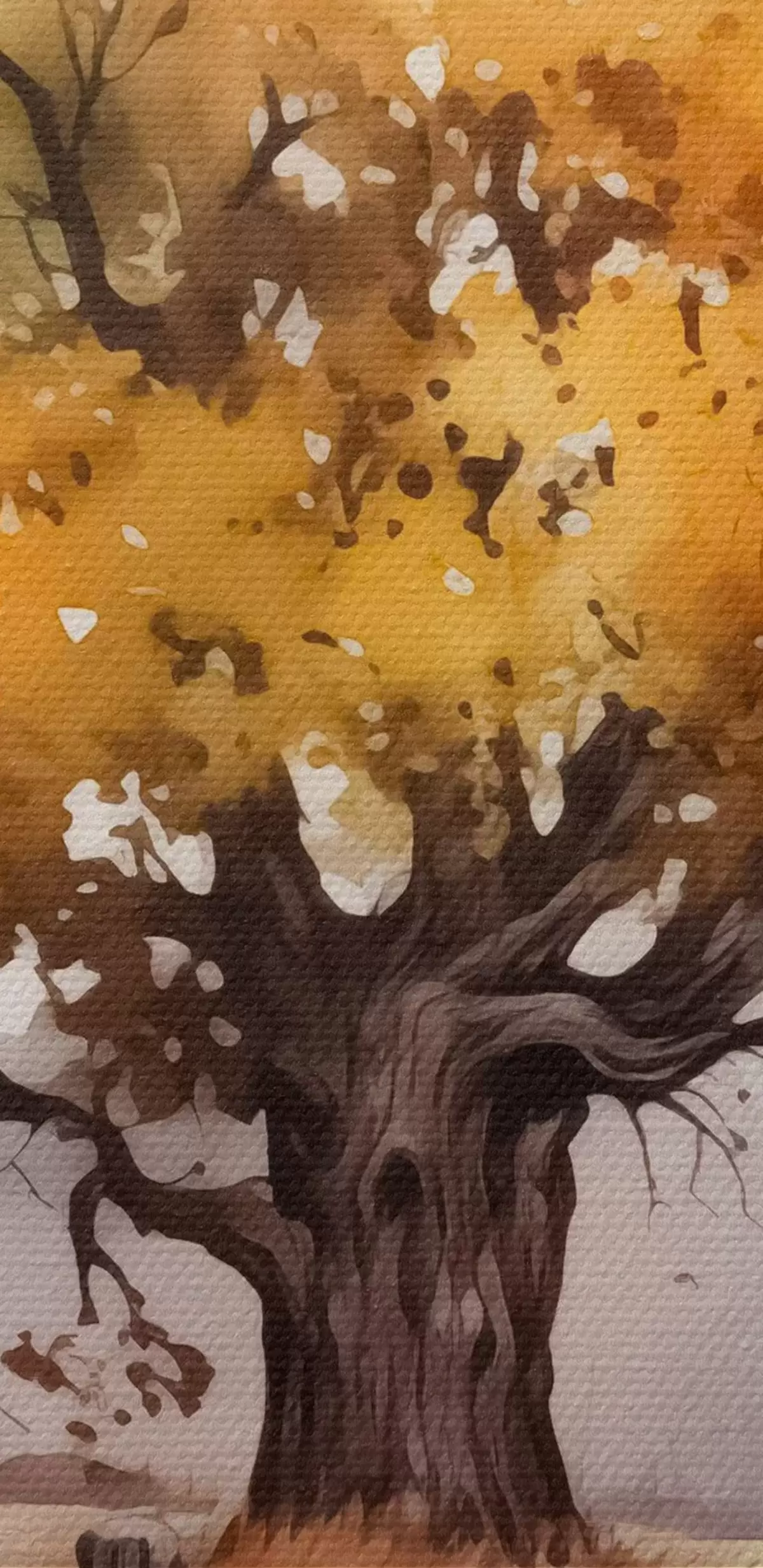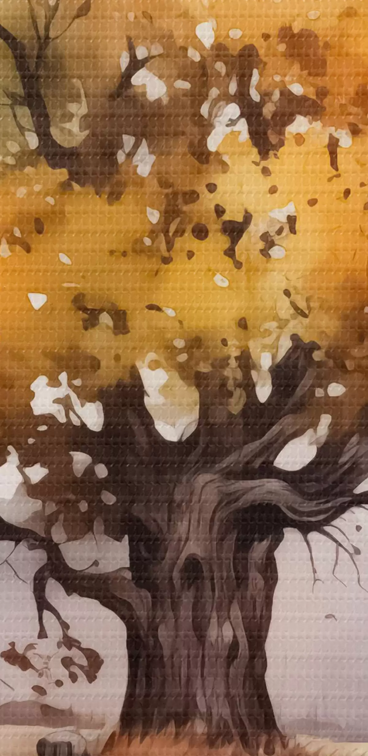 Afbeelding Boom in het veld bij het hek met vergeelde bladeren, herfstlandschap Nr r40680