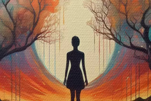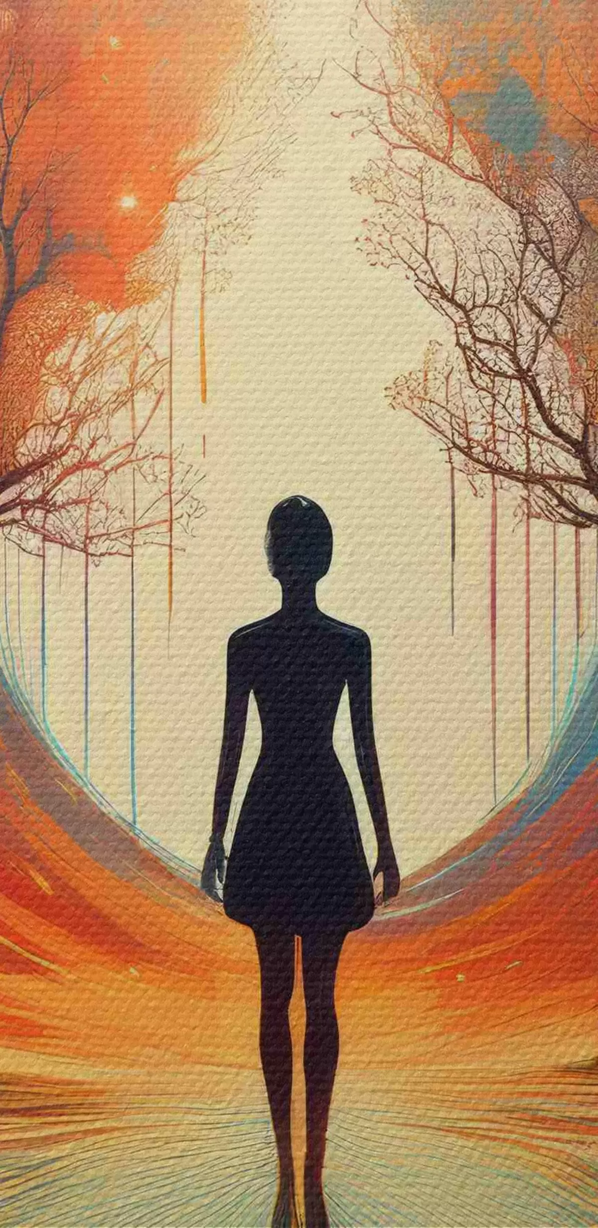 Afbeelding silhouet tussen bomen, zelfbewustzijn, zelfreflectie Nr r40713