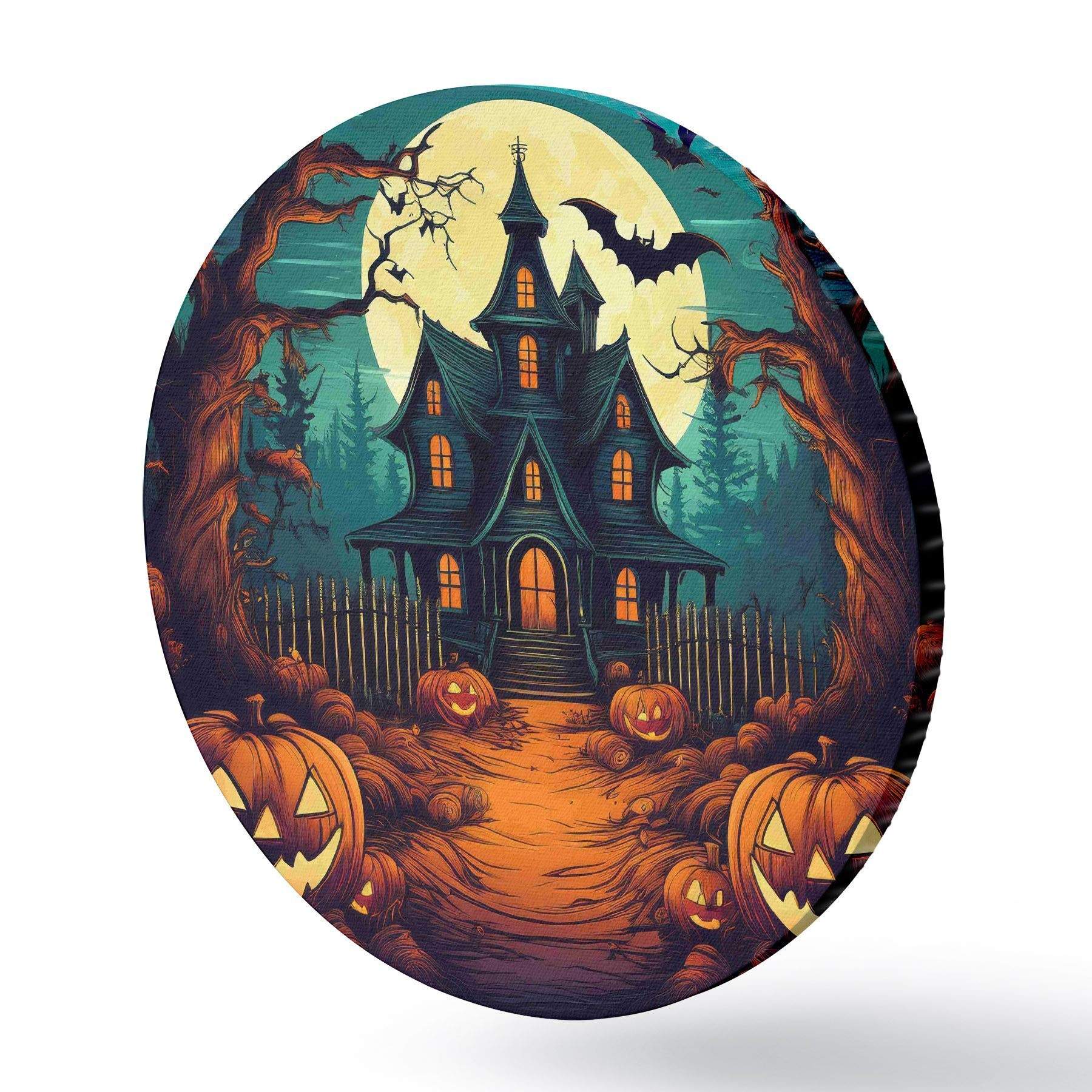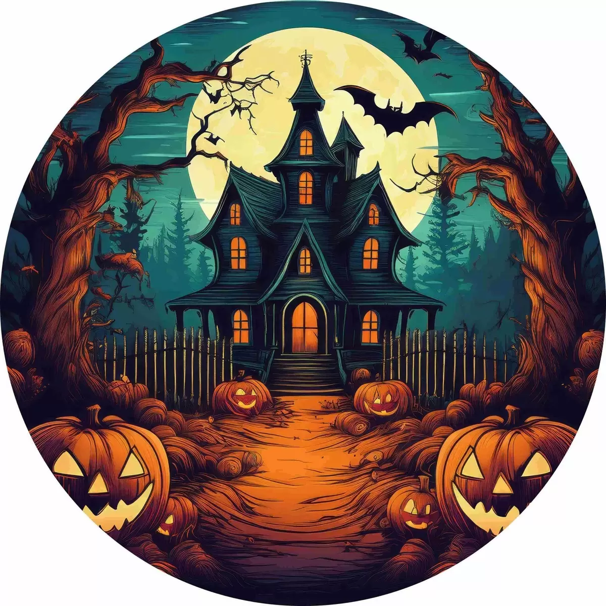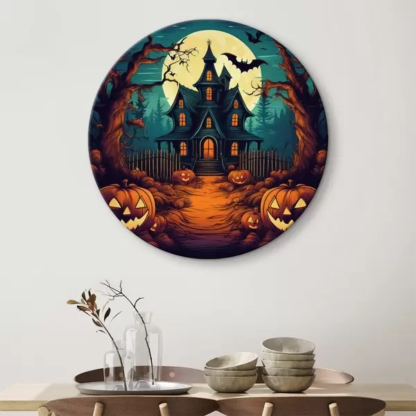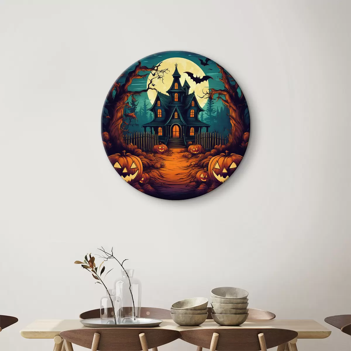 Ronde schilderijen Halloween, kasteel in het bos, horror, vleermuizen r40715
