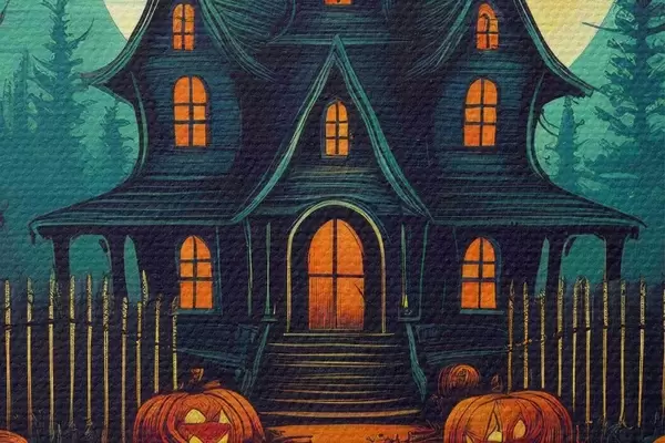 Afbeelding Halloween, kasteel in het bos, horror, vleermuizen Nr r40715