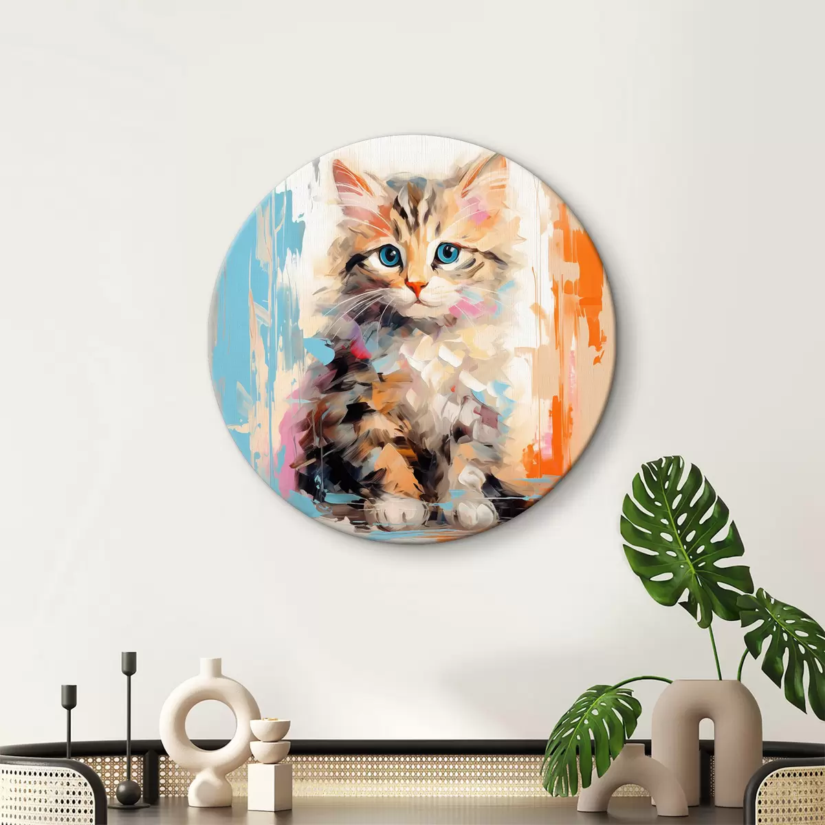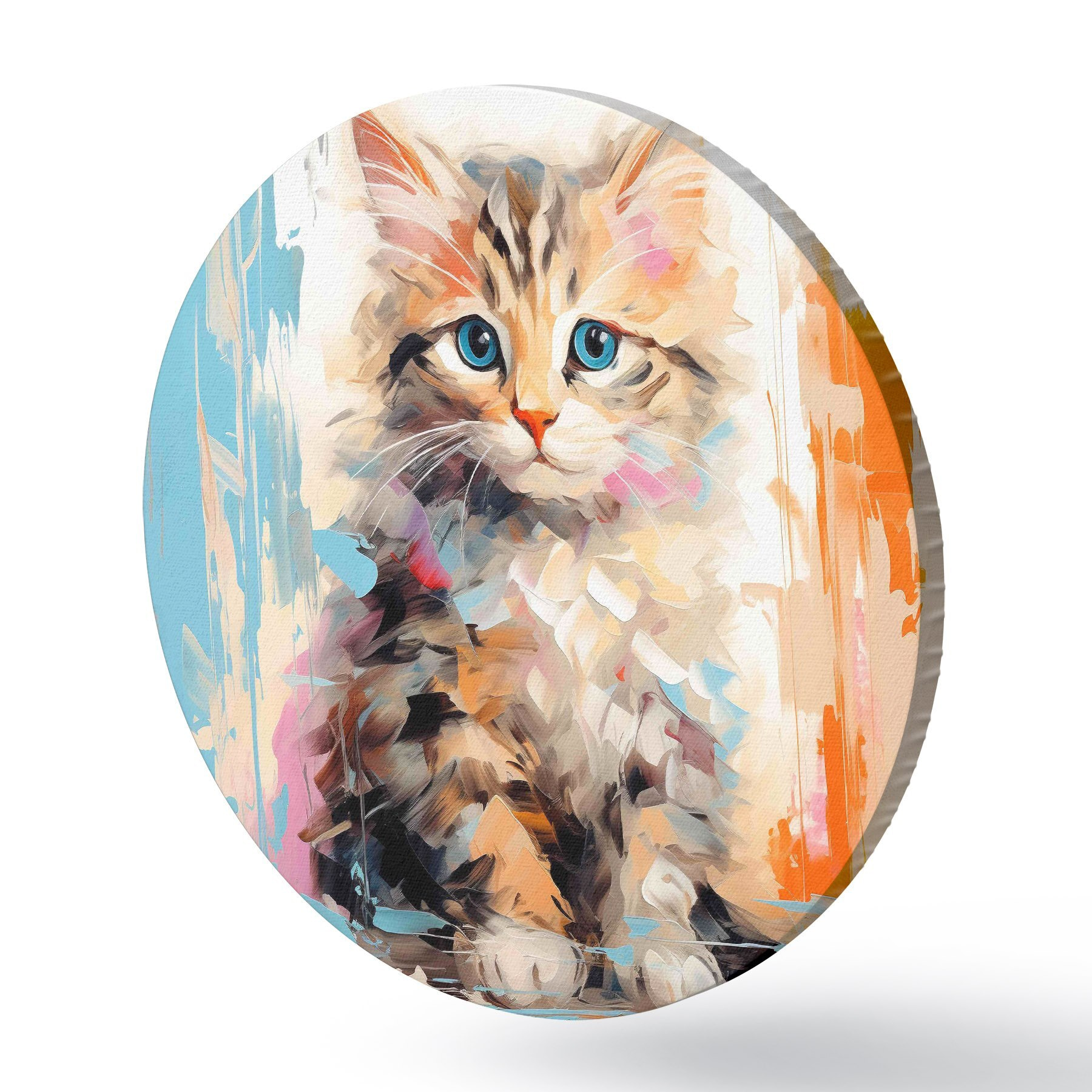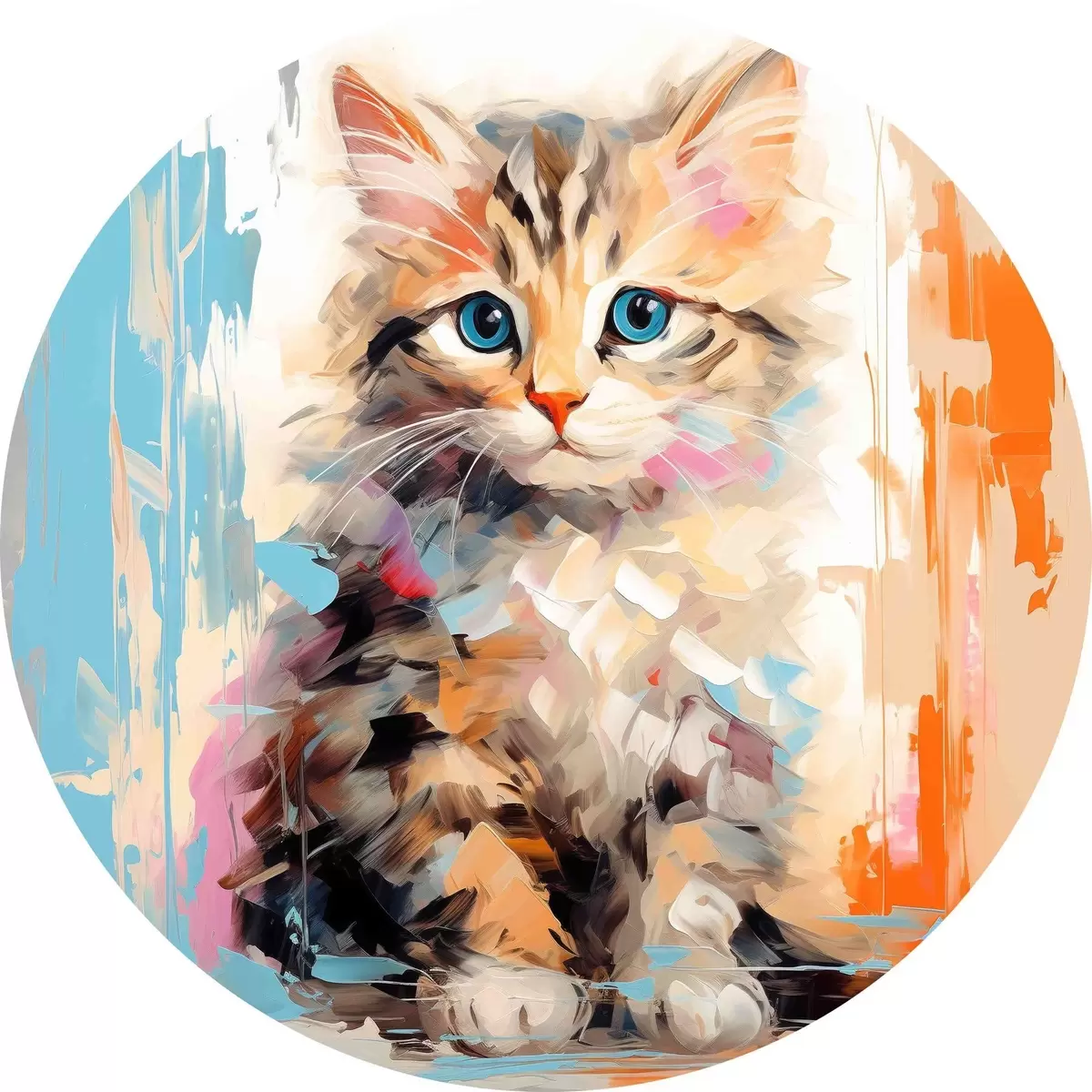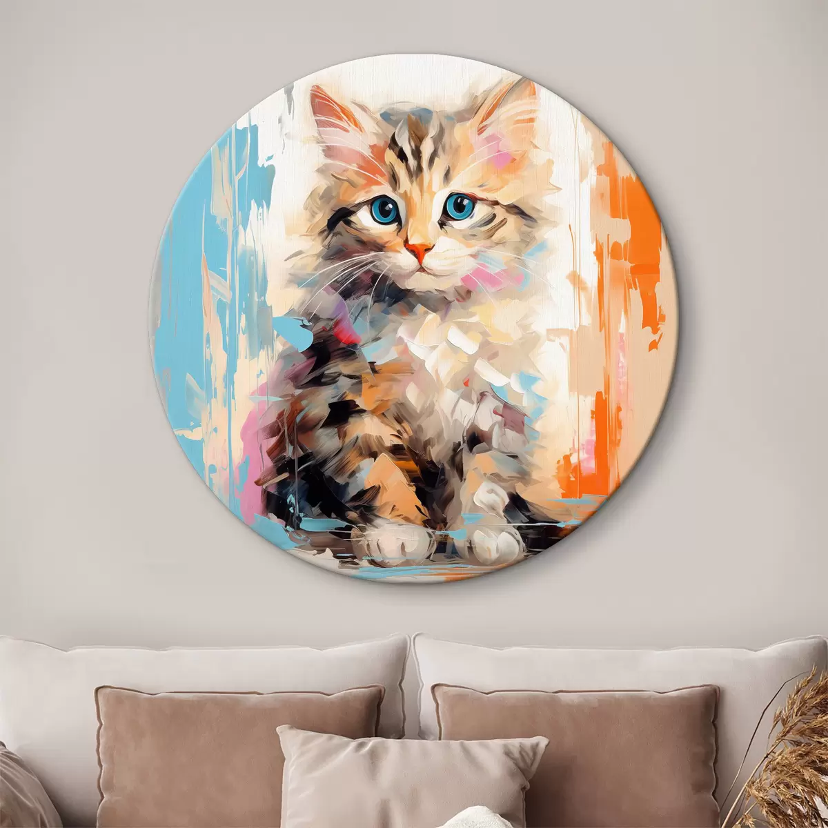 Ronde schilderijen Poesje met penseelstreken r40735
