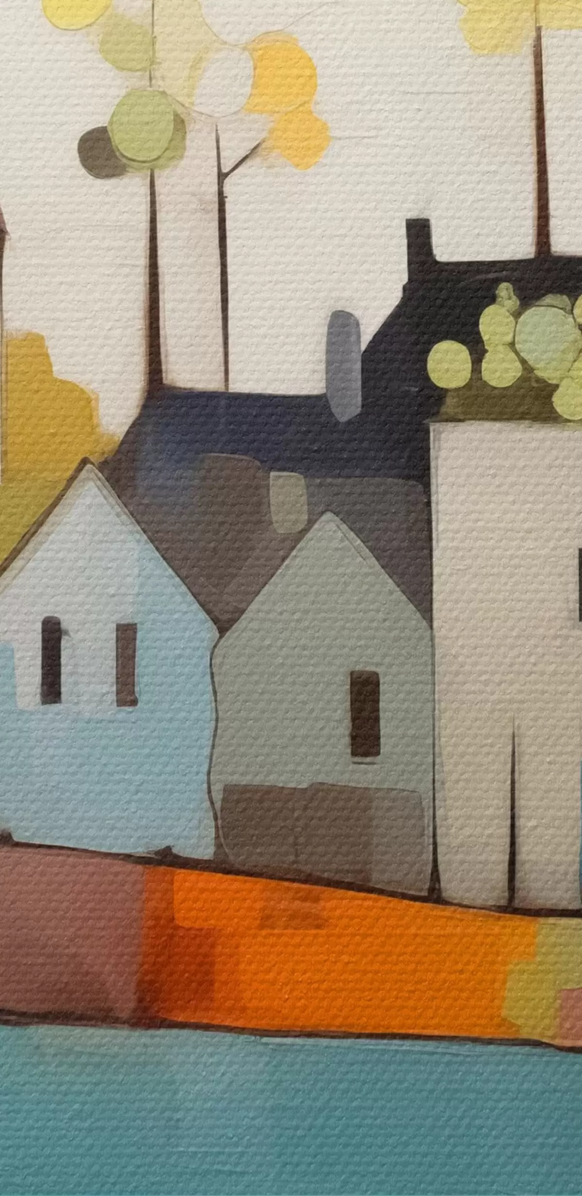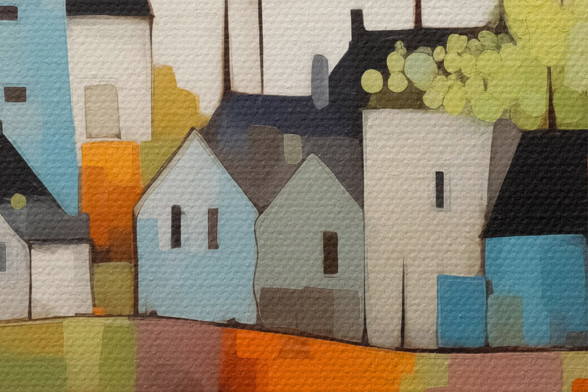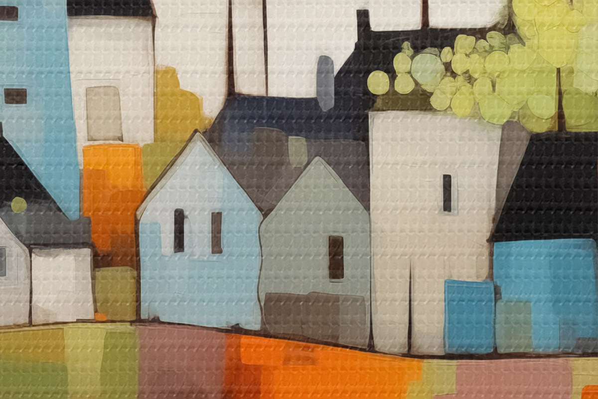 Afbeelding Abstracte stad en huizen, blauwe, gele, rode kleuren Nr r40751
