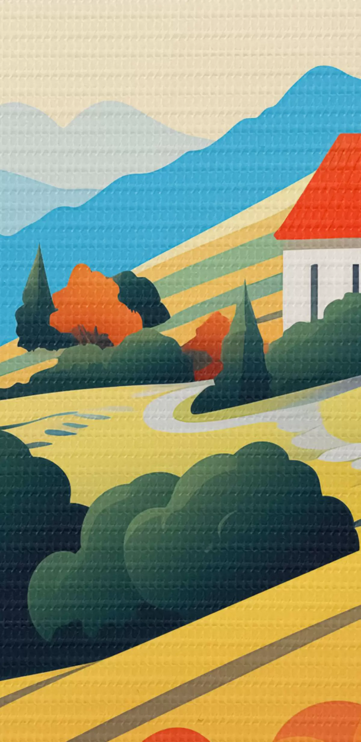 Afbeelding Helder landelijk landschap met veld, klaprozen en huizen Nr r40756
