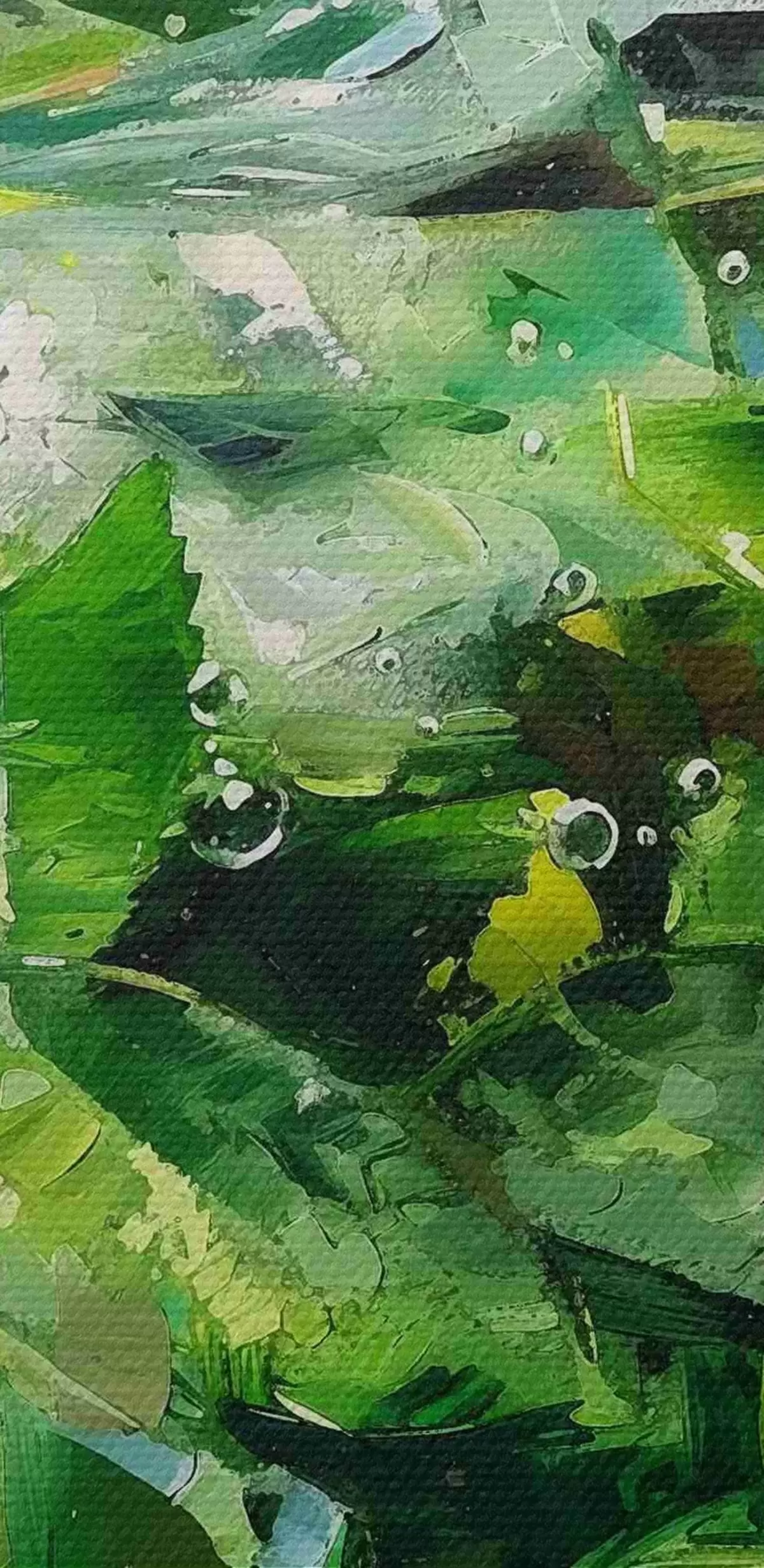 Het schilderij kan direct na ontvangst worden opgehangen. Het schilderij wordt opgespannen op een 2 cm breed houten spieraam.