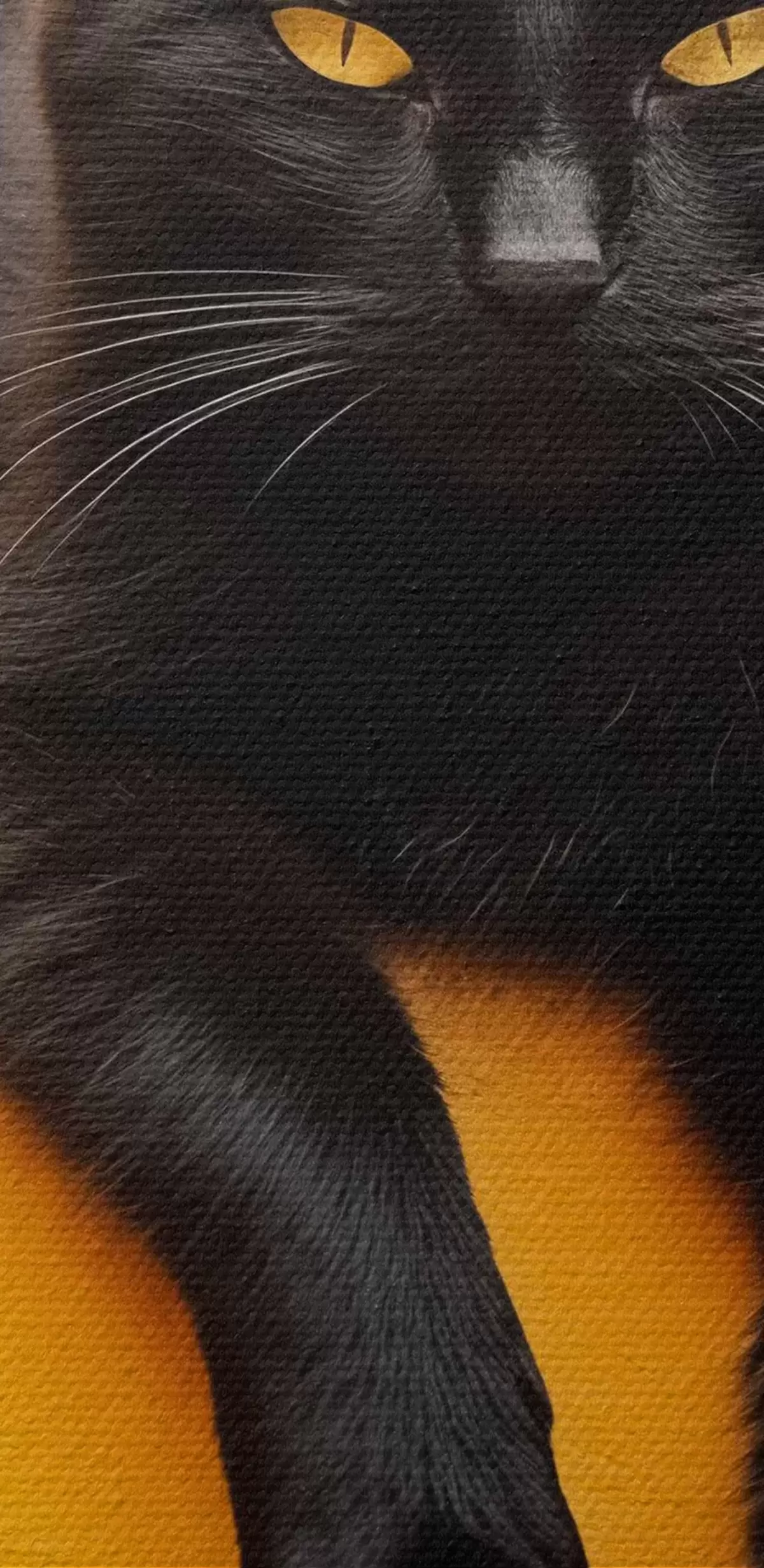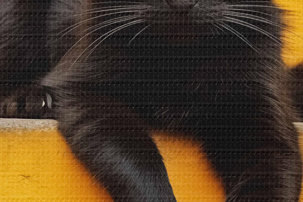Afbeelding Een zwarte kat ligt op de gele trap Nr r40798
