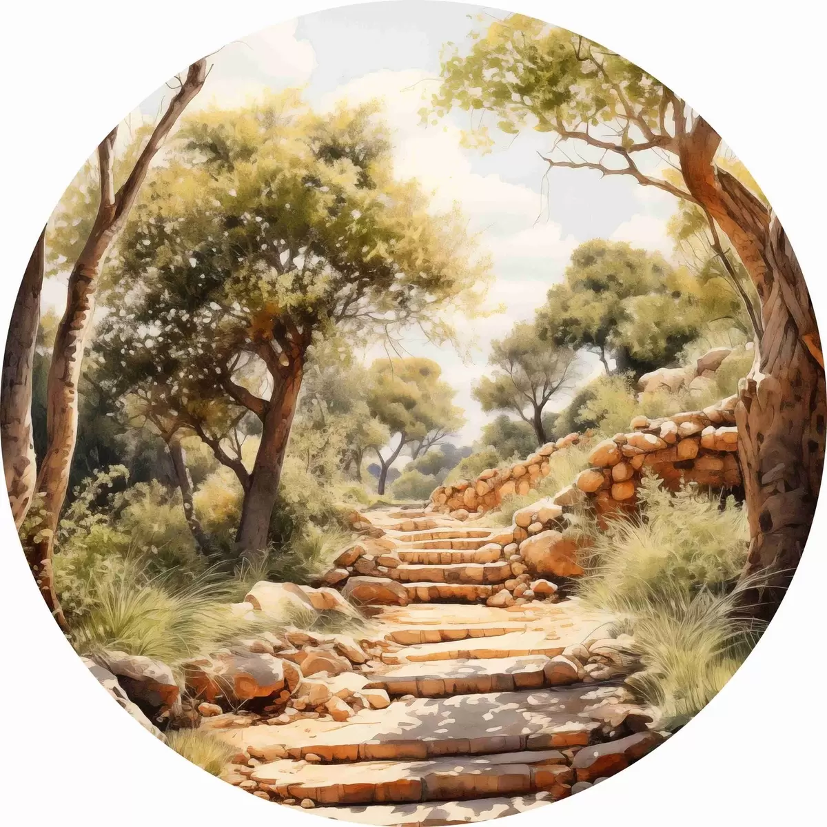 Ronde schilderijen Pad in het park imitatie van aquarel r40804