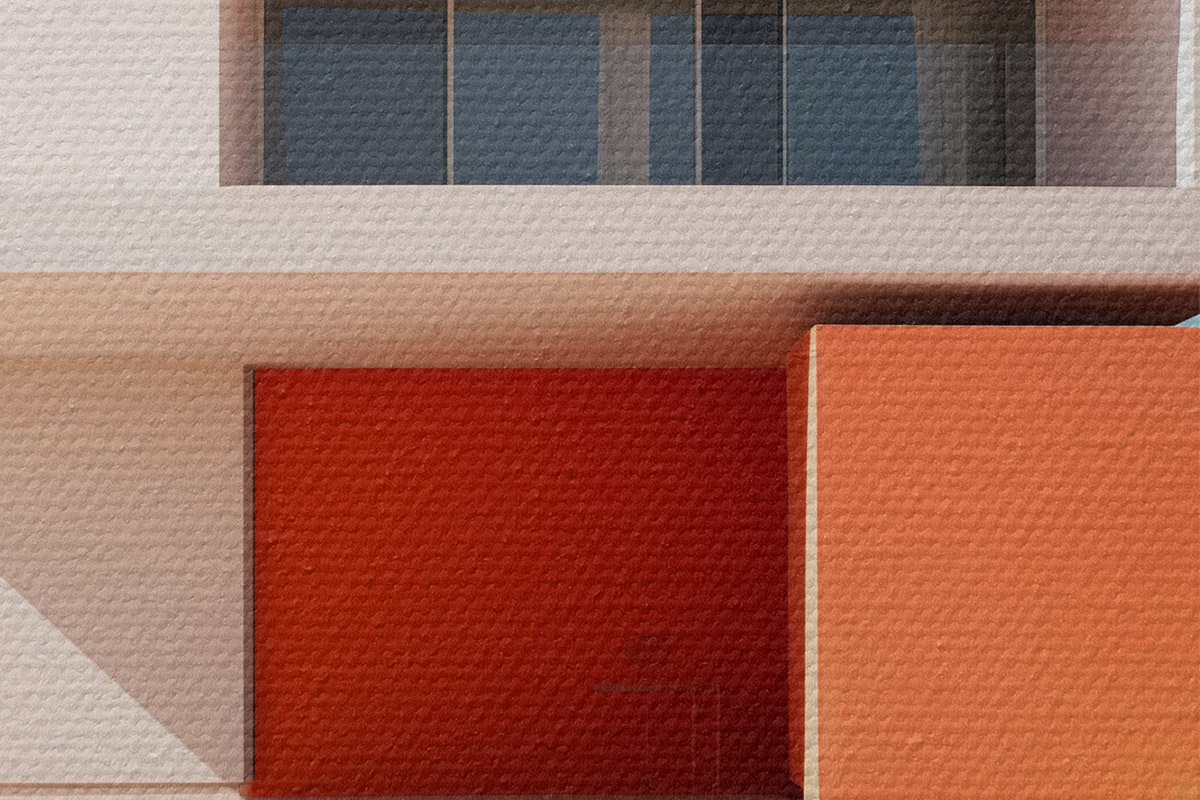 Afbeelding Minimalistisch architectonisch landschap, huis en zwembad Nr r40811
