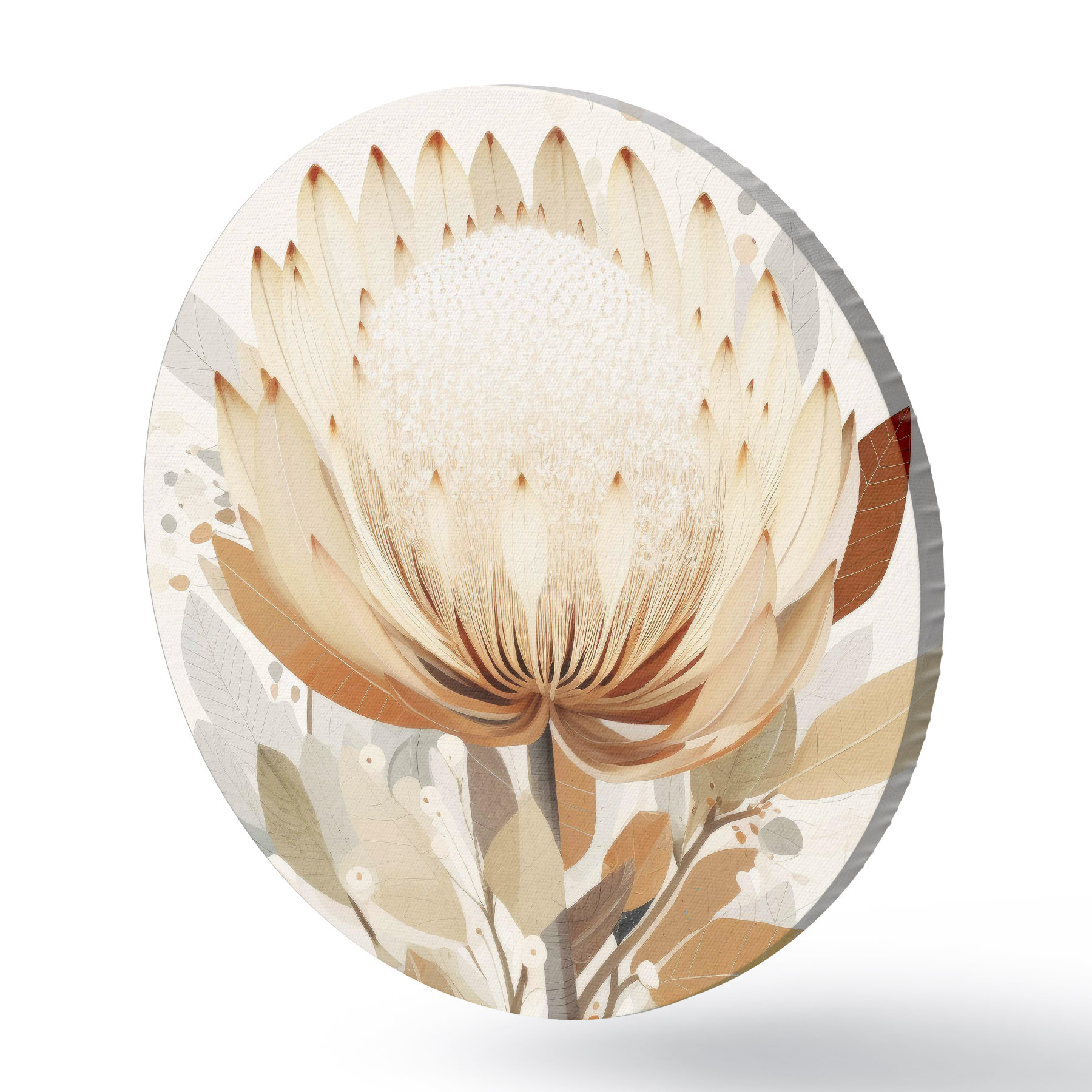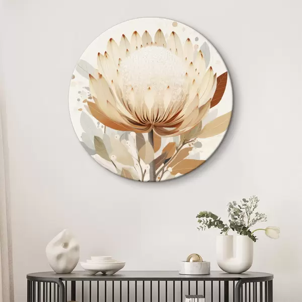 Ronde schilderijen Bloem in een delicaat beige kleurenpalet, bloemenabstractie r40818