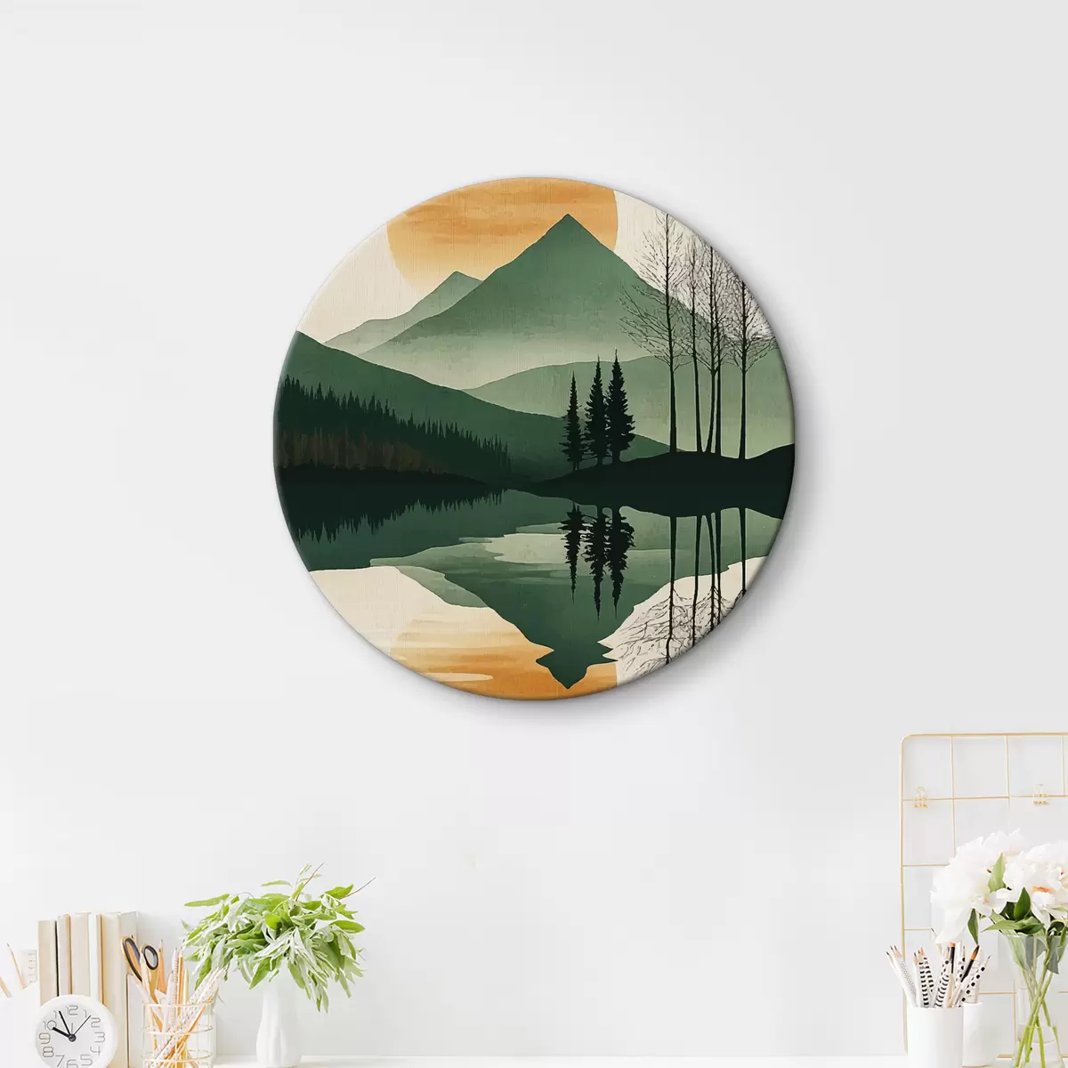 Ronde schilderijen Bergen en zonsopgang r40832