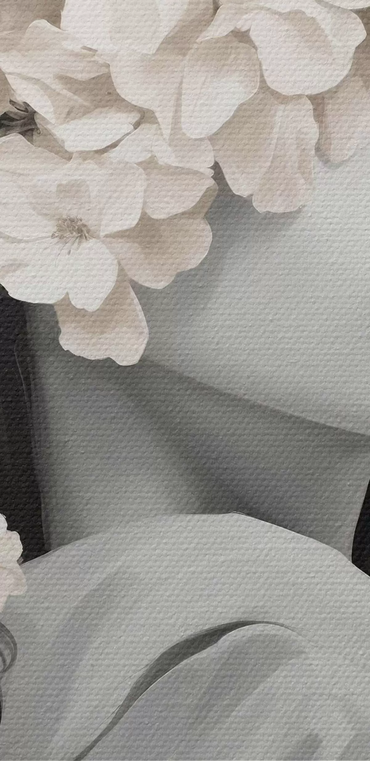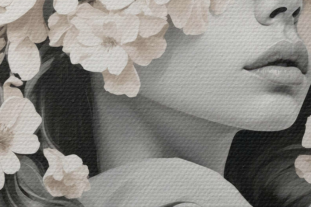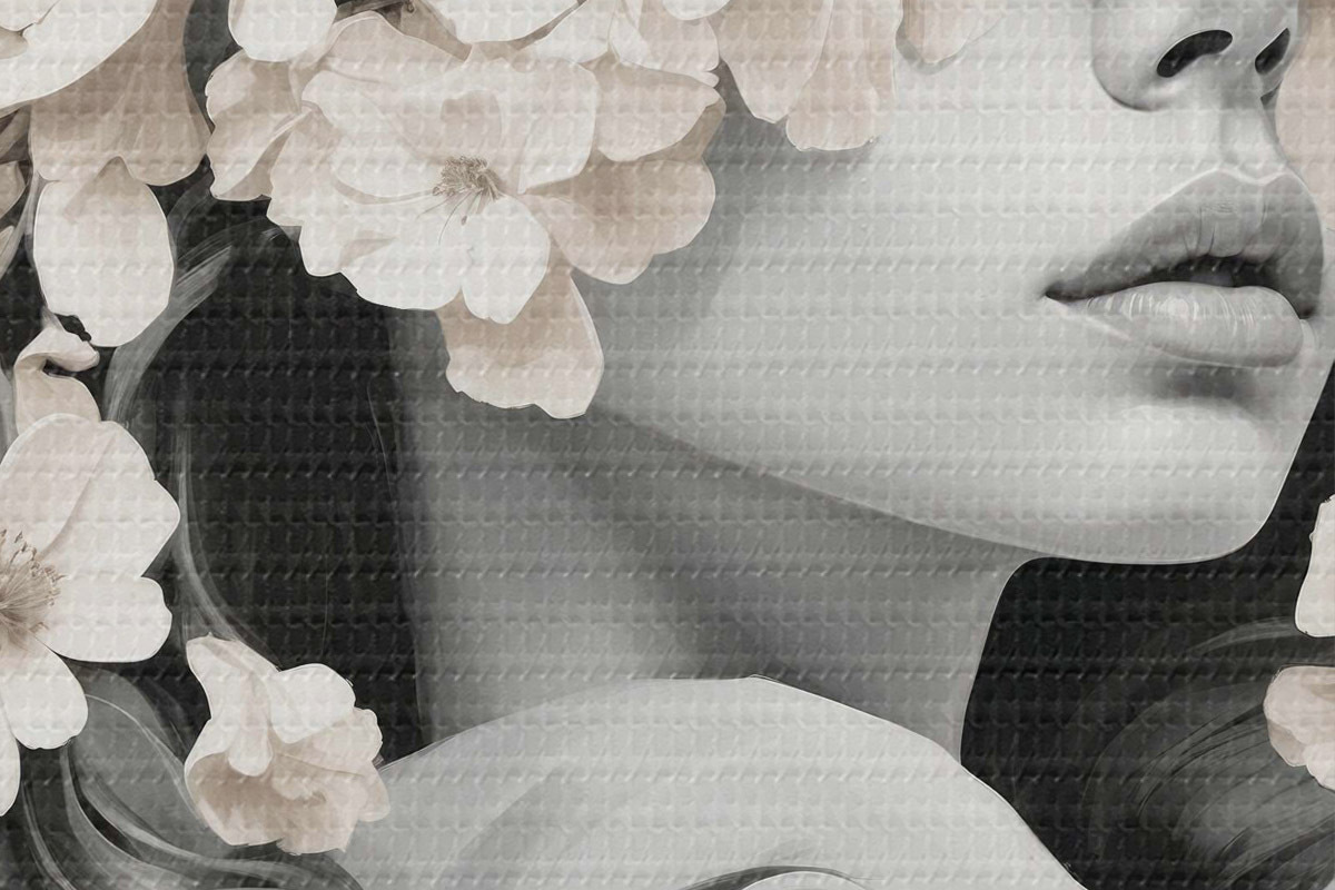 Afbeelding Meisje met bloemen op haar gezicht in zwarte en witte kleuren Nr r40849