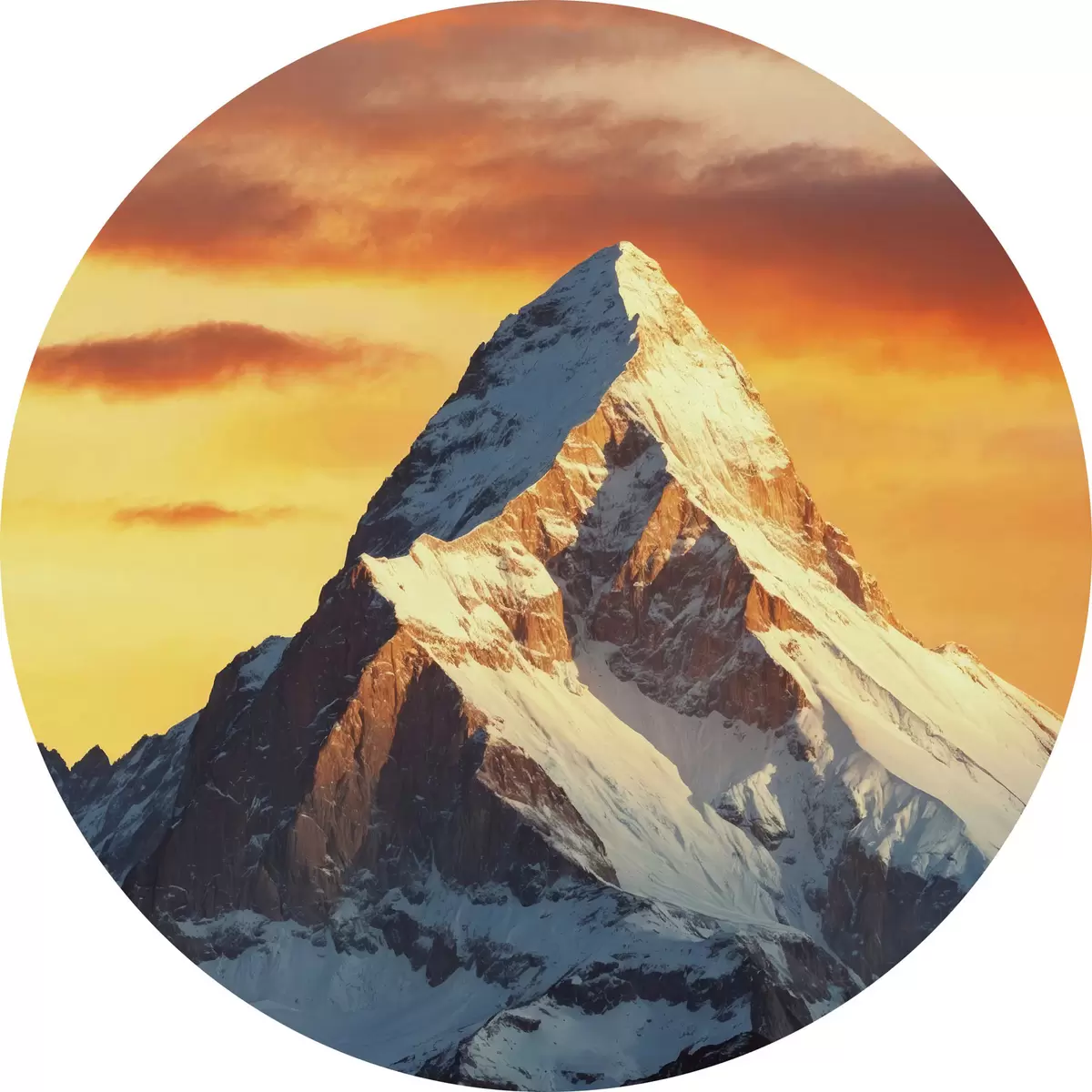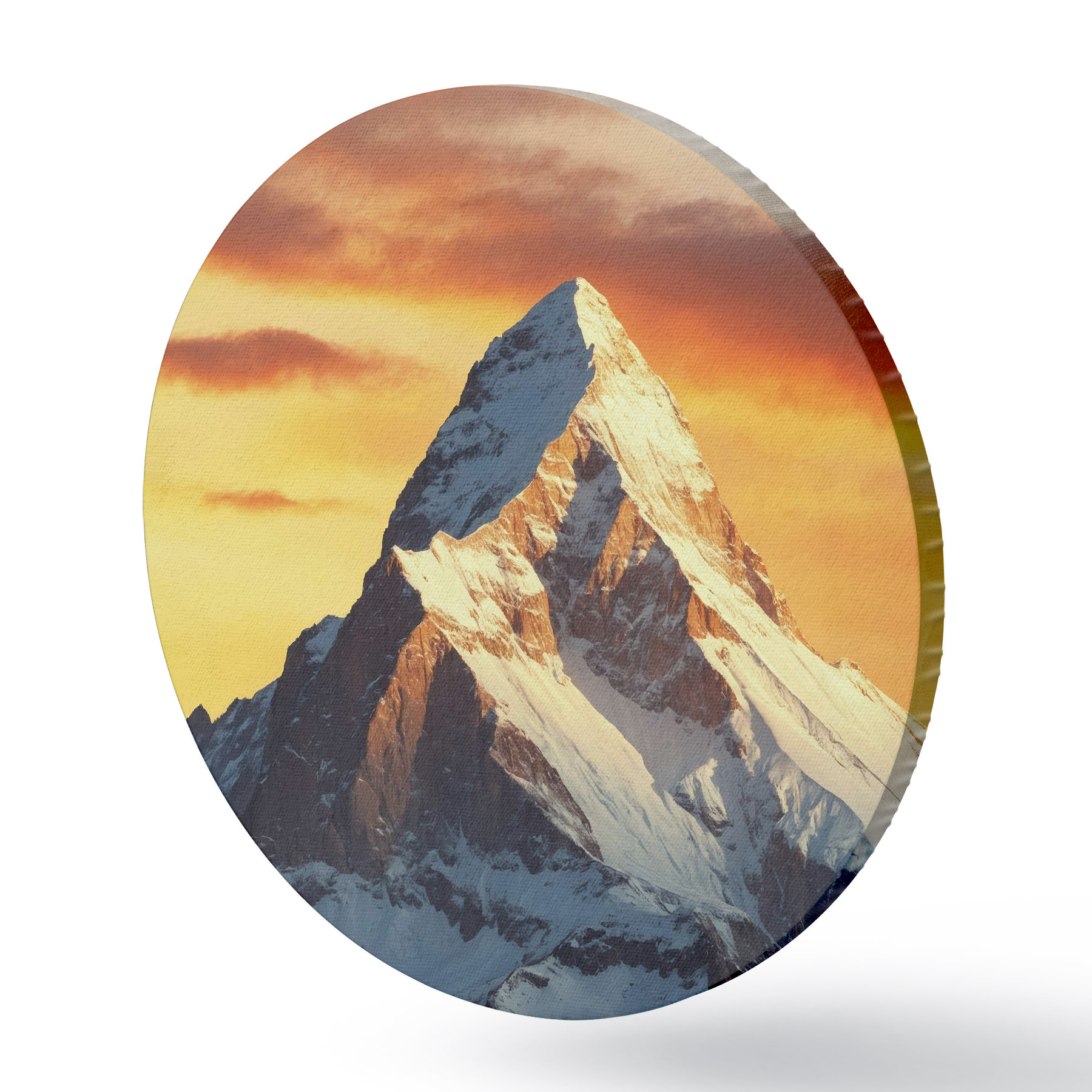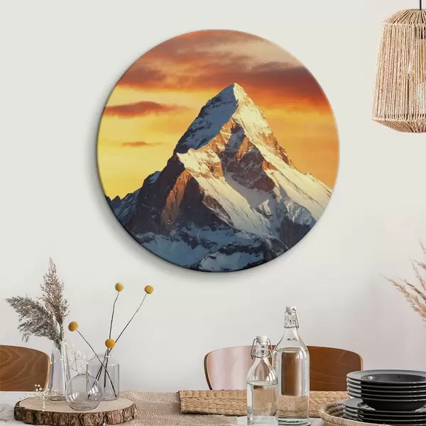 Ronde schilderijen Besneeuwde berg en oranje lucht r40852