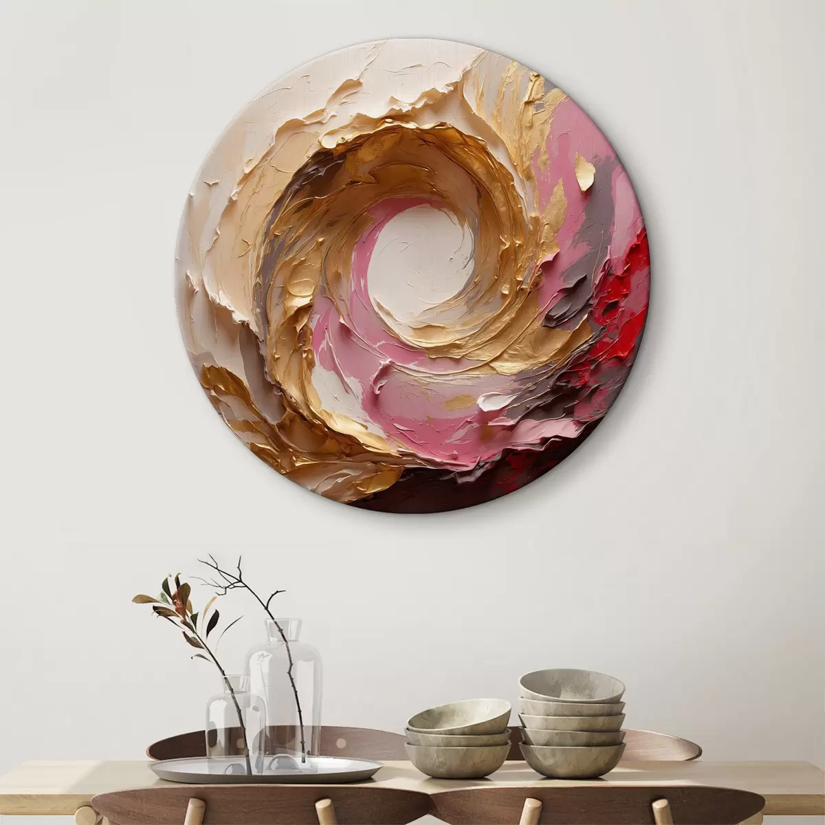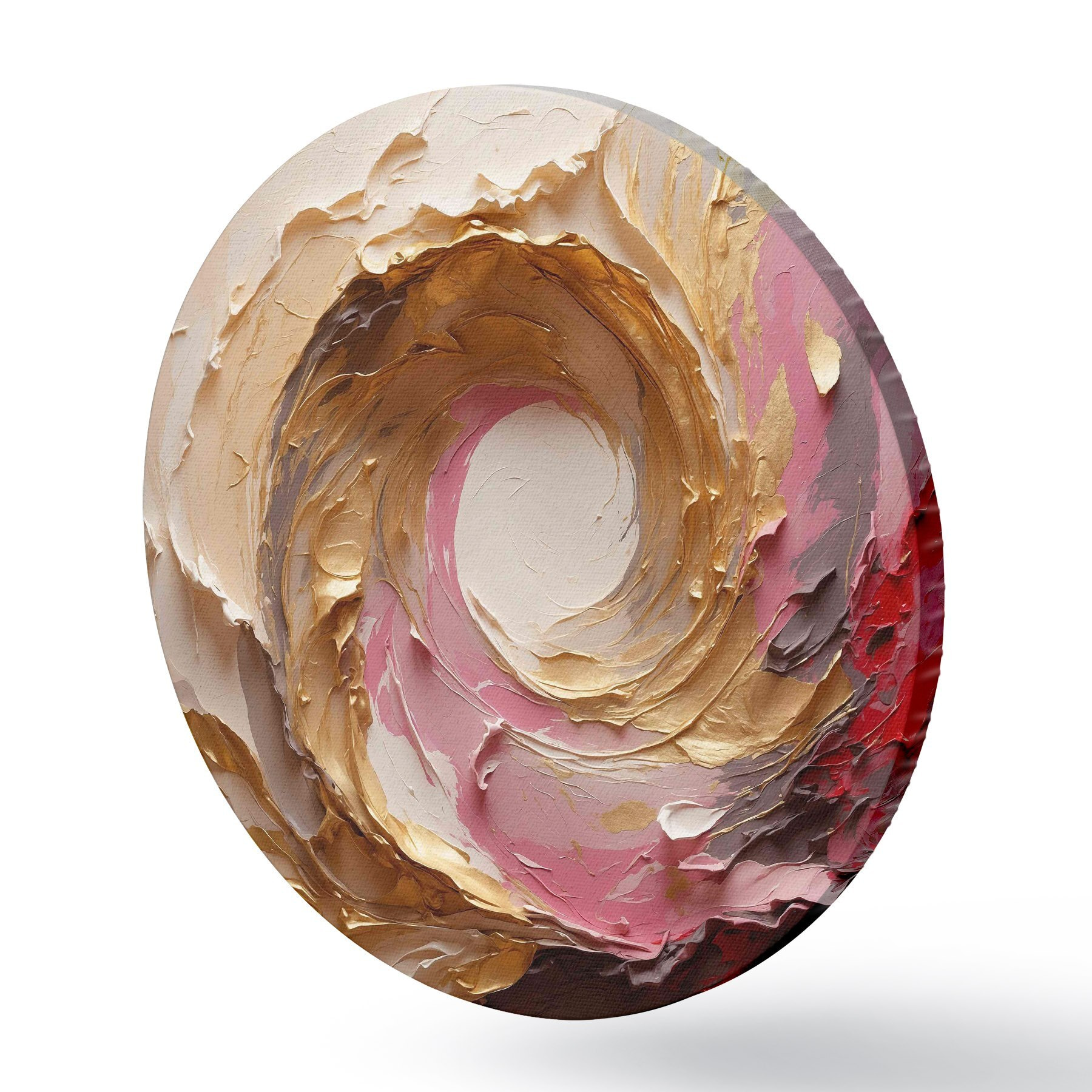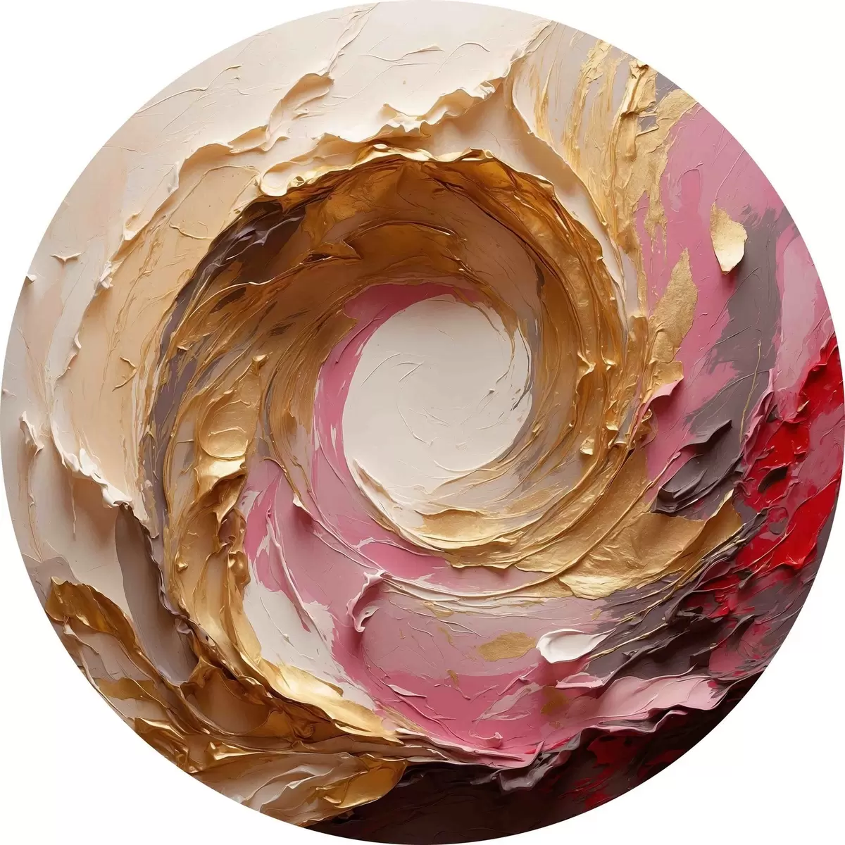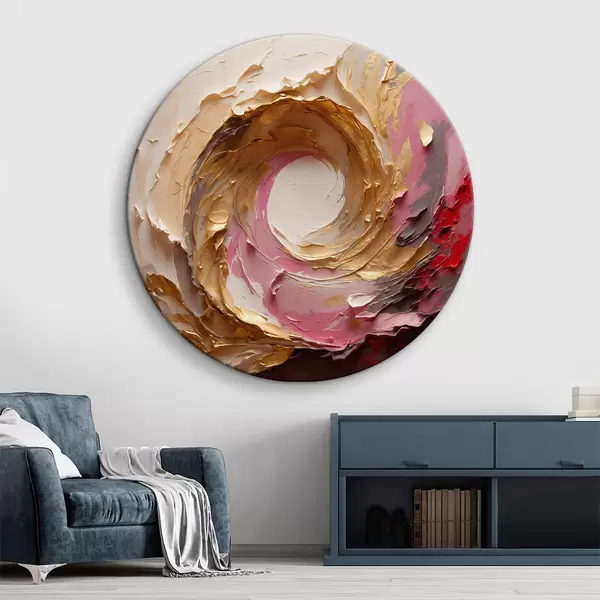 Ronde schilderijen Abstract olieverfschilderij met roze en gele wervelingen r40863
