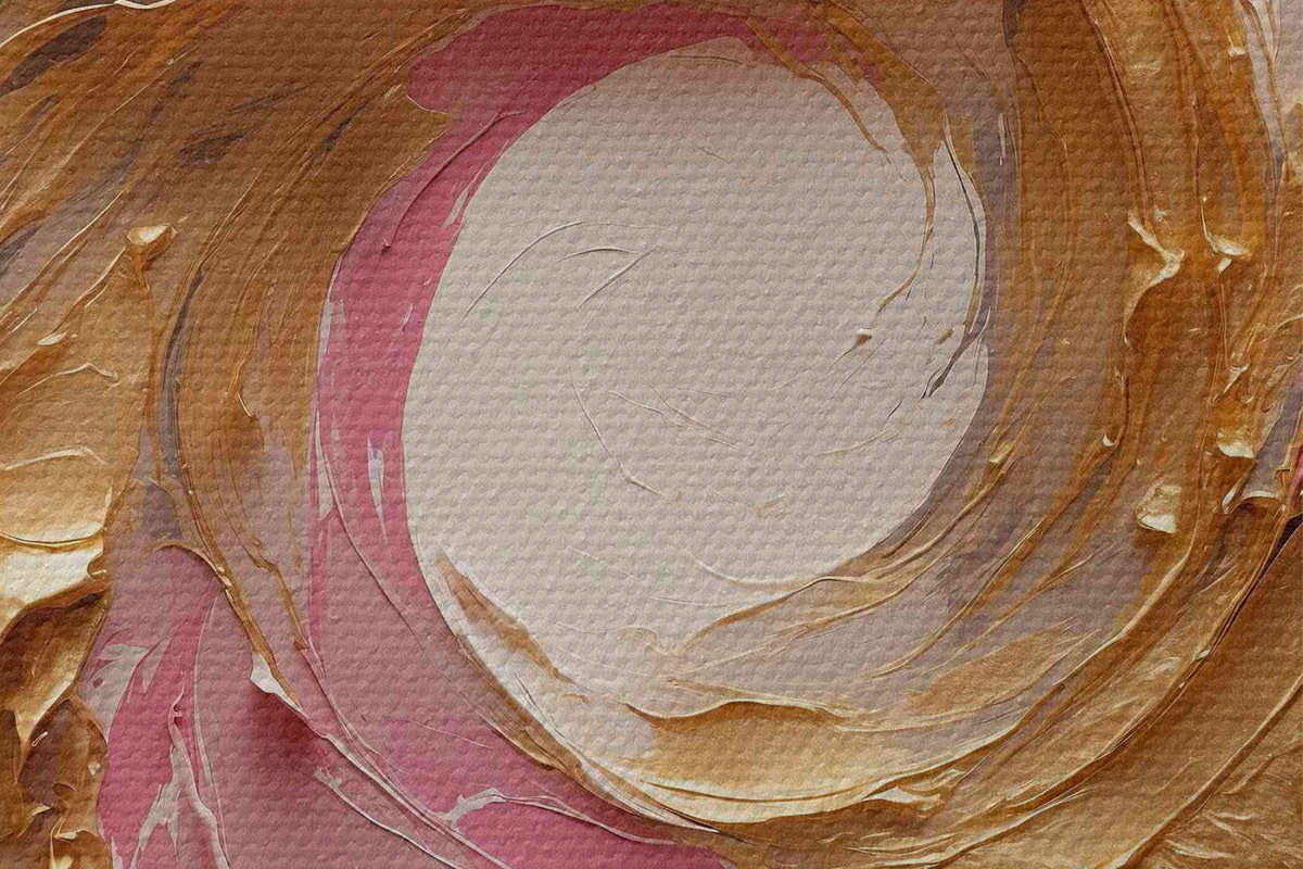 Afbeelding Abstract olieverfschilderij met roze en gele wervelingen Nr r40863