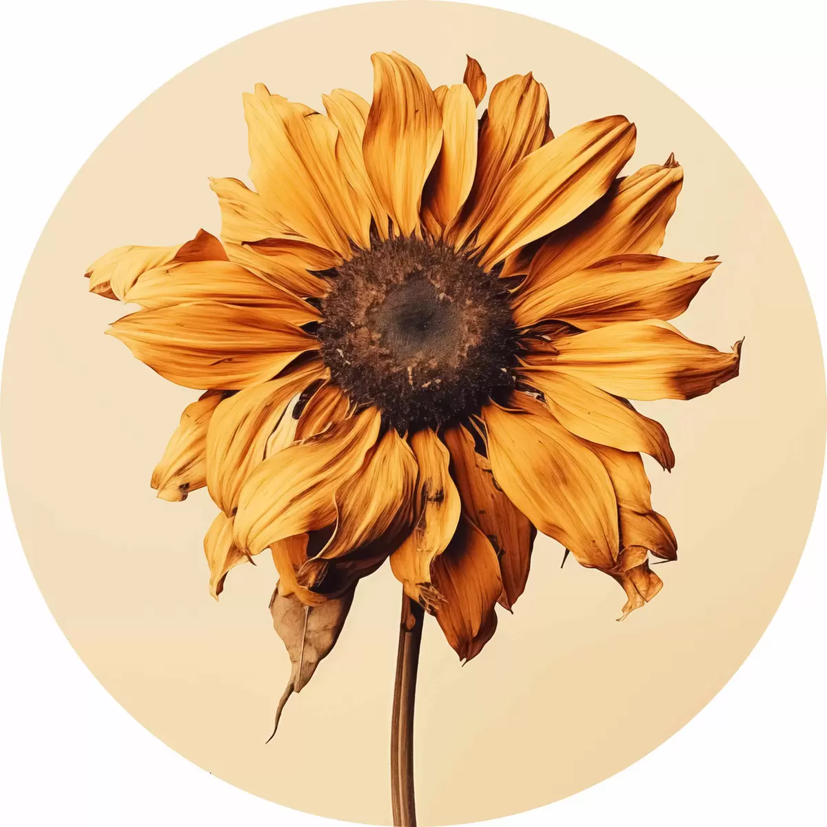 Ronde schilderijen Gedroogde bloem met gele bloemblaadjes - minimalisme r40882