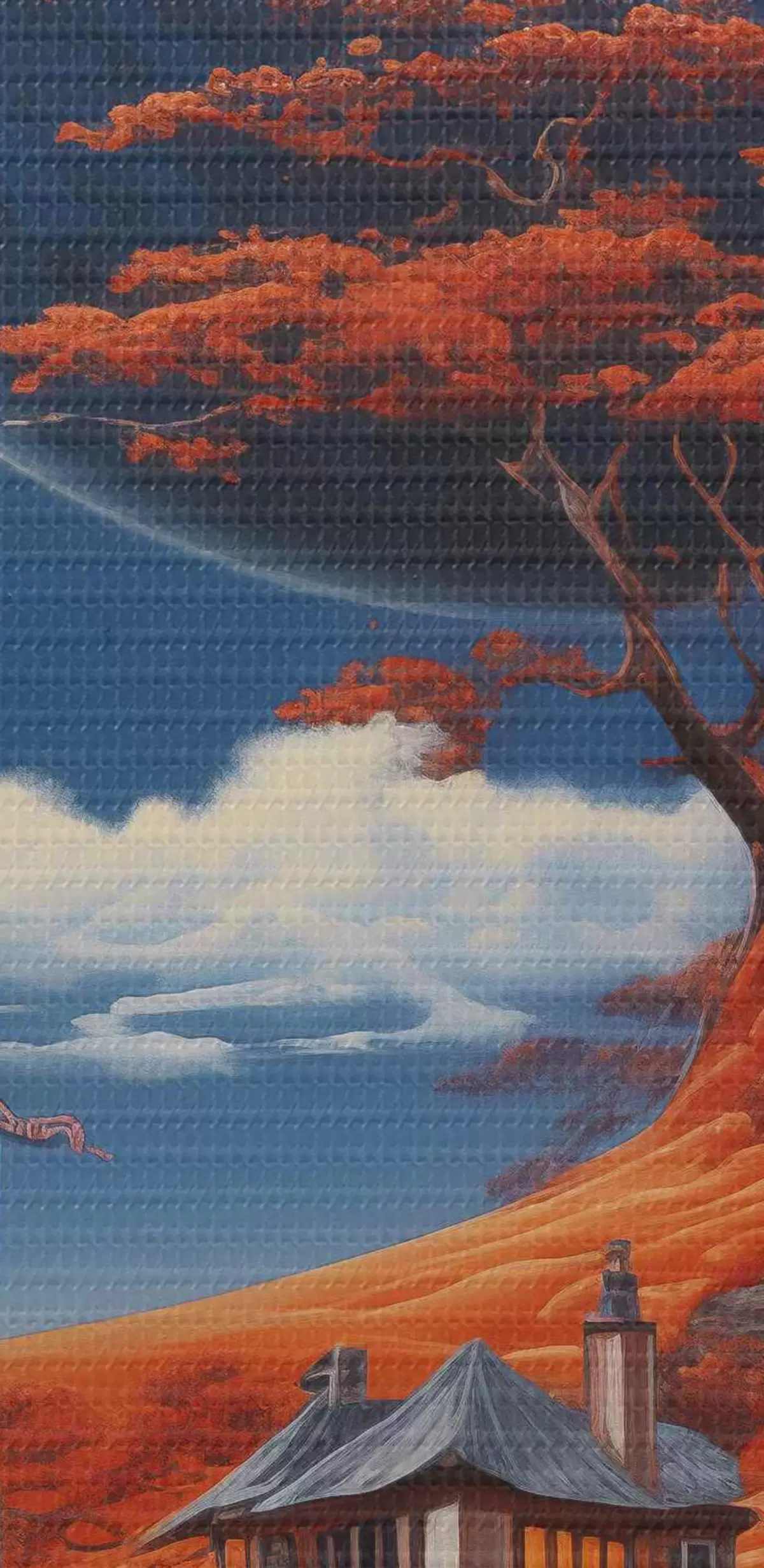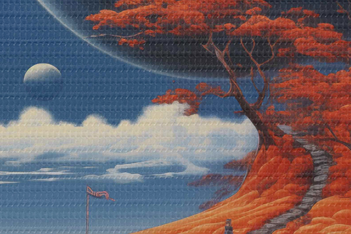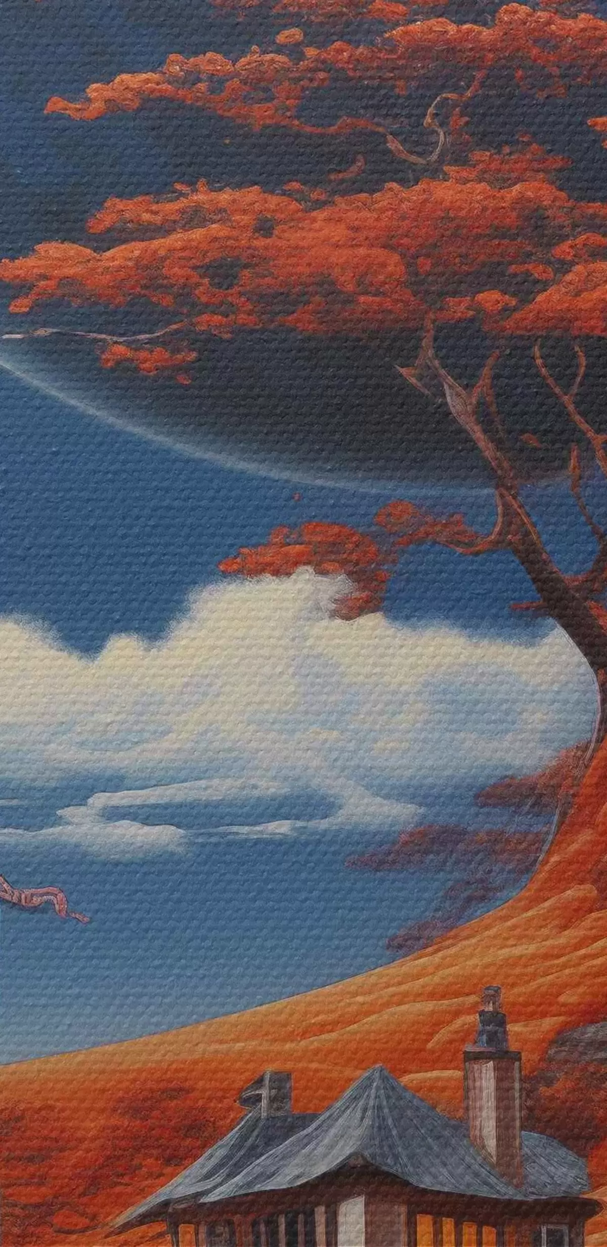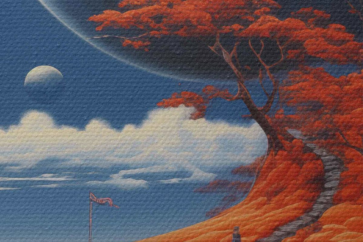 Afbeelding Ruimte illustratie, planeten, blauwe lucht, huis op de heuvel, bomen Nr r40946