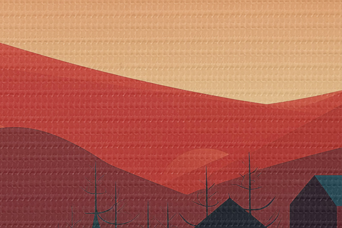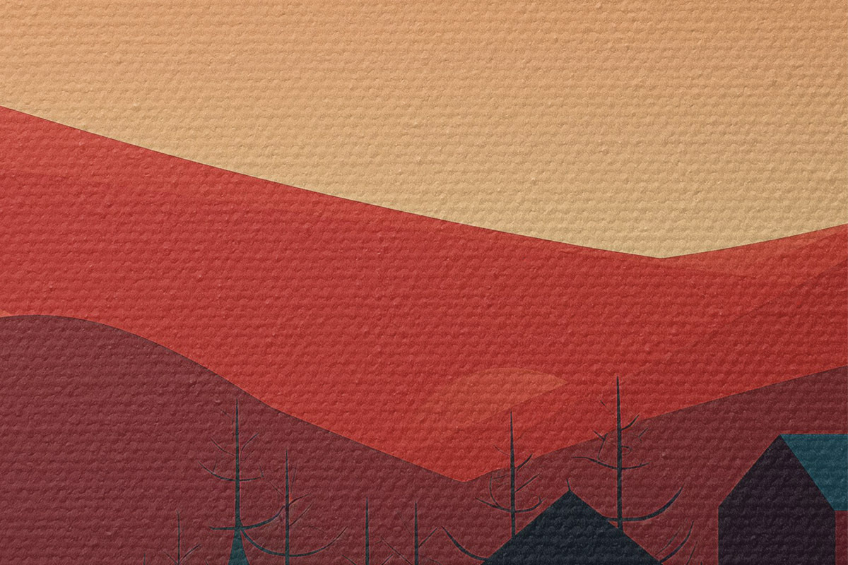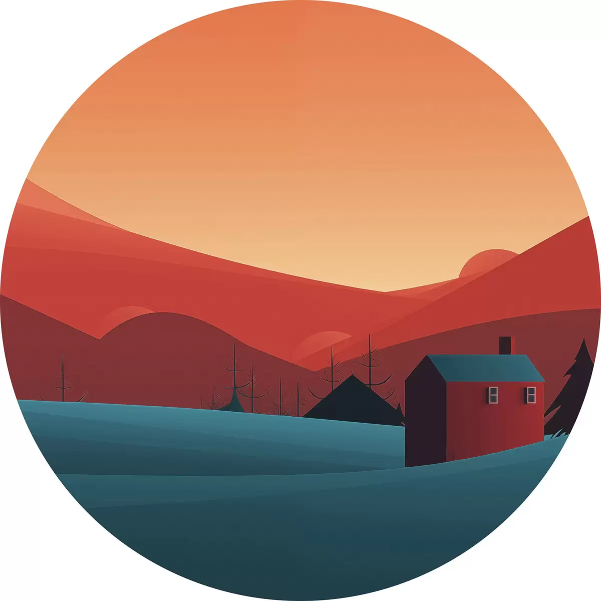 Afbeelding Minimalistisch landschap met huis en bos Nr r40952