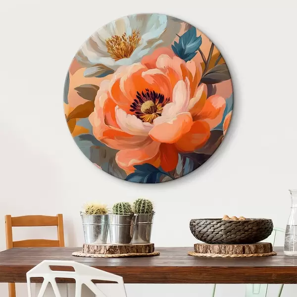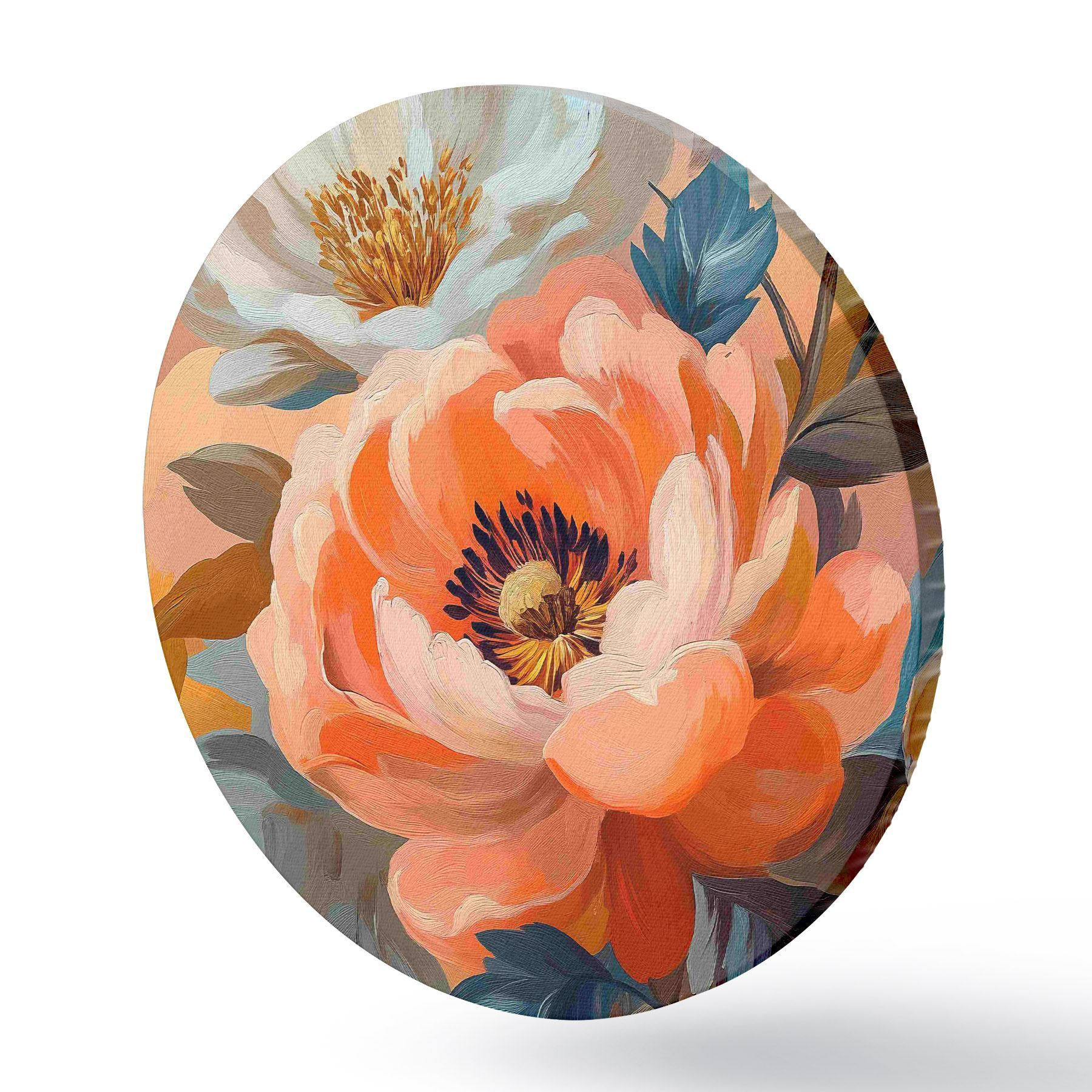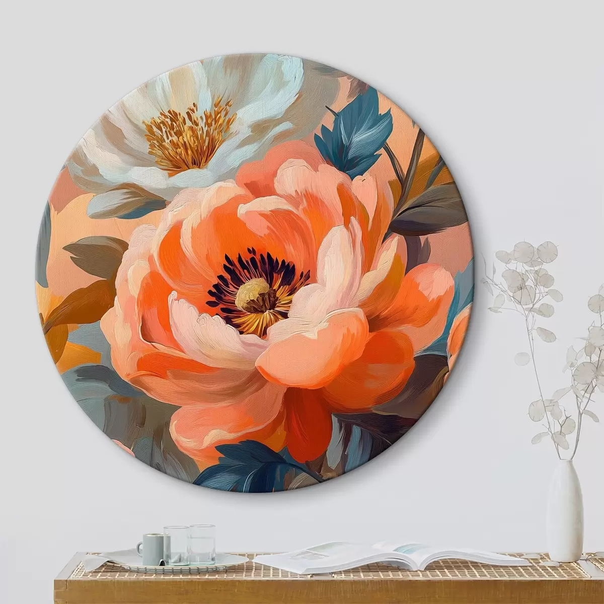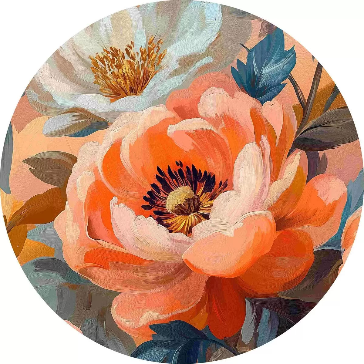 Ronde schilderijen Opvallende pioenen in warme tinten r40963