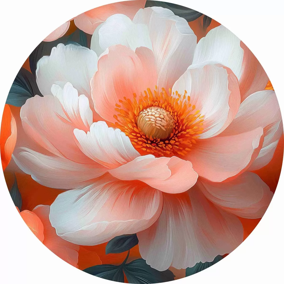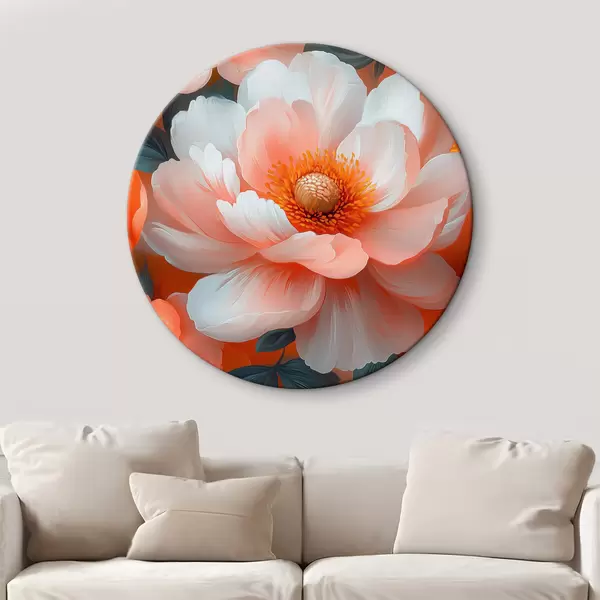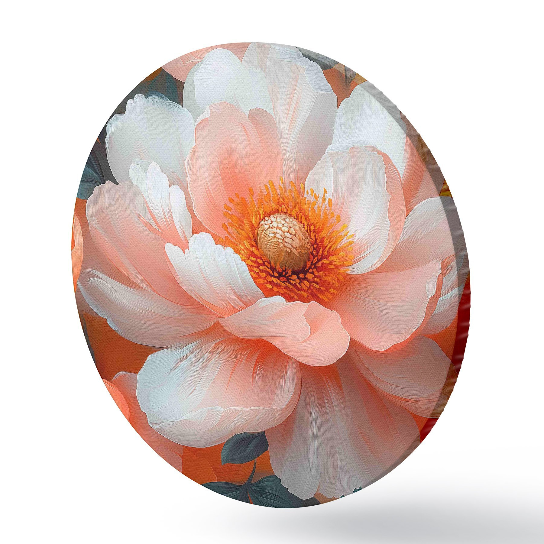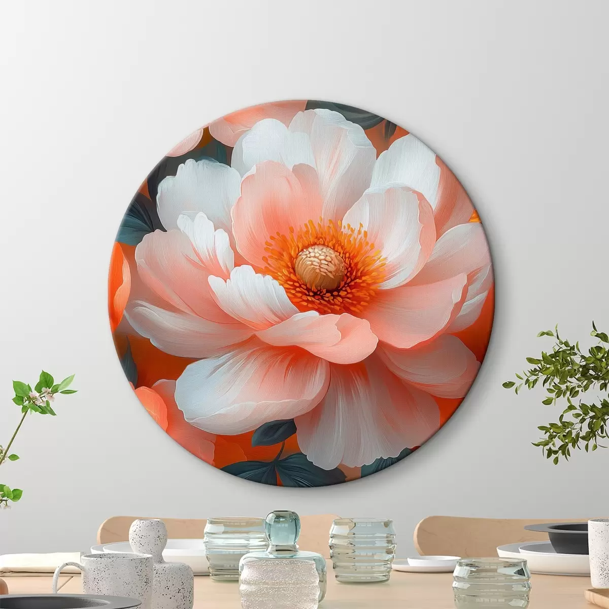 Ronde schilderijen Delicate, helderrode pioenrozen r40965