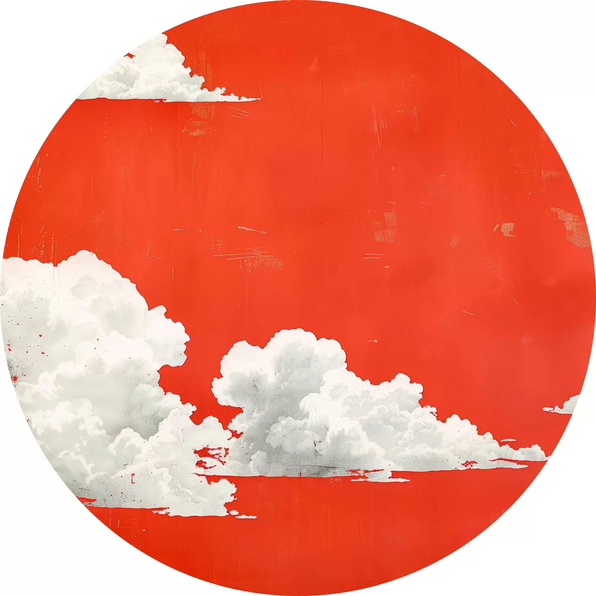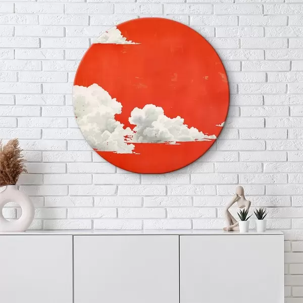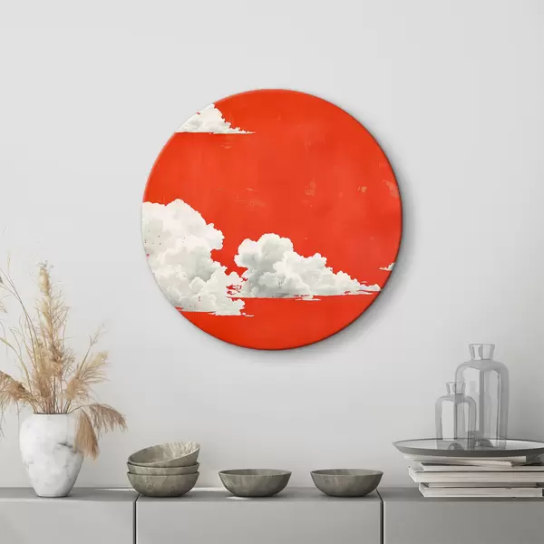Ronde schilderijen Rode lucht met witte wolken r40974