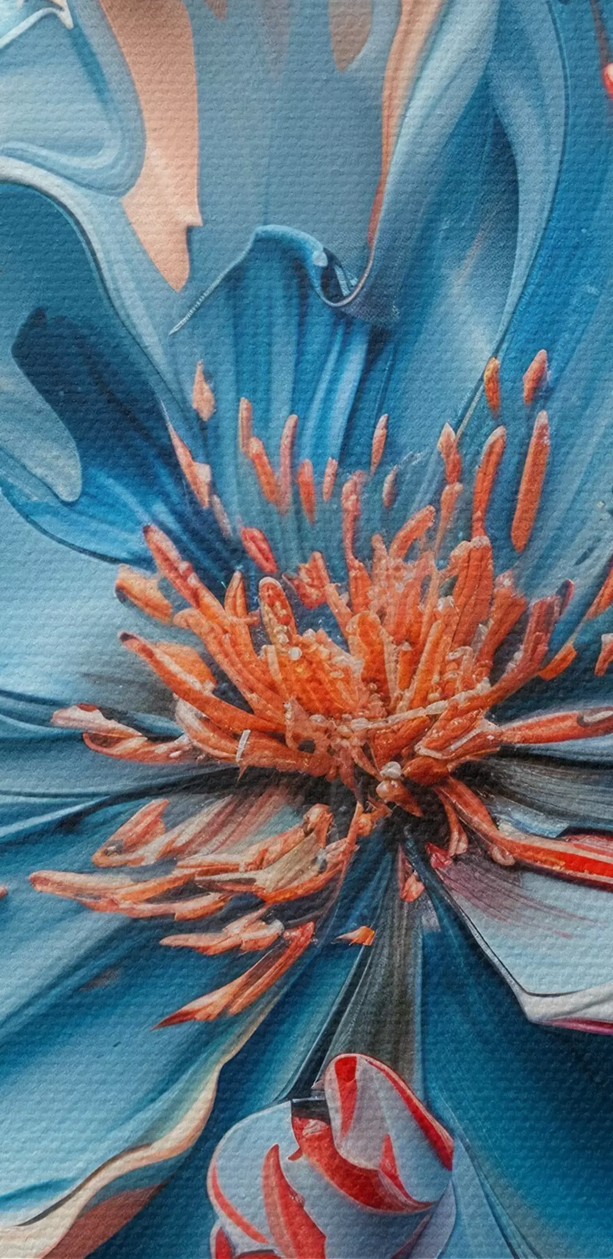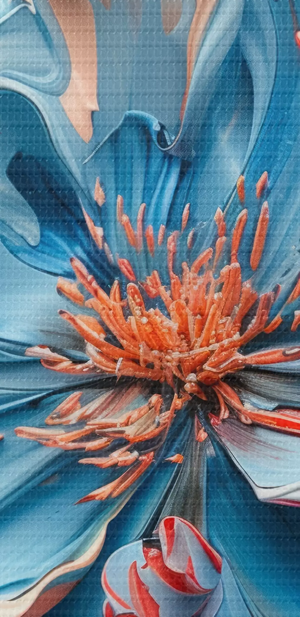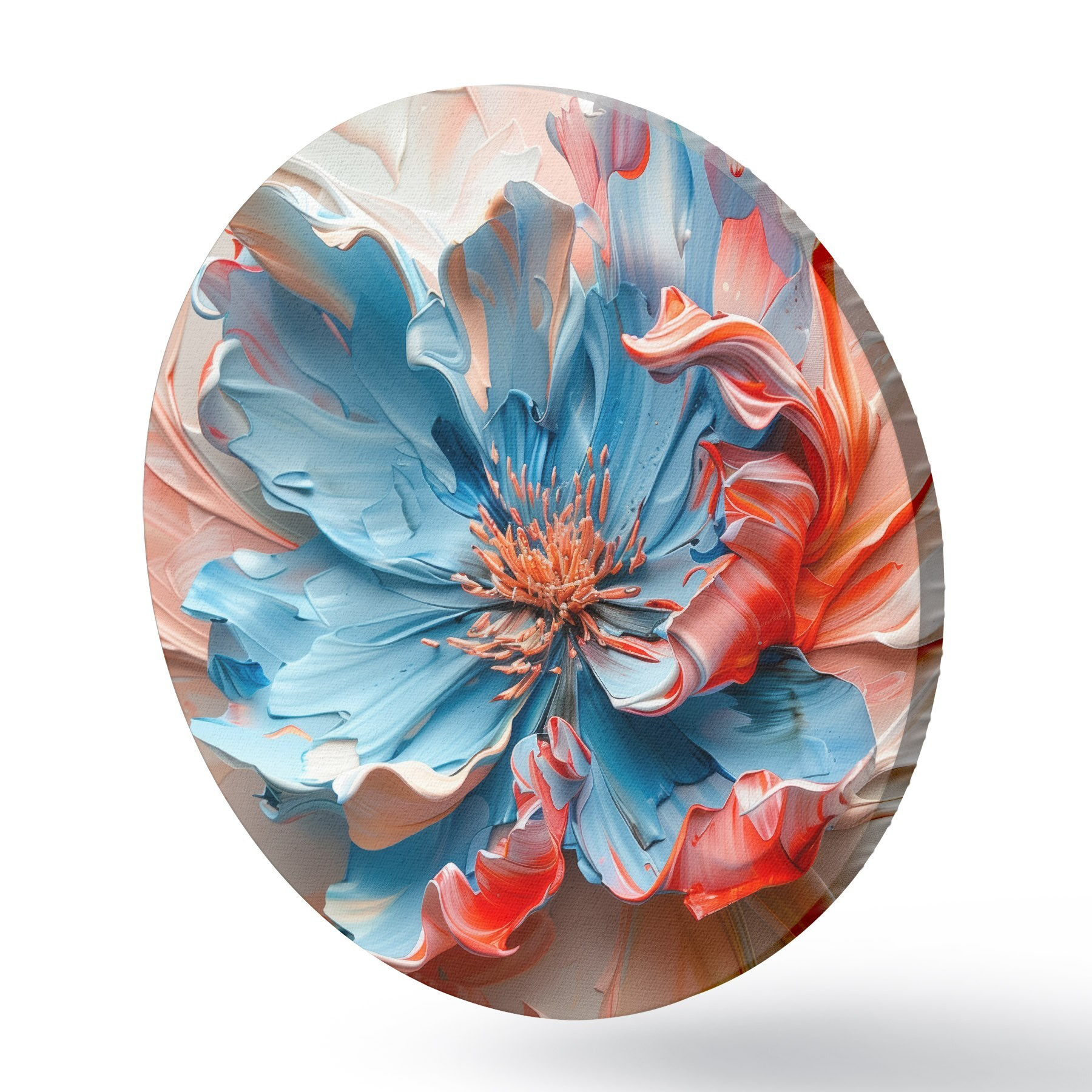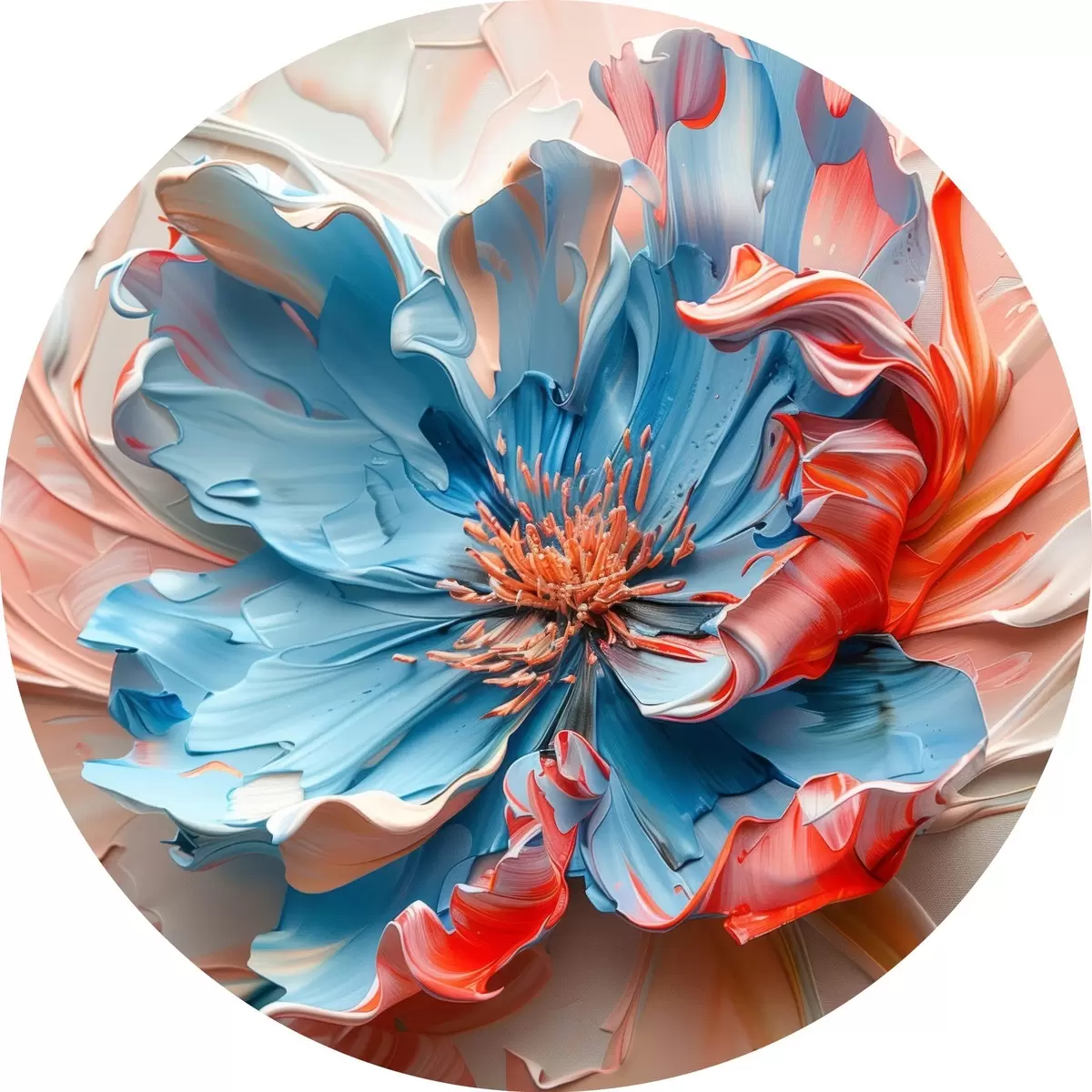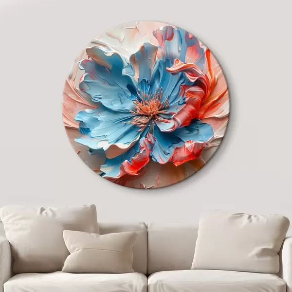 Ronde schilderijen Magische klaproos met volumineuze bloemblaadjes in perzik- en blauwtinten r40992