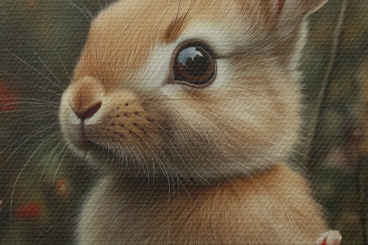 Afbeelding Een schattig konijntje in wilde bloemen in pasteltinten Nr r40998