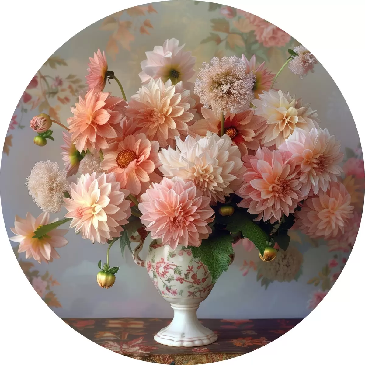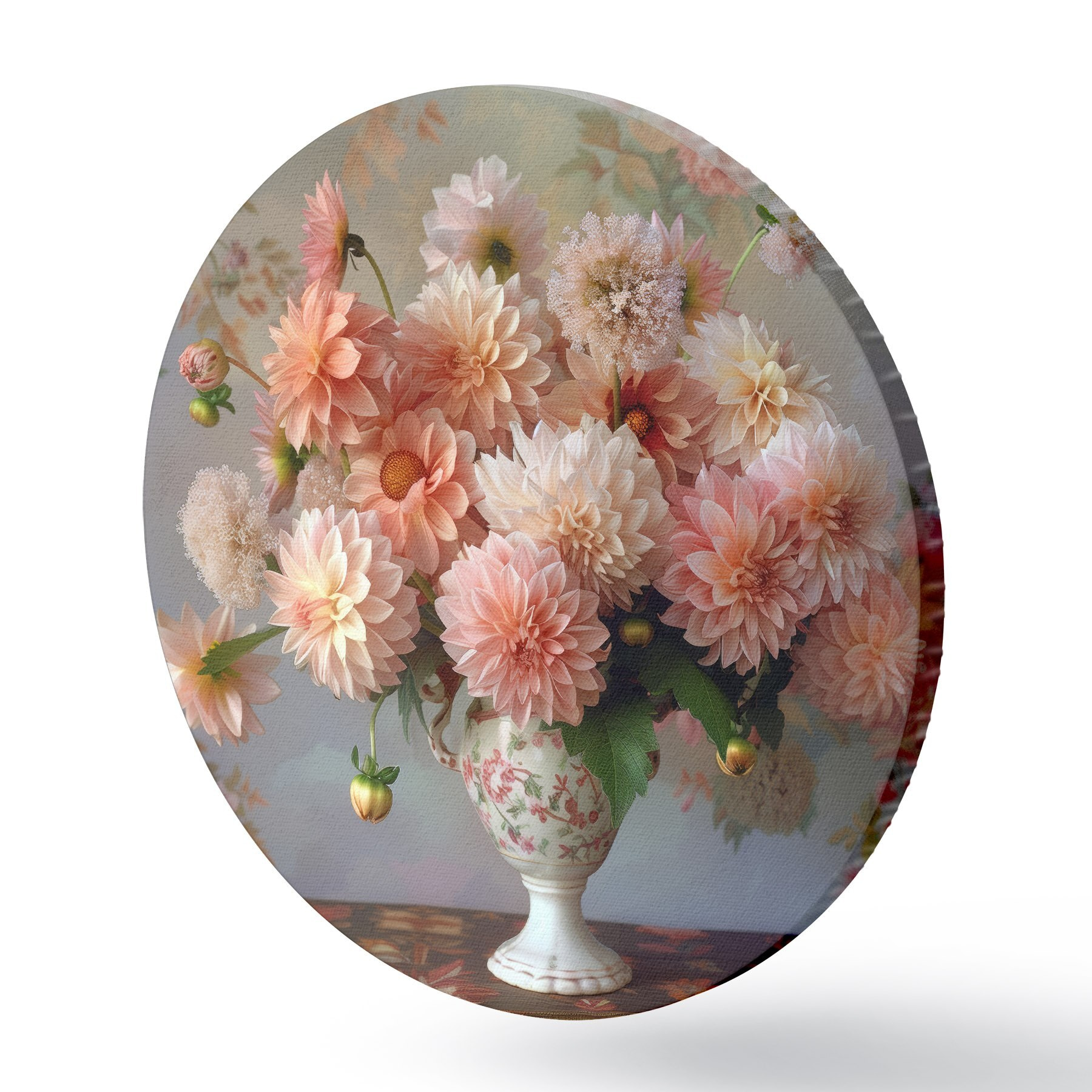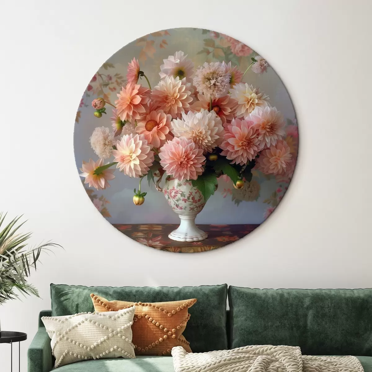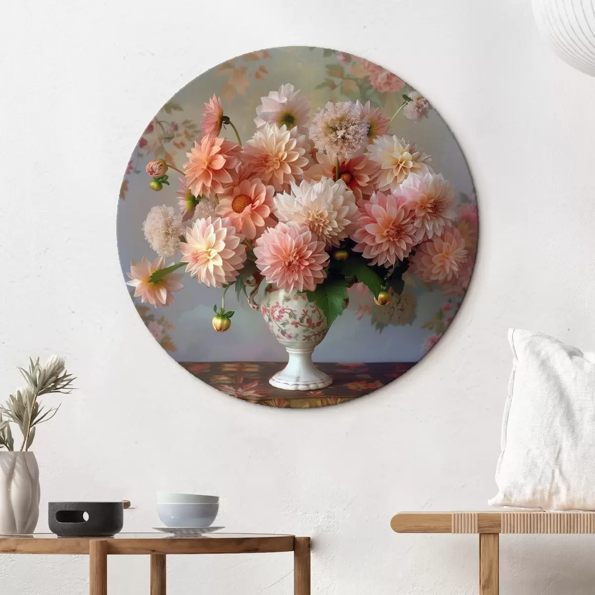 Ronde schilderijen Een delicaat boeket chrysanten in een vaas r41002