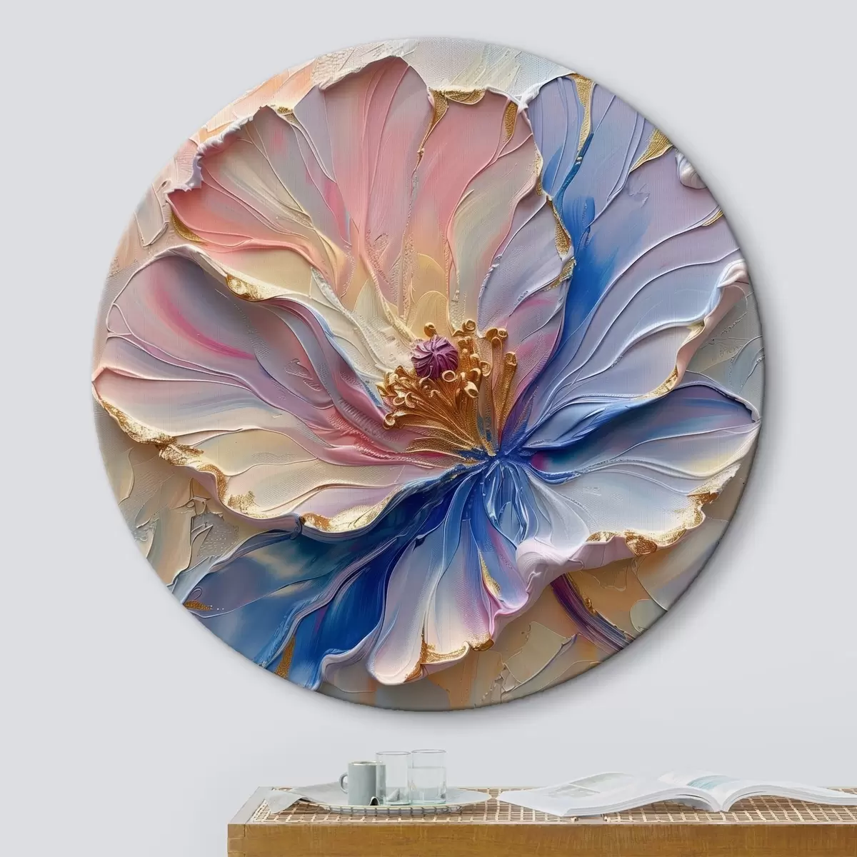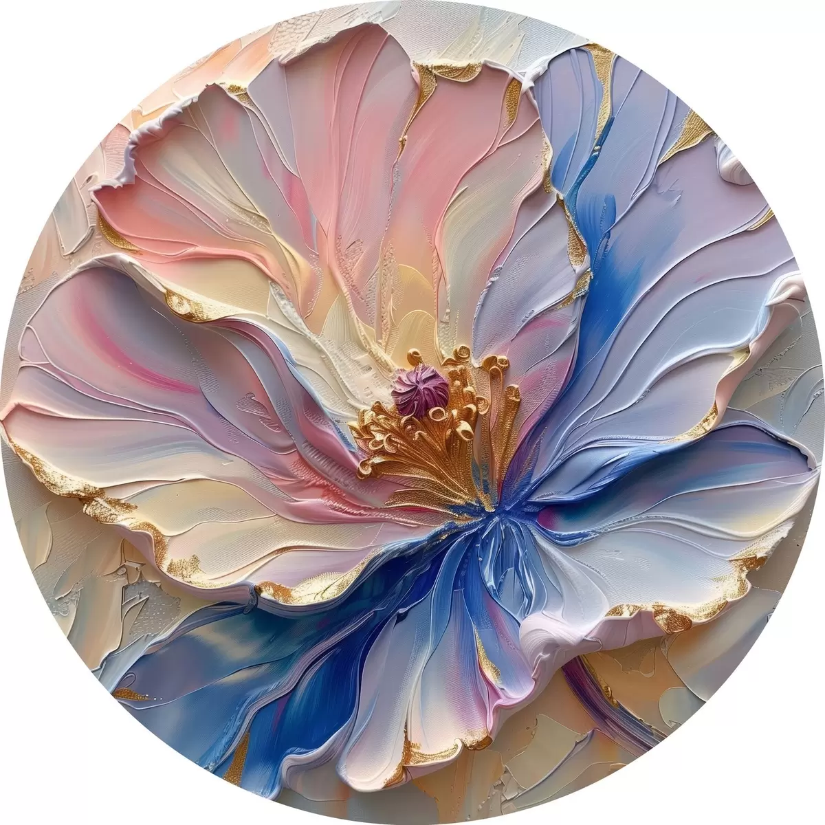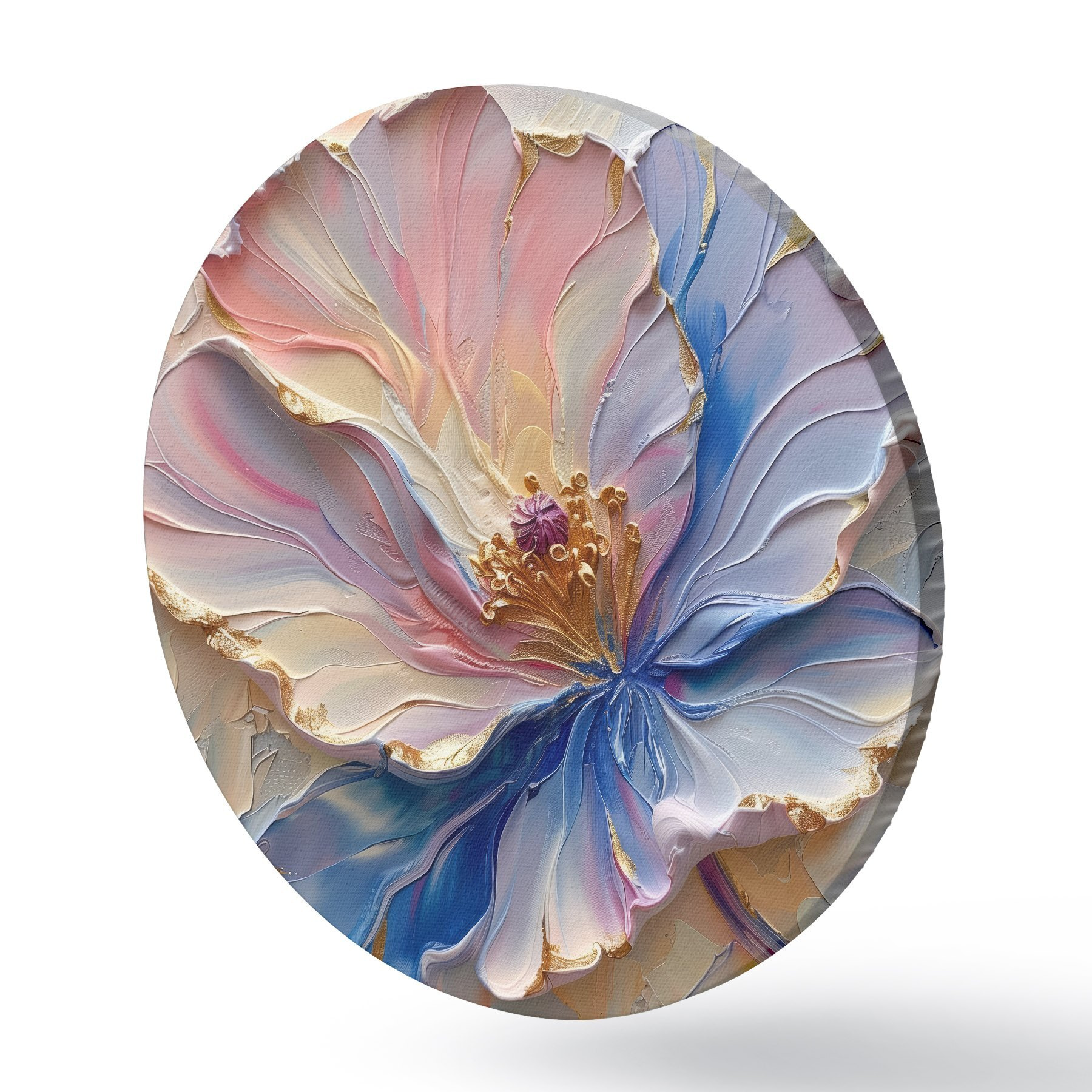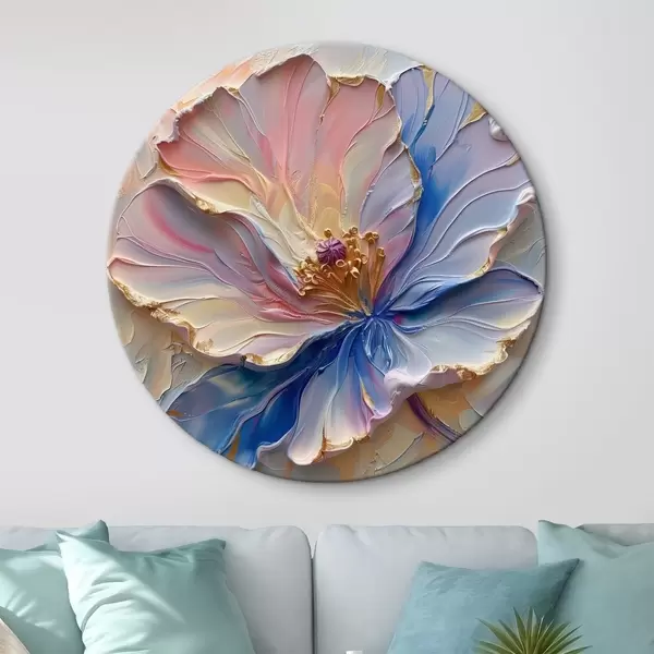 Ronde schilderijen Een grote bloem in delicate tinten roze en blauw r41006