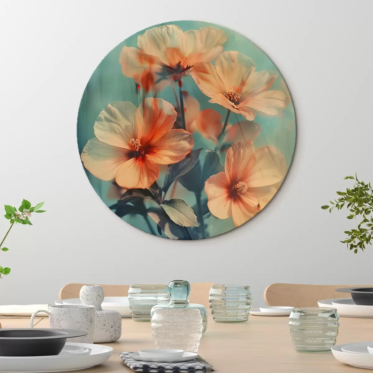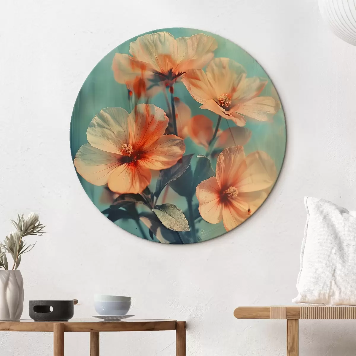 Ronde schilderijen Een boeket perzikbloemen r41007