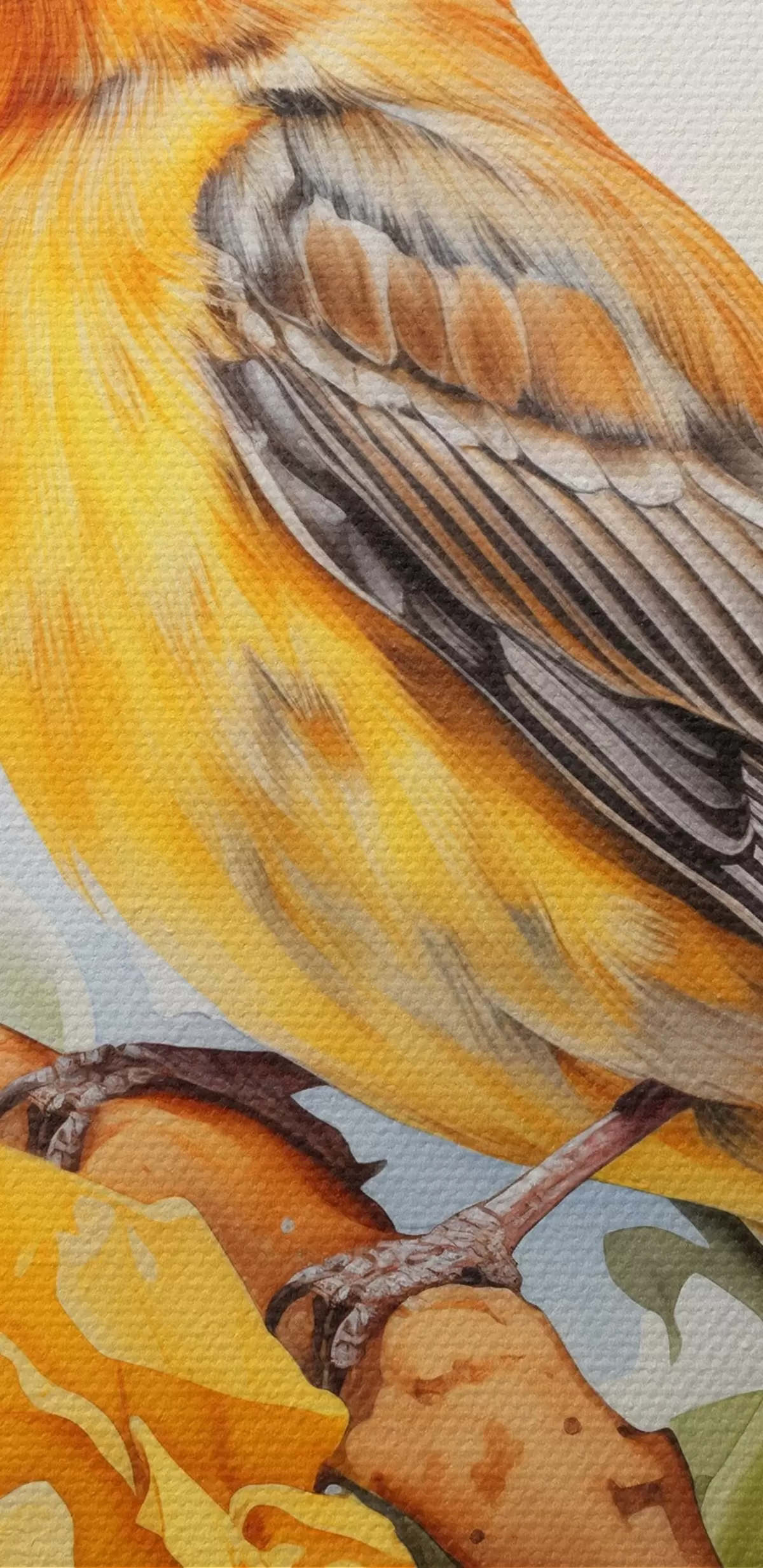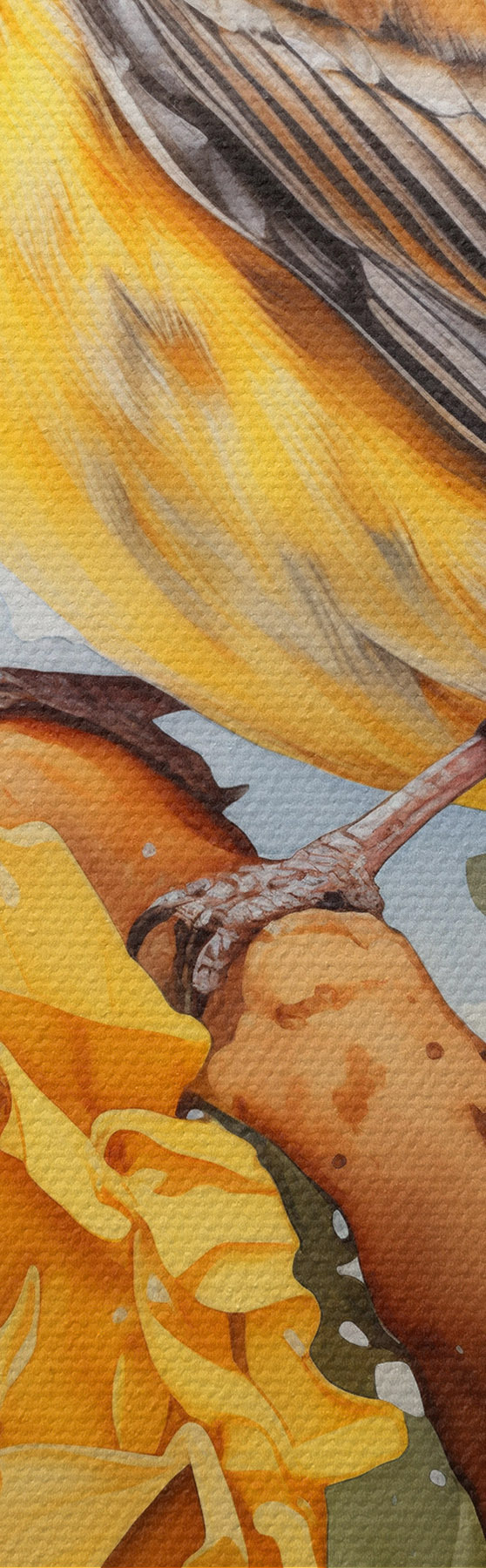 Afbeelding Gele vogel zittend op een zonnebloem aquarel Nr r41015