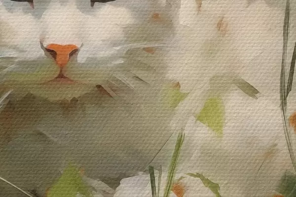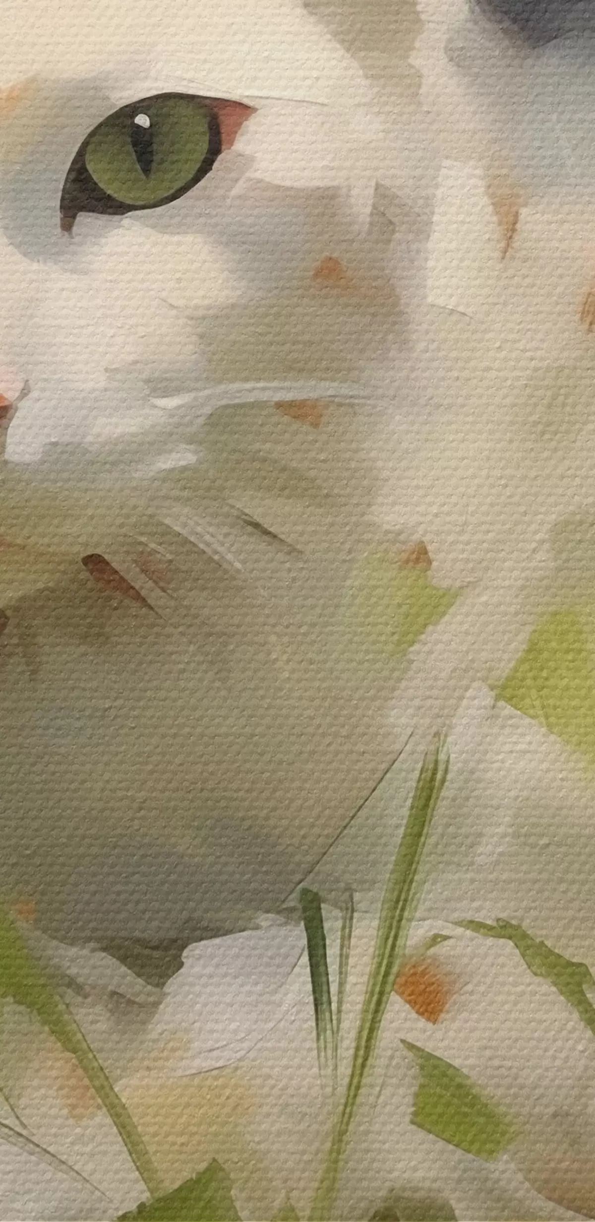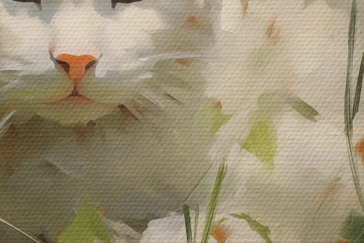 Afbeelding Witte kat liggend in het gras, imitatie van penseelstreken Nr r41017