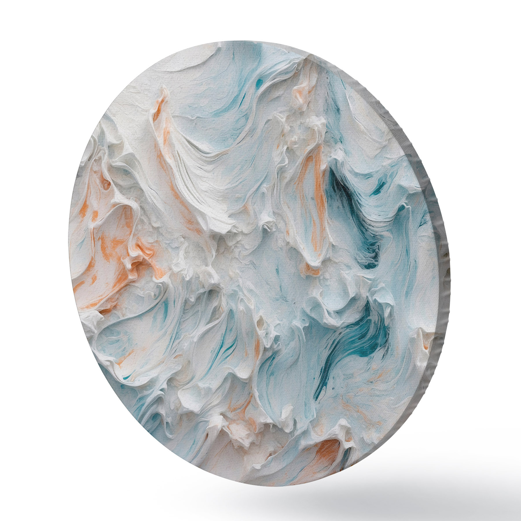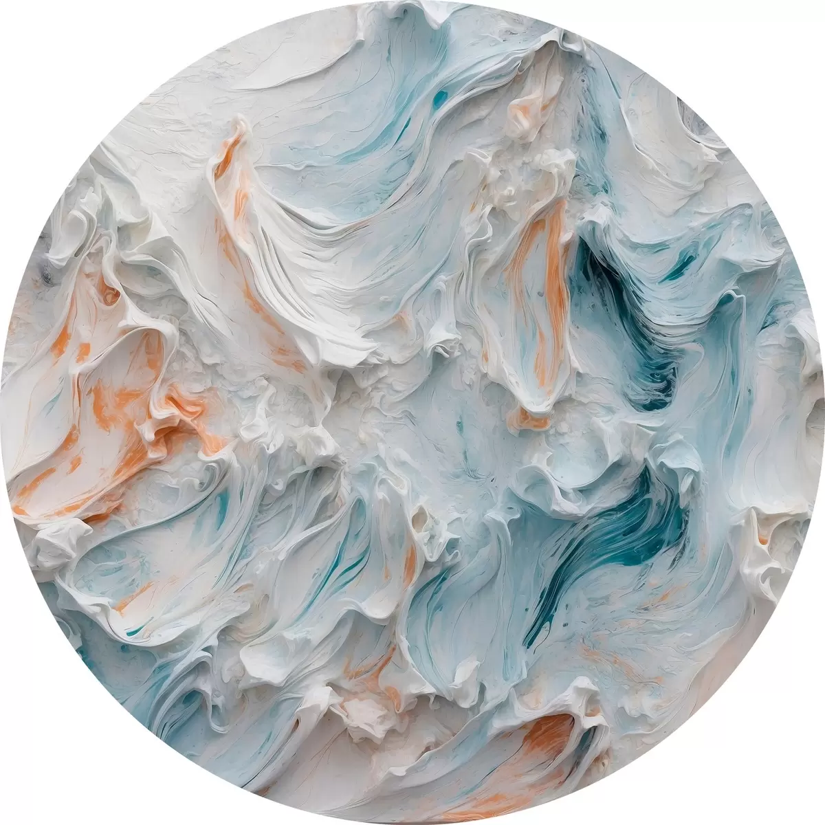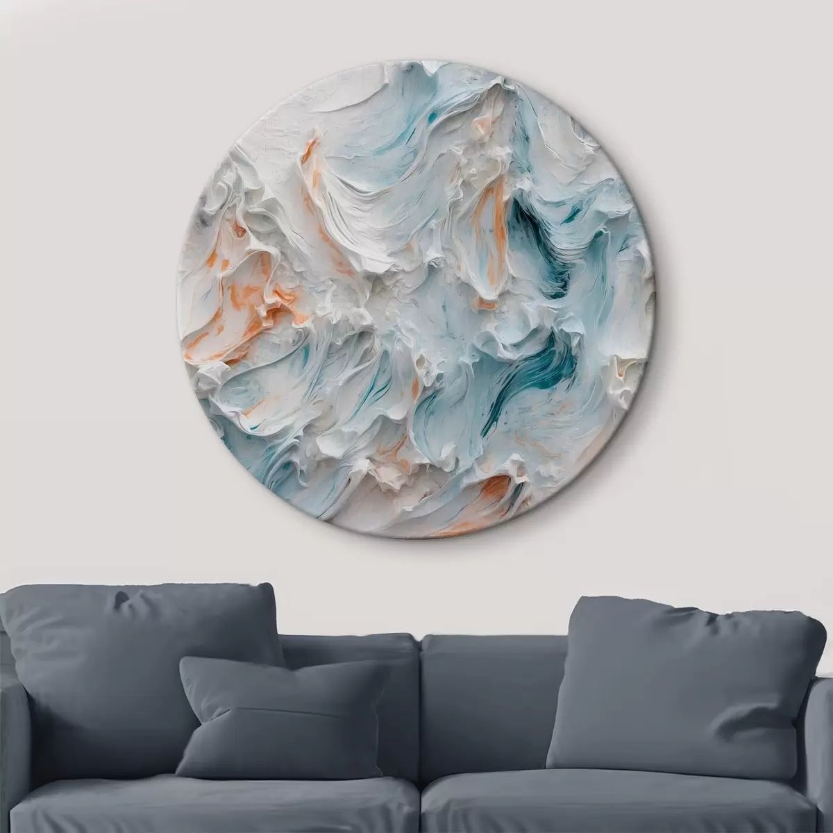 Ronde schilderijen Abstractie in wit, oranje en blauwe kleuren r41026