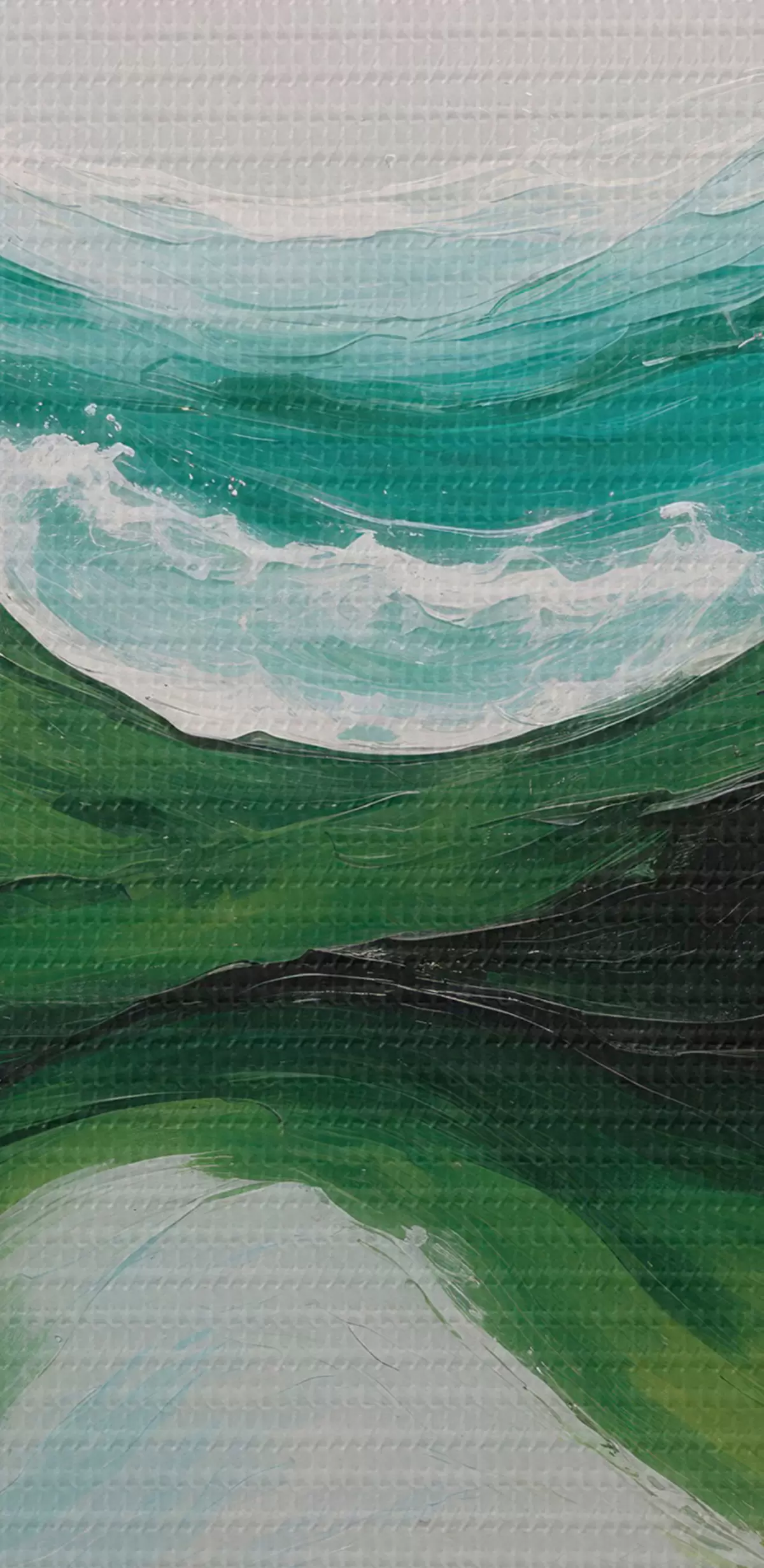 Het schilderij kan direct na ontvangst worden opgehangen. Het schilderij wordt opgespannen op een 2 cm breed houten spieraam.