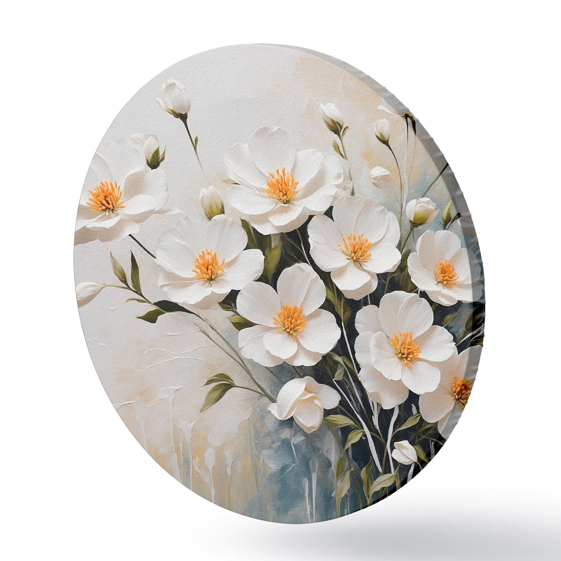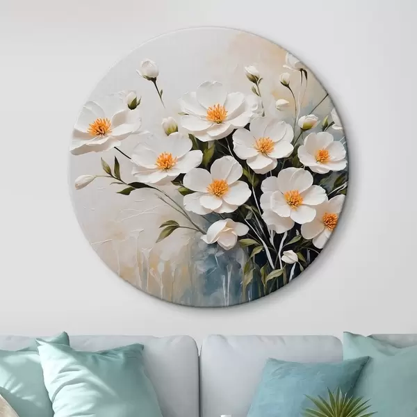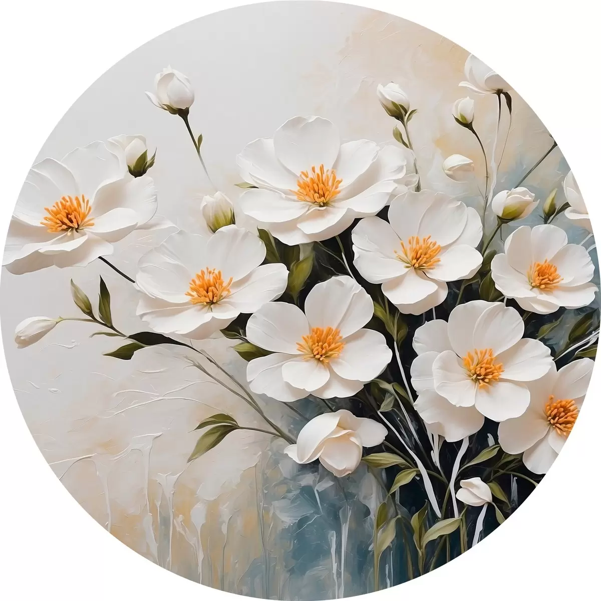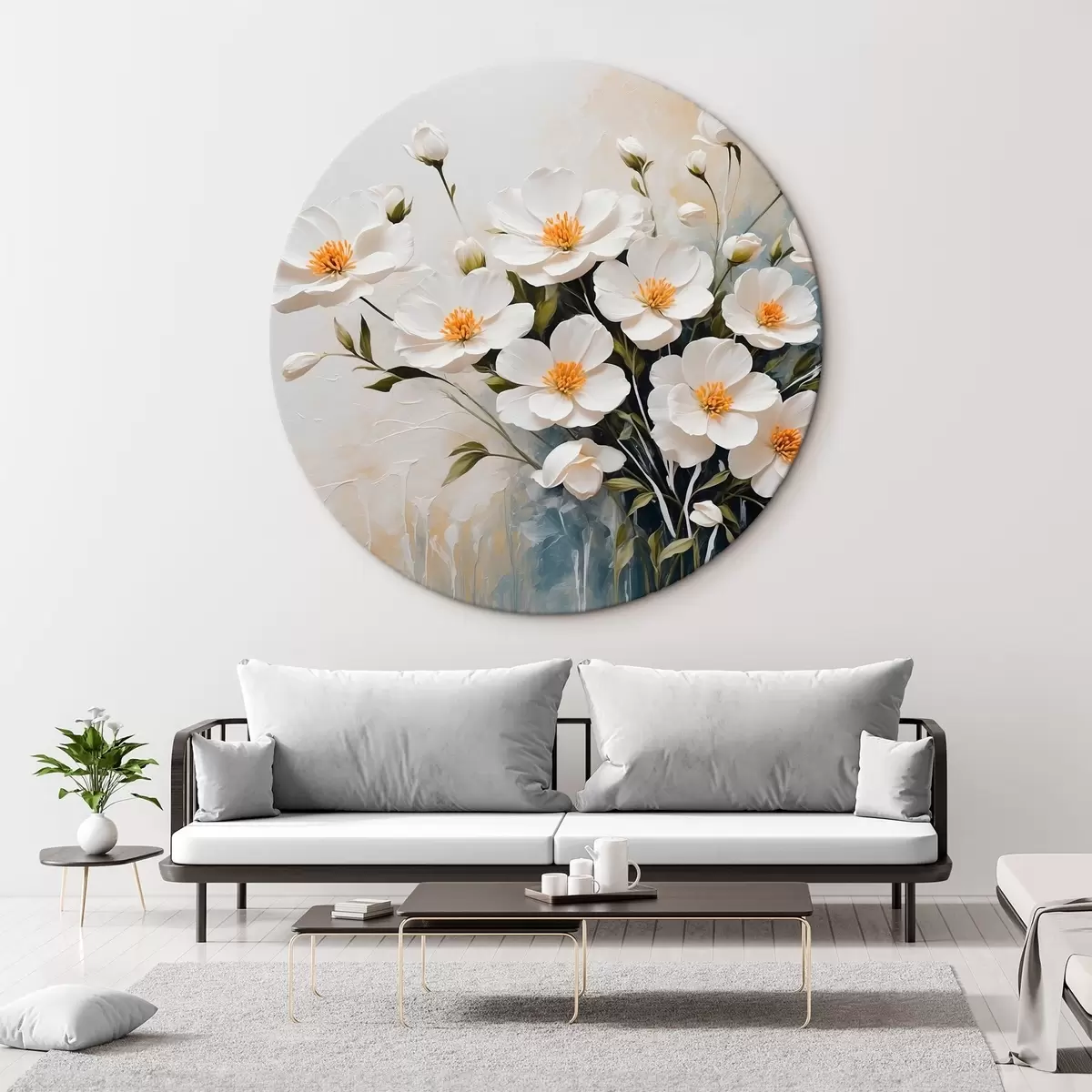 Ronde schilderijen Witte bloemen op een wazige achtergrond r41039