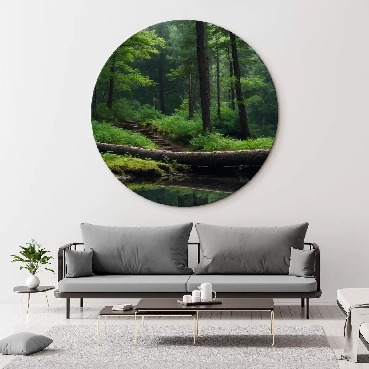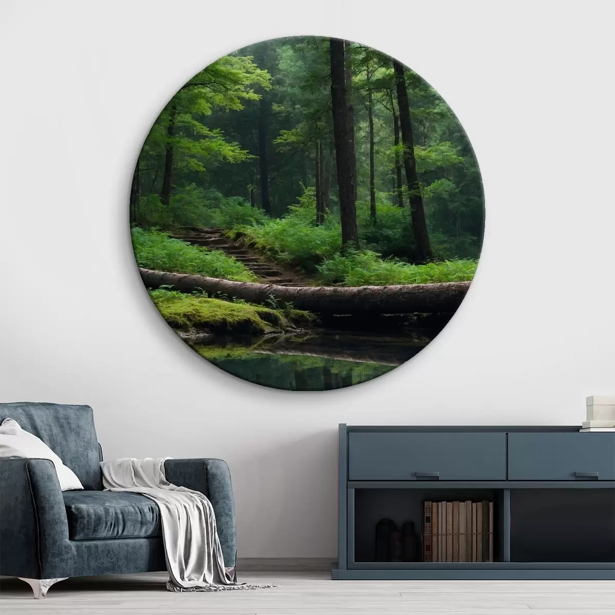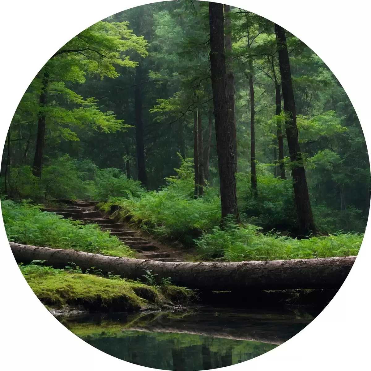Ronde schilderijen Omgevallen boom in het bos r41054