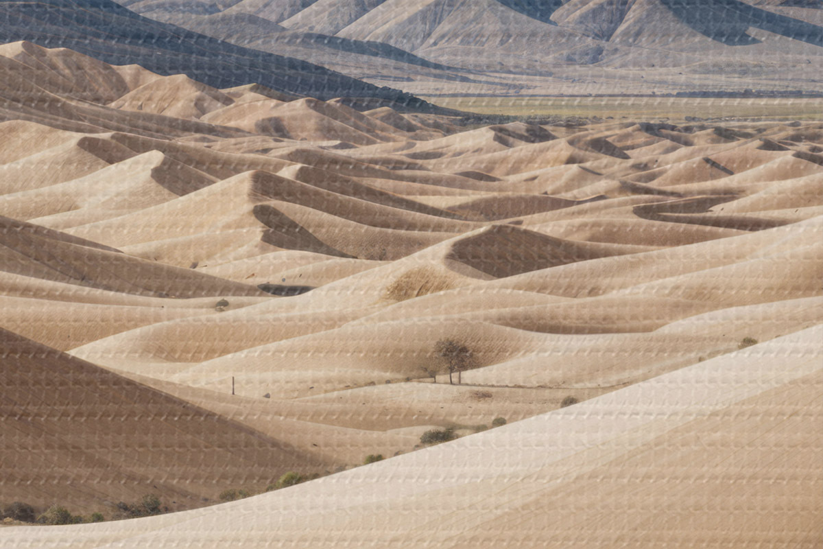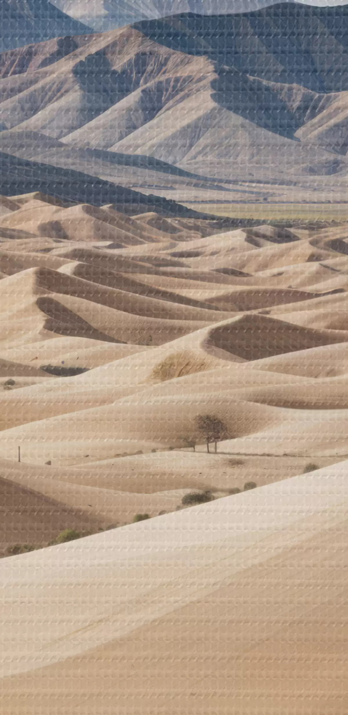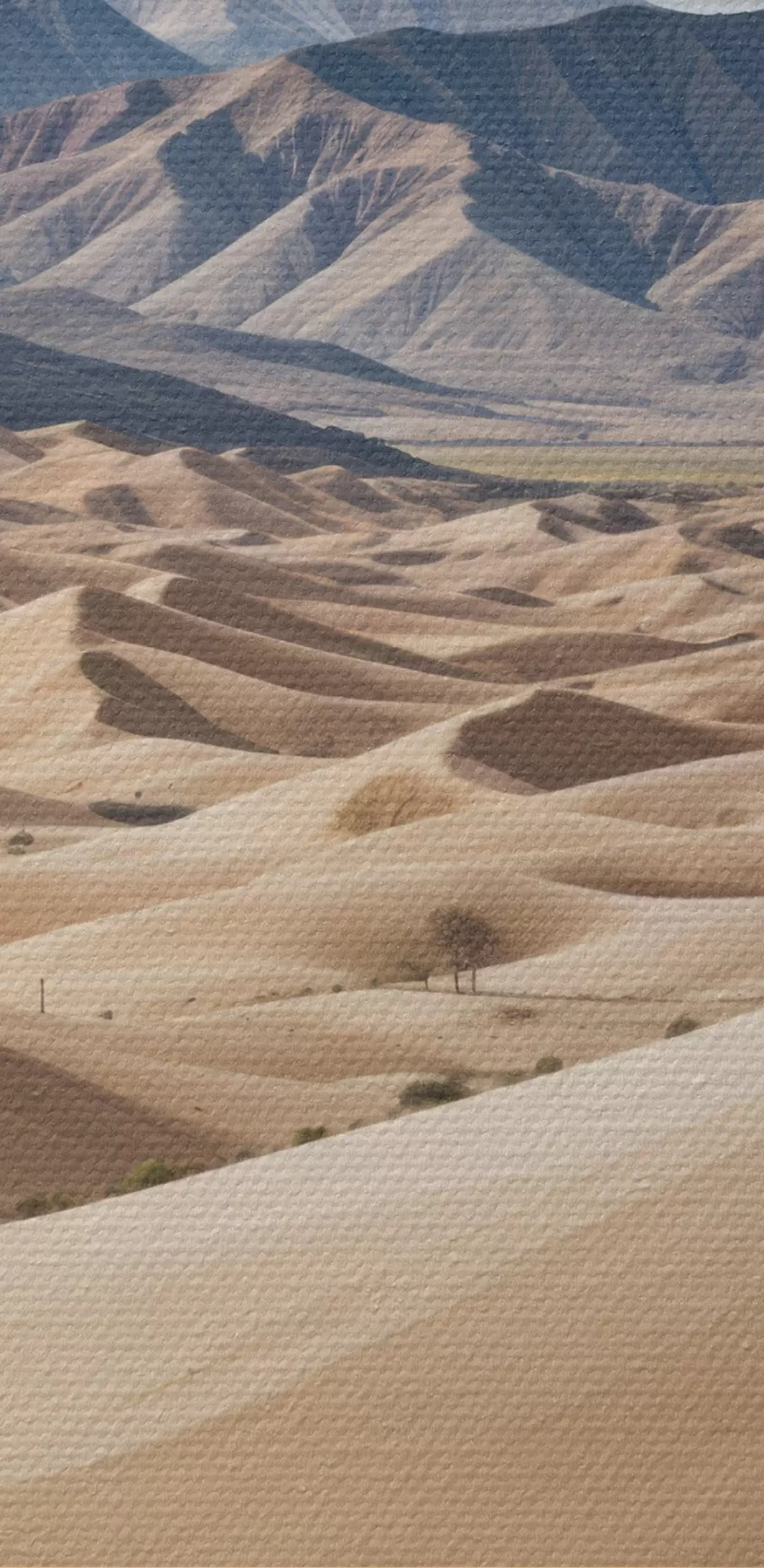 Afbeelding Een uitgestrekt woestijnlandschap met glooiende duinen, ruige bergen in de verte en een dramatische wolkenlucht Nr r41089